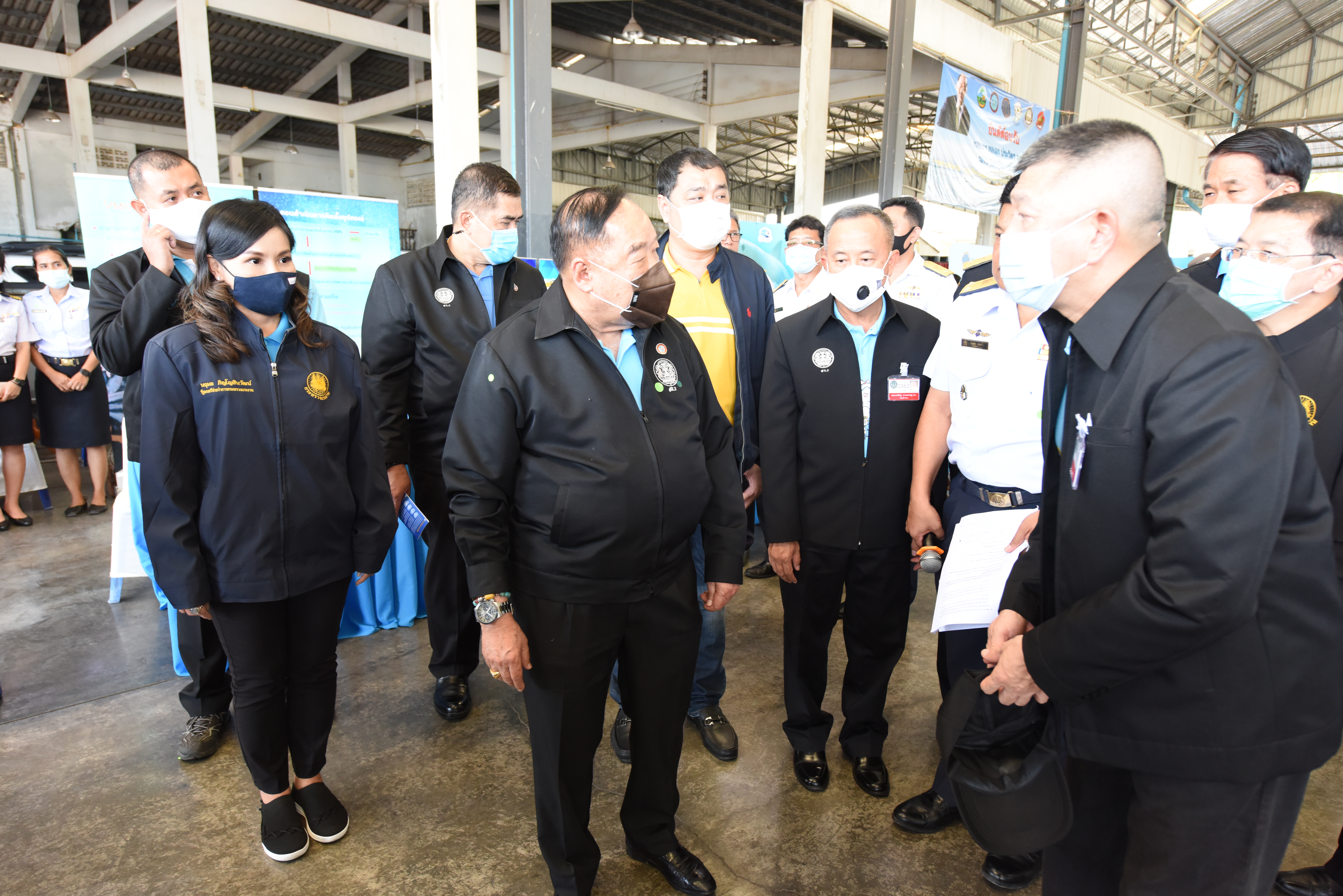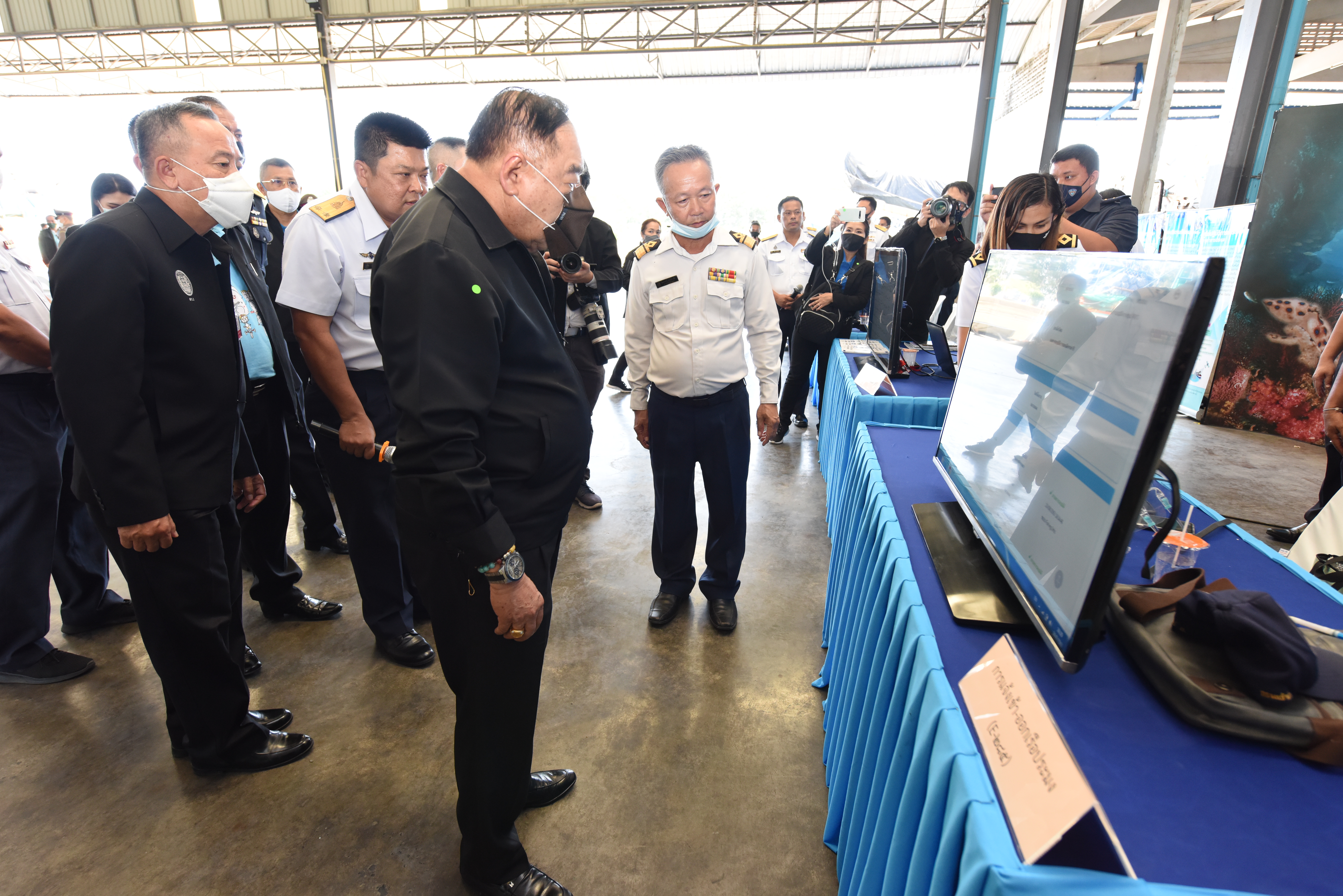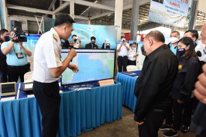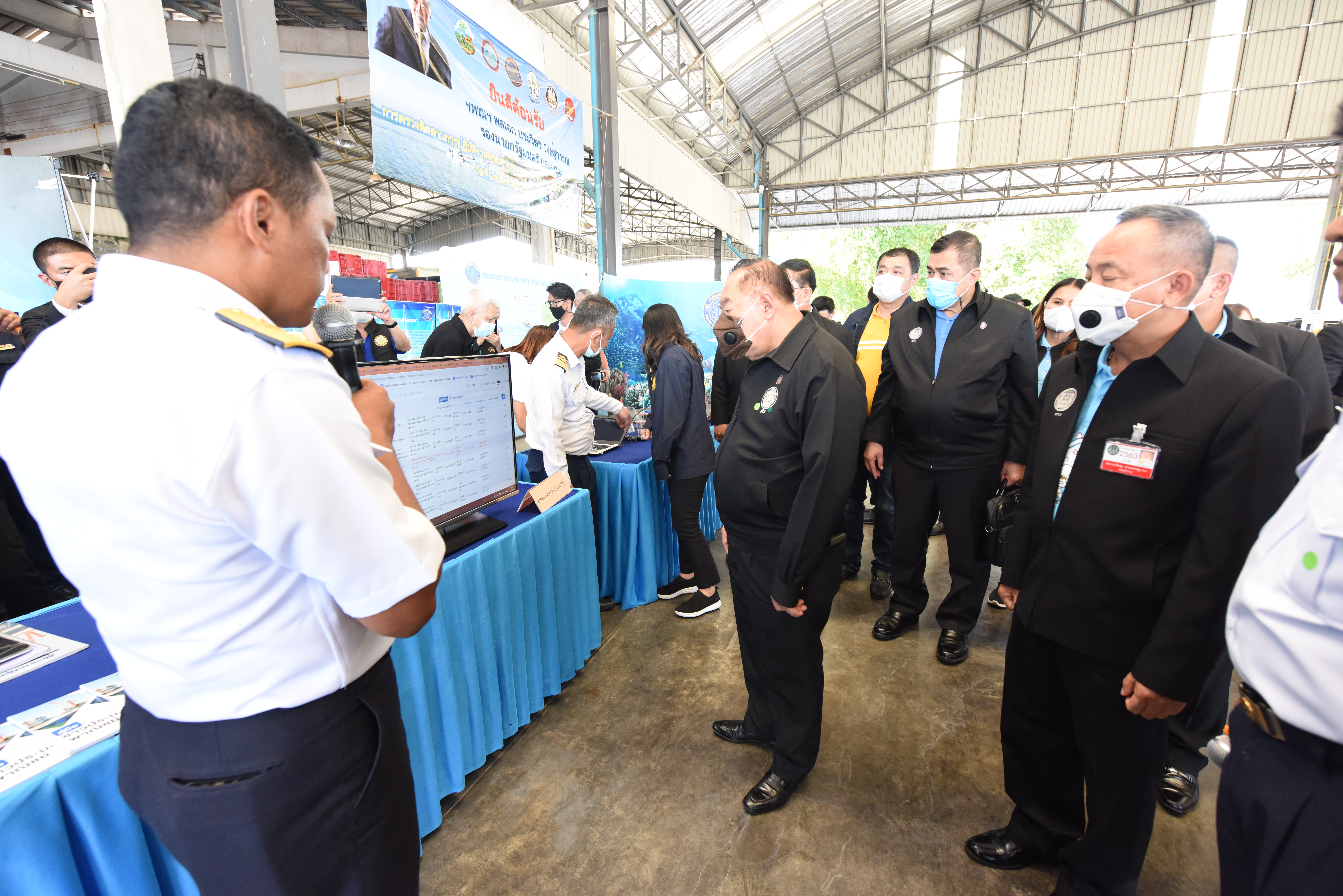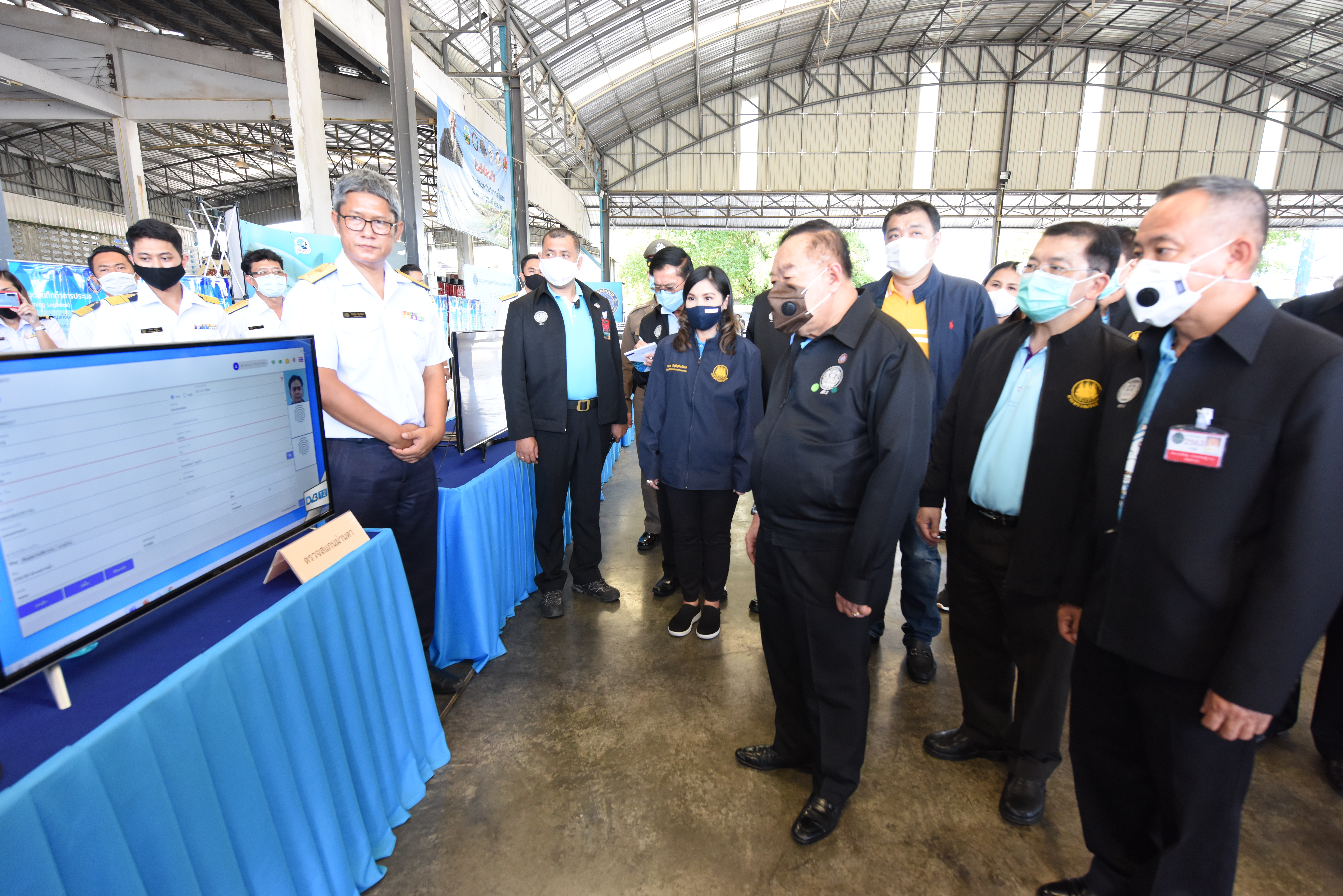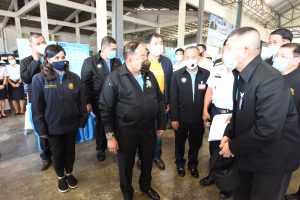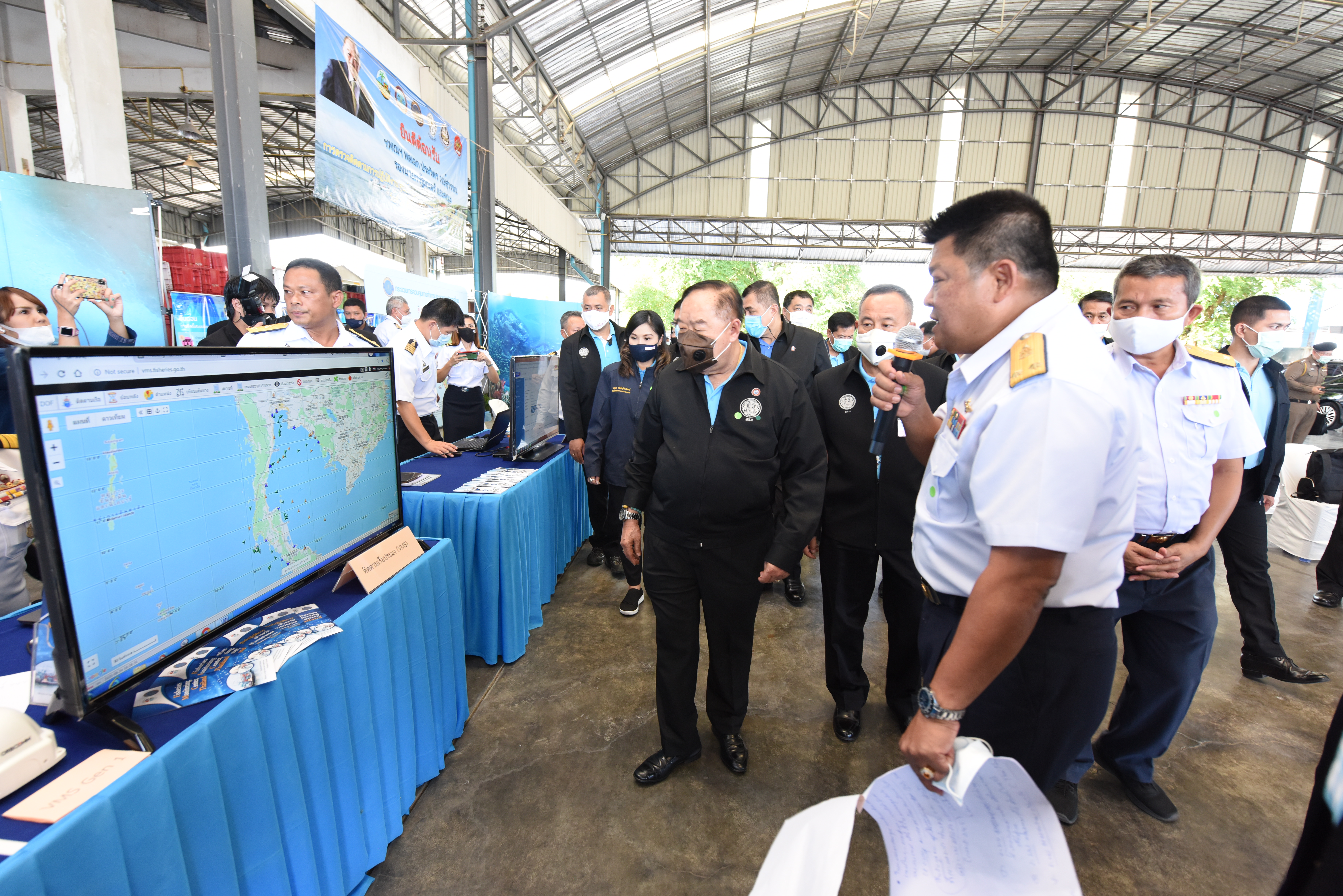 On August 42, 2020, at 16.0 hours, Deputy Prime Minister General Prawit Wongsuwan paid a visit to observe the monitoring, control and surveillance of fishing vessels in a demonstration by the Port In-Port Out (PIPO) Command Center via the fishing vessel tracking system. He also observed the inspection of aquatic animals caught from fishing boats. Labour Minister Mr. Suchart Chomklin, Deputy Labour Minister Prof. Narumol Pinyosinwat and Permanent Secretary of Labour Mr. Suthi Sukosol also participated in the observation of the exhibition and demonstration by the PIPO at the Pla Singhanat fish landing, Pak Nam Subdistrict, Mueang District, Rayong Province.