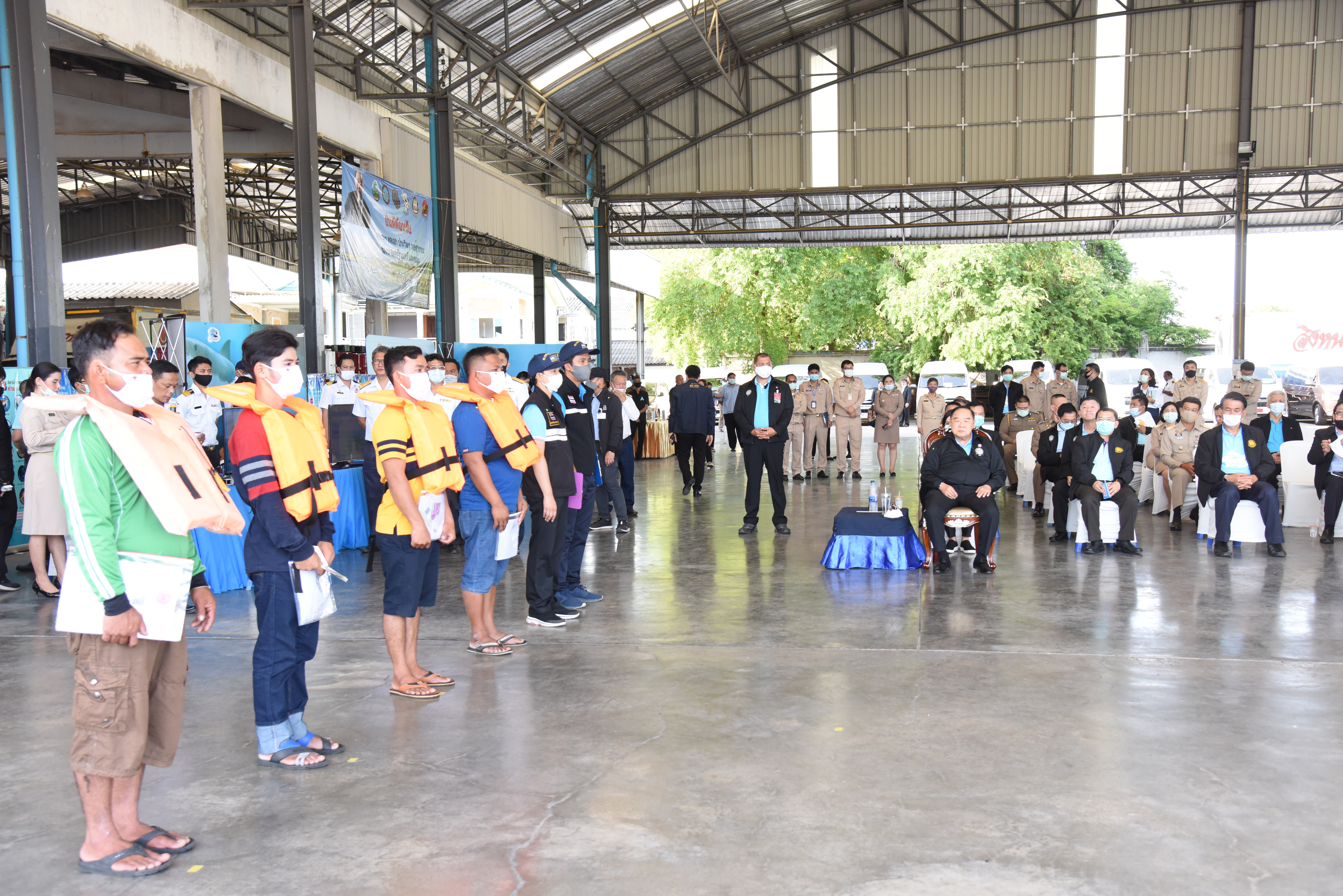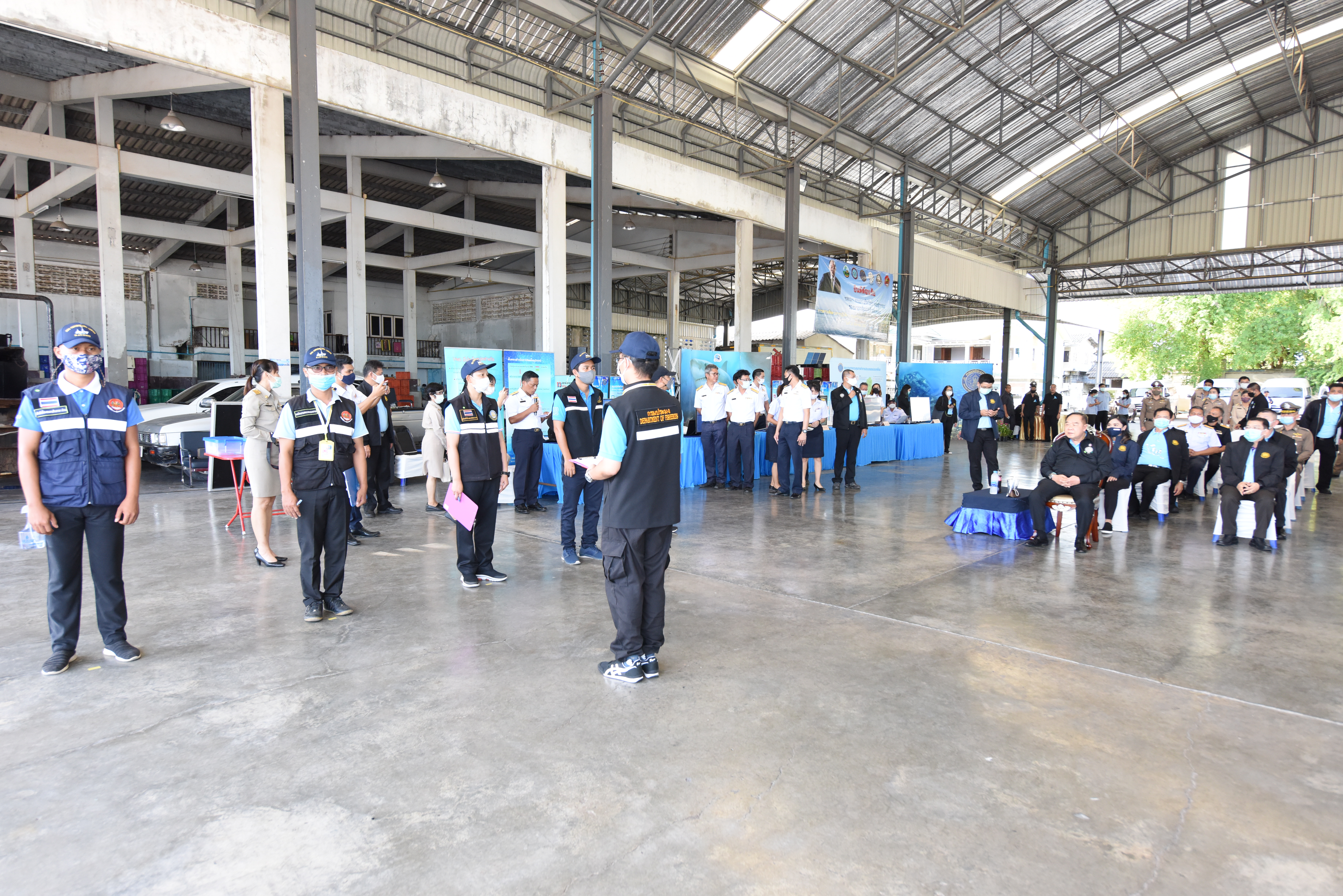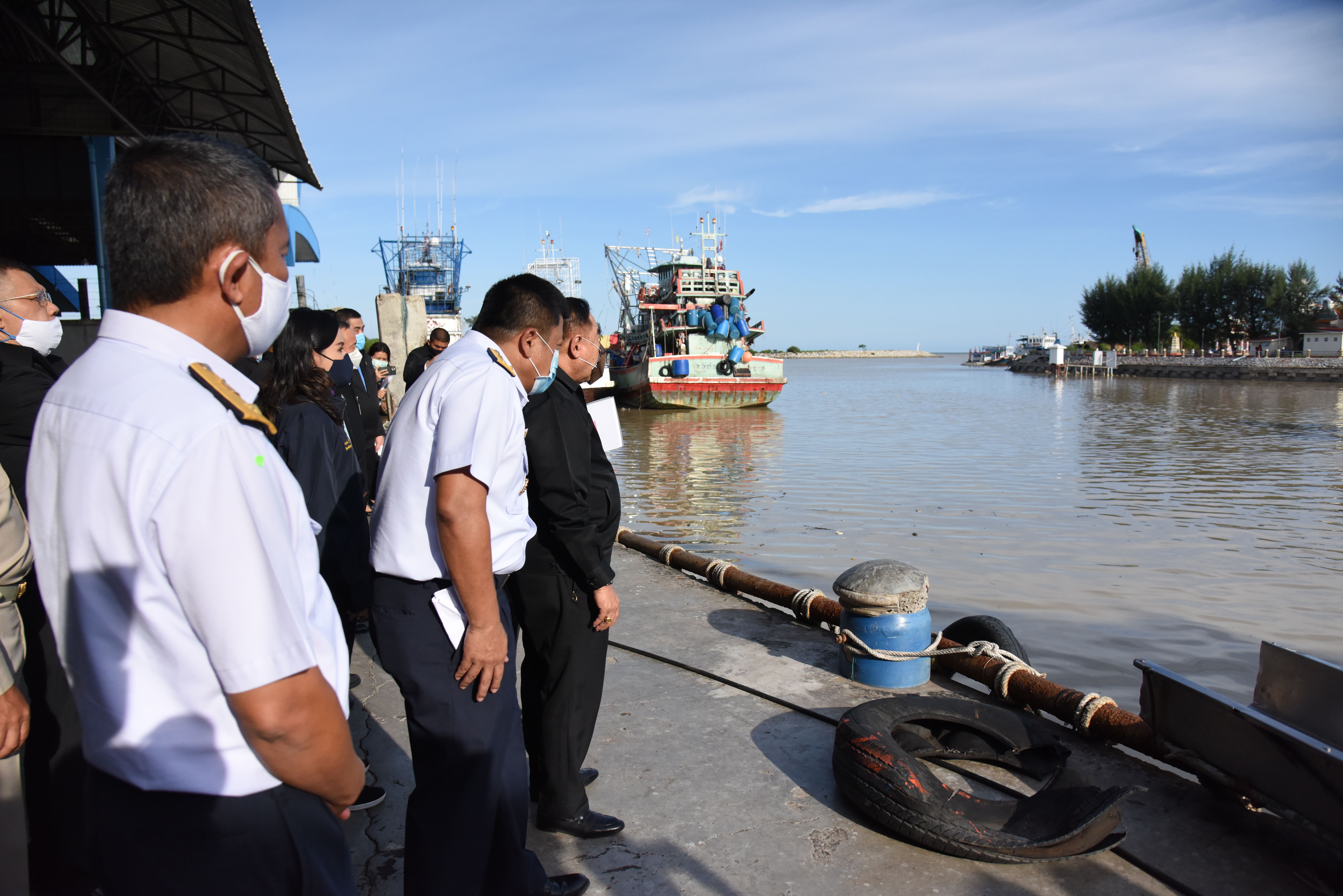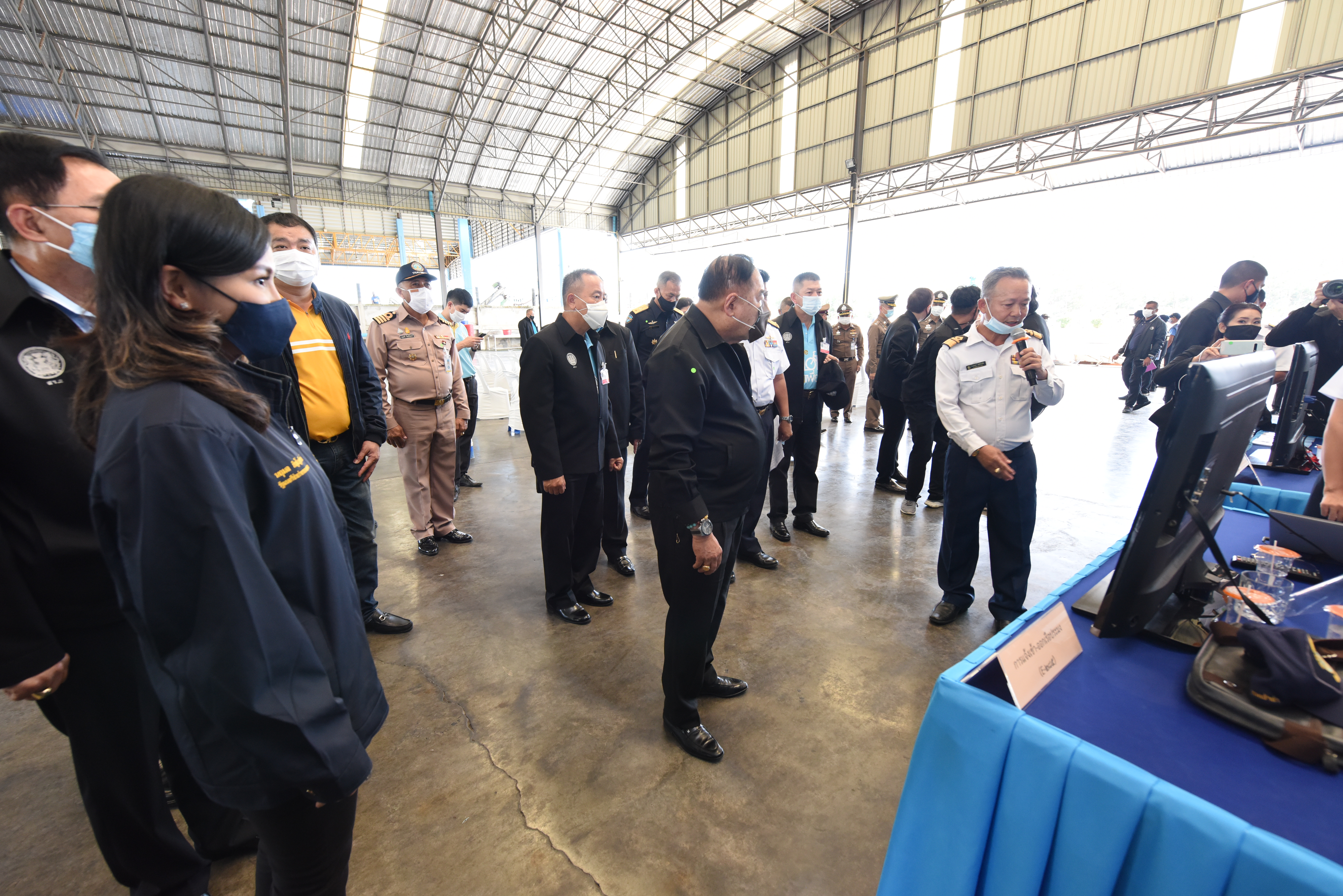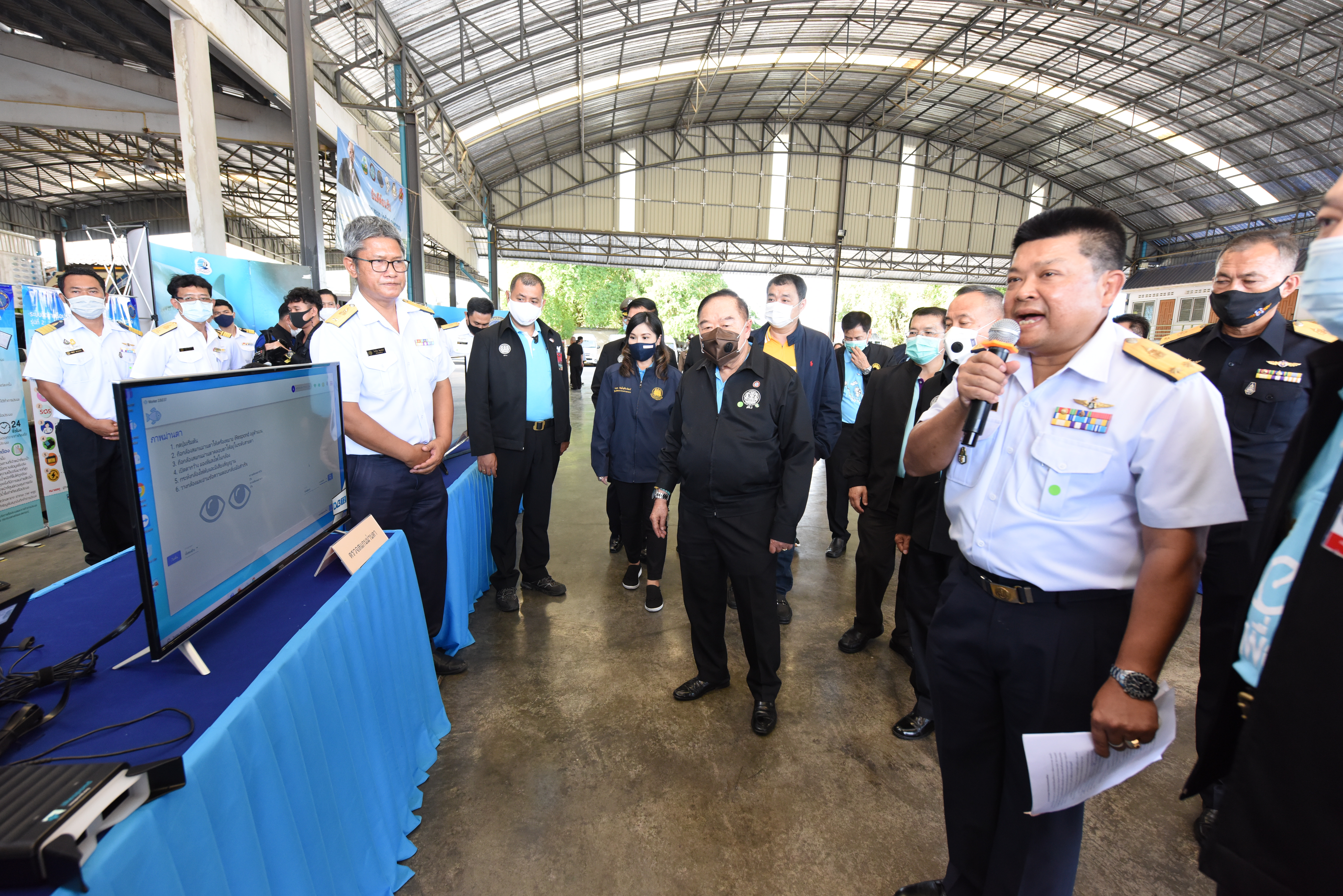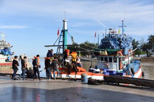 On August 42, 2020, at 16.0 hours, Deputy Prime Minister General Prawit Wongsuwan paid a visit to observe the monitoring, control and surveillance of fishing vessels in a demonstration by the Port In-Port Out (PIPO) Command Center via the fishing vessel tracking system. He also observed the inspection of aquatic animals caught from fishing boats. Labour Minister Mr. Suchart Chomklin, Deputy Labour Minister Prof. Narumol Pinyosinwat and Permanent Secretary of Labour Mr. Suthi Sukosol also participated in the observation of the exhibition and demonstration by the PIPO at the Pla Singhanat fish landing, Pak Nam Subdistrict, Mueang District, Rayong Province.