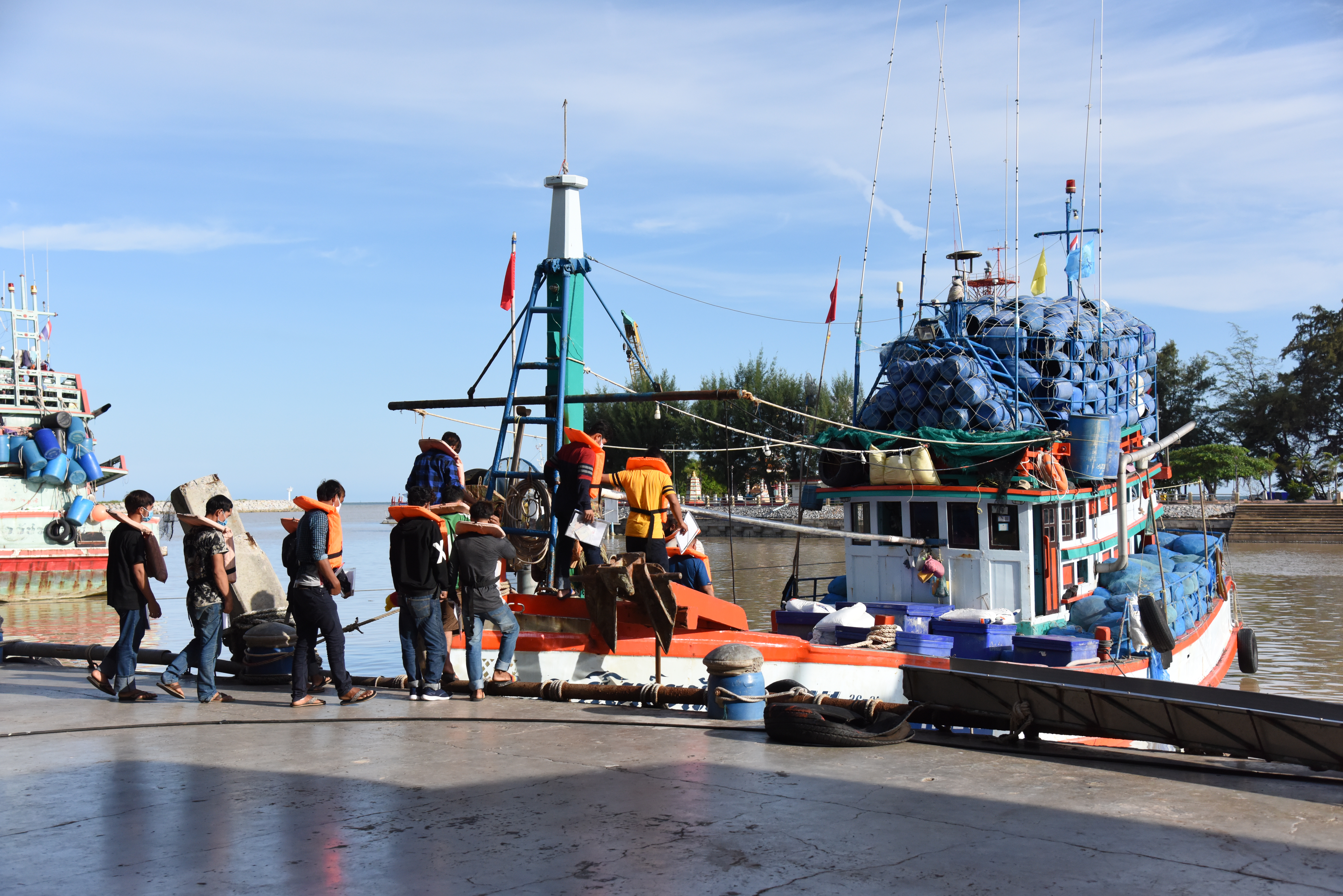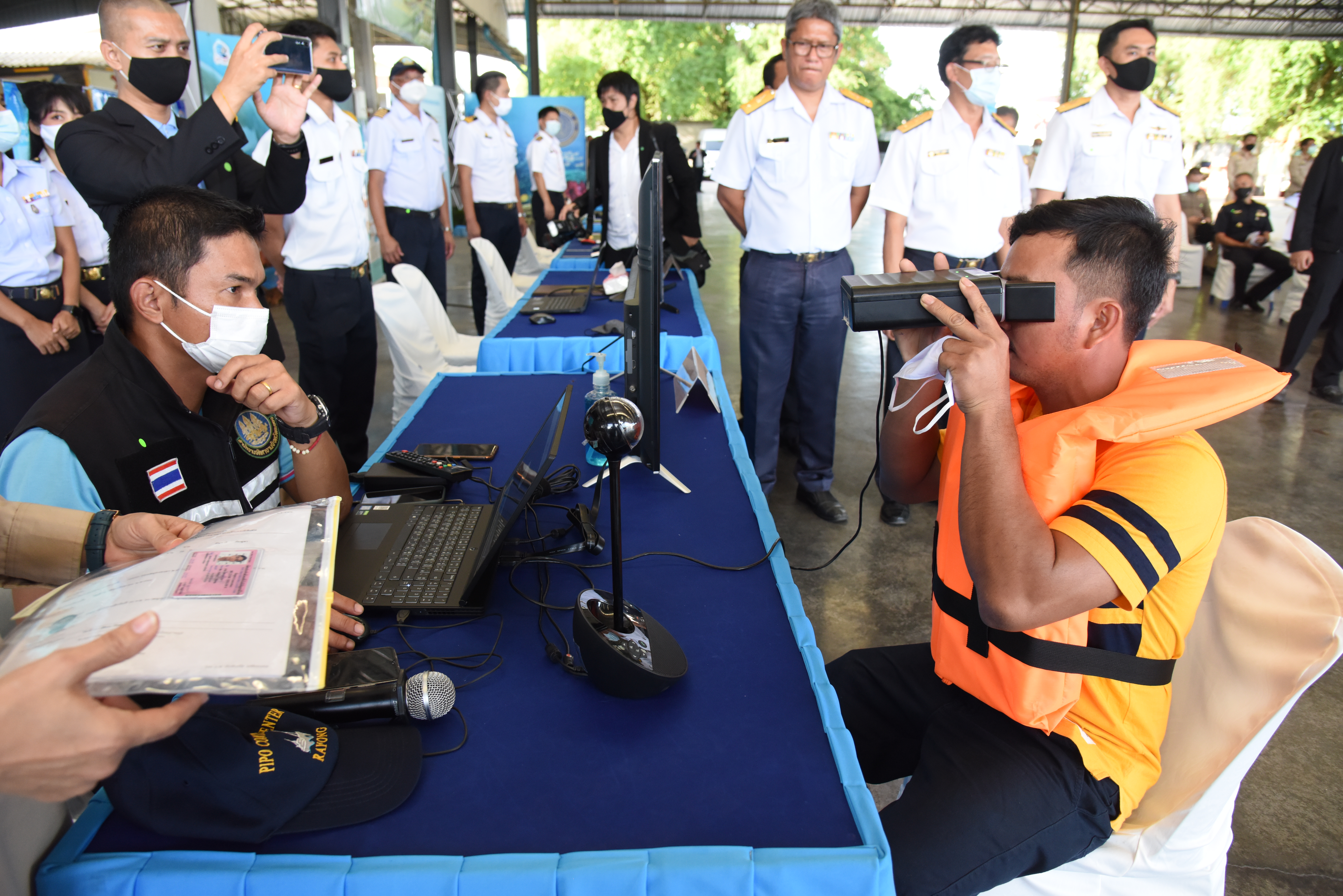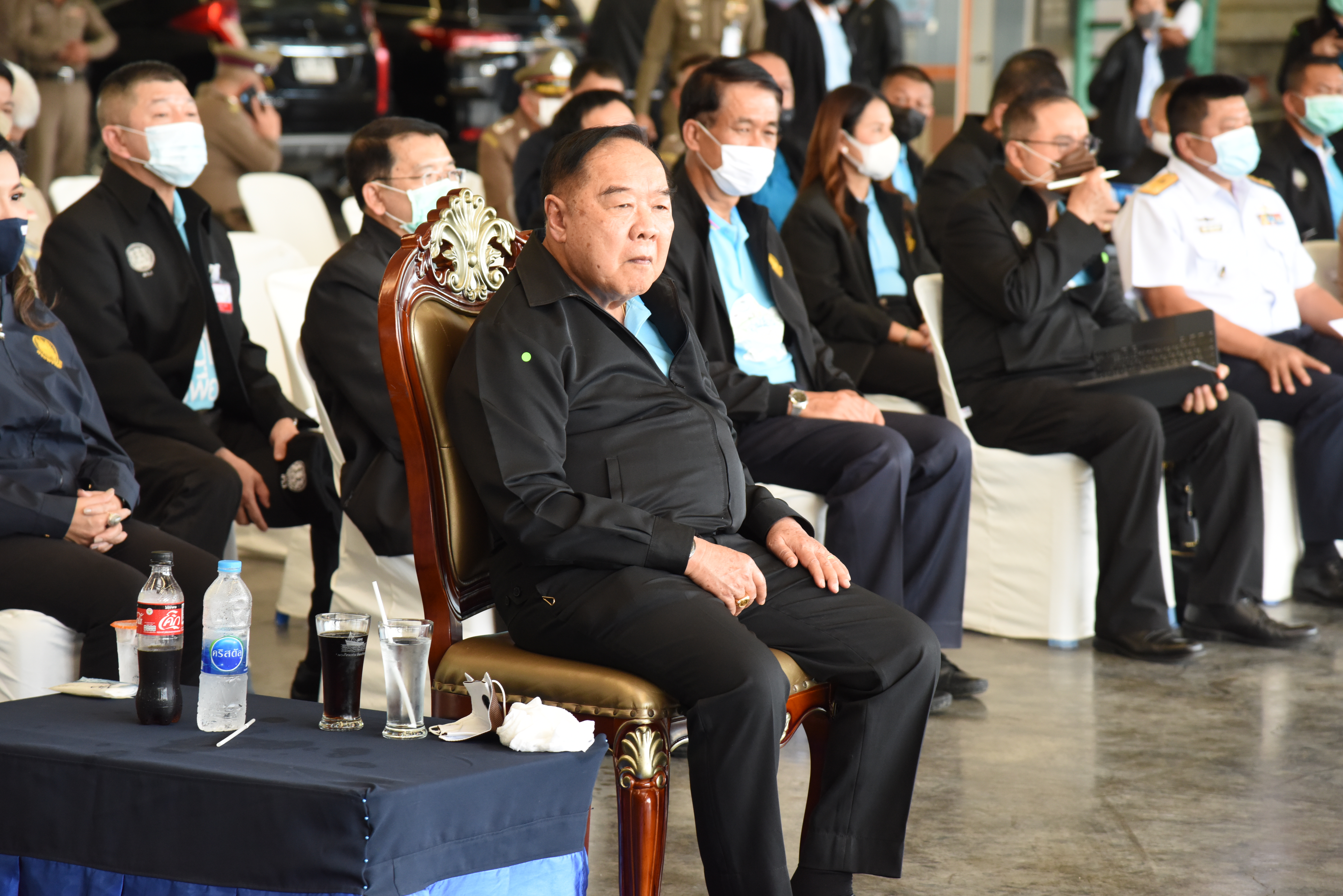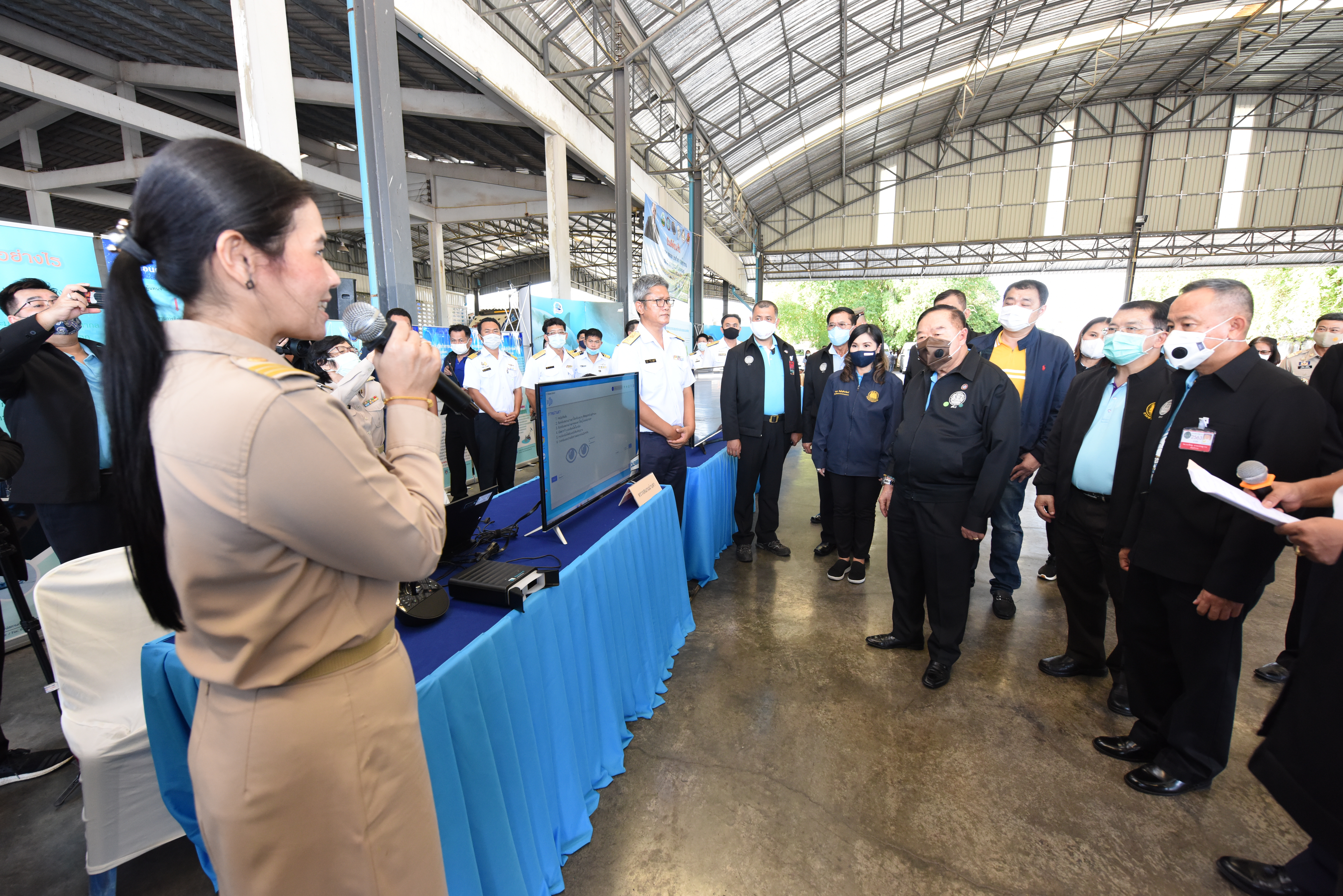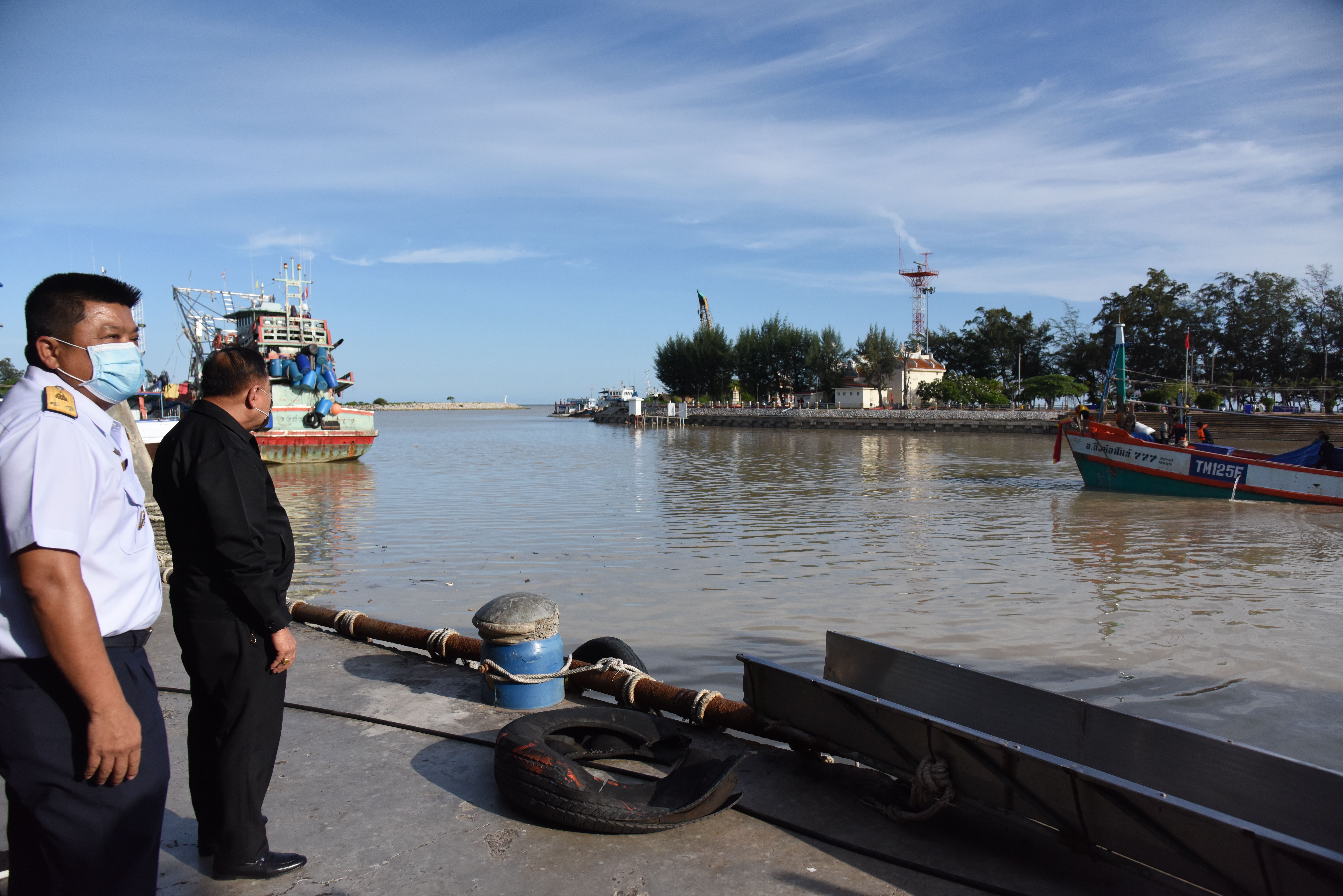 On August 42, 2020, at 16.0 hours, Deputy Prime Minister General Prawit Wongsuwan paid a visit to observe the monitoring, control and surveillance of fishing vessels in a demonstration by the Port In-Port Out (PIPO) Command Center via the fishing vessel tracking system. He also observed the inspection of aquatic animals caught from fishing boats. Labour Minister Mr. Suchart Chomklin, Deputy Labour Minister Prof. Narumol Pinyosinwat and Permanent Secretary of Labour Mr. Suthi Sukosol also participated in the observation of the exhibition and demonstration by the PIPO at the Pla Singhanat fish landing, Pak Nam Subdistrict, Mueang District, Rayong Province.