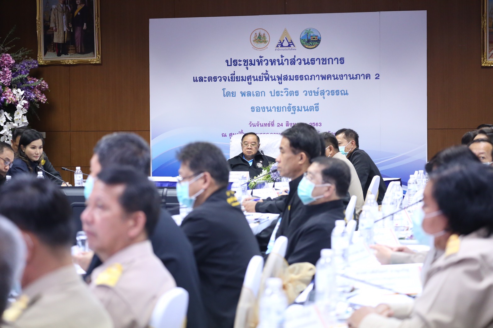 The Deputy Prime Minister visited Rayong to hand over the policy to heads of government agencies under the Ministry of Labour in 5 provinces. The efforts aim to accelerate the drive to raise the skill level of workers, promote employment, expedite the payment of unemployment benefits to those affected, prevent the spread of Covid-19 among foreign groups and to pay attention to the safety of workers to gain legal rights.