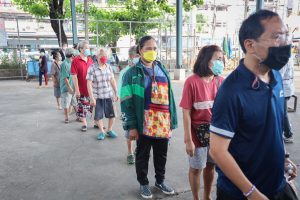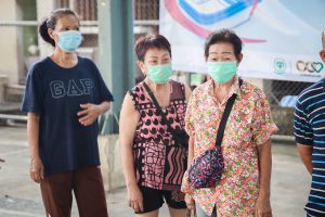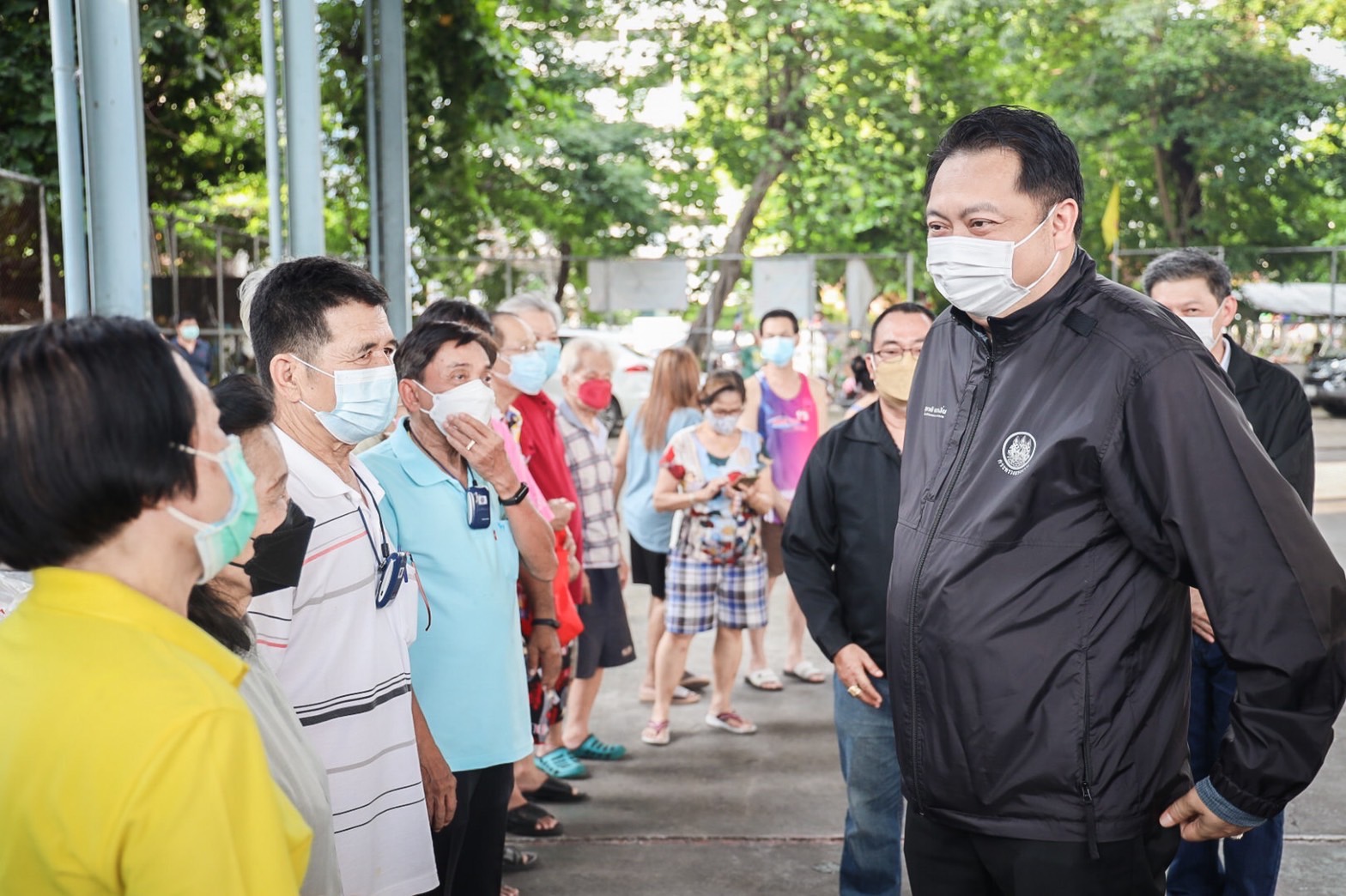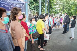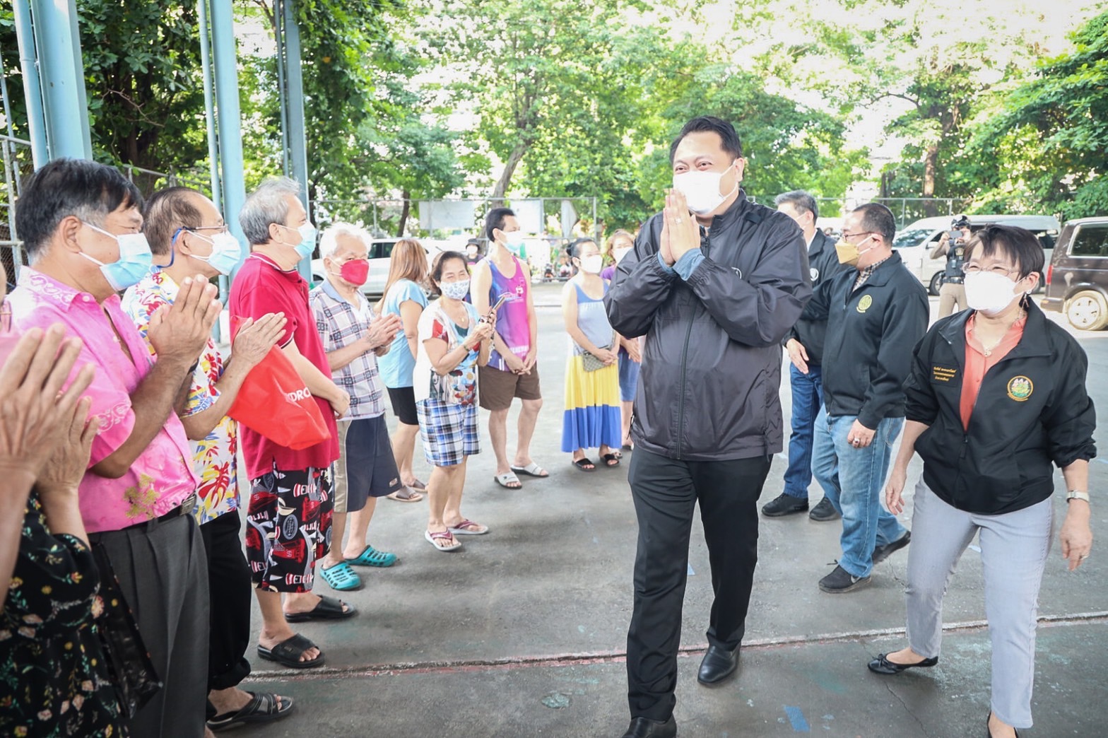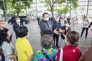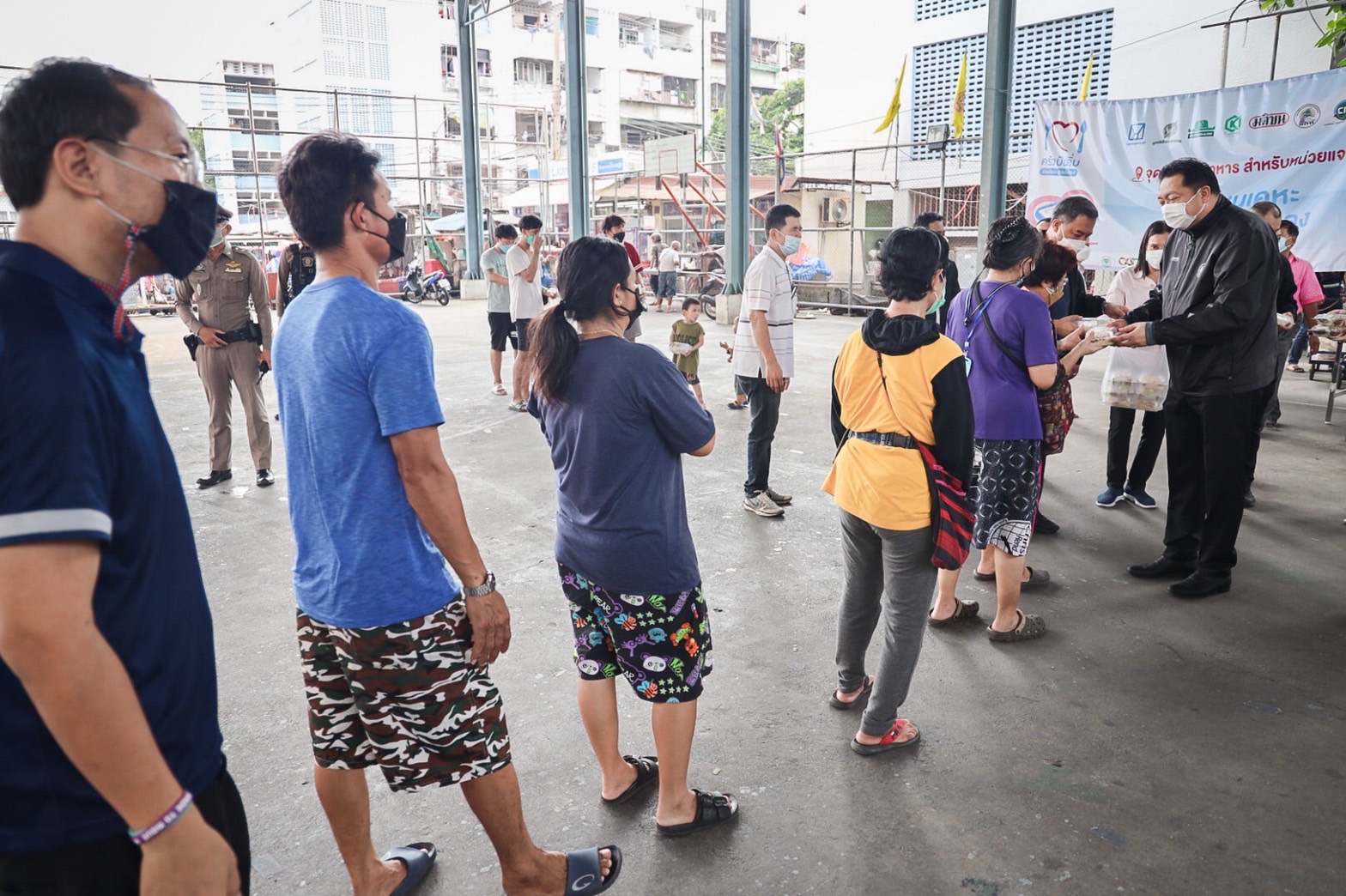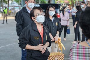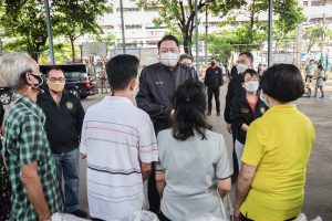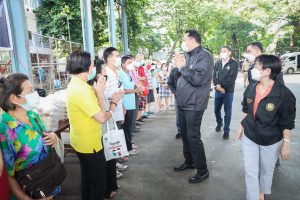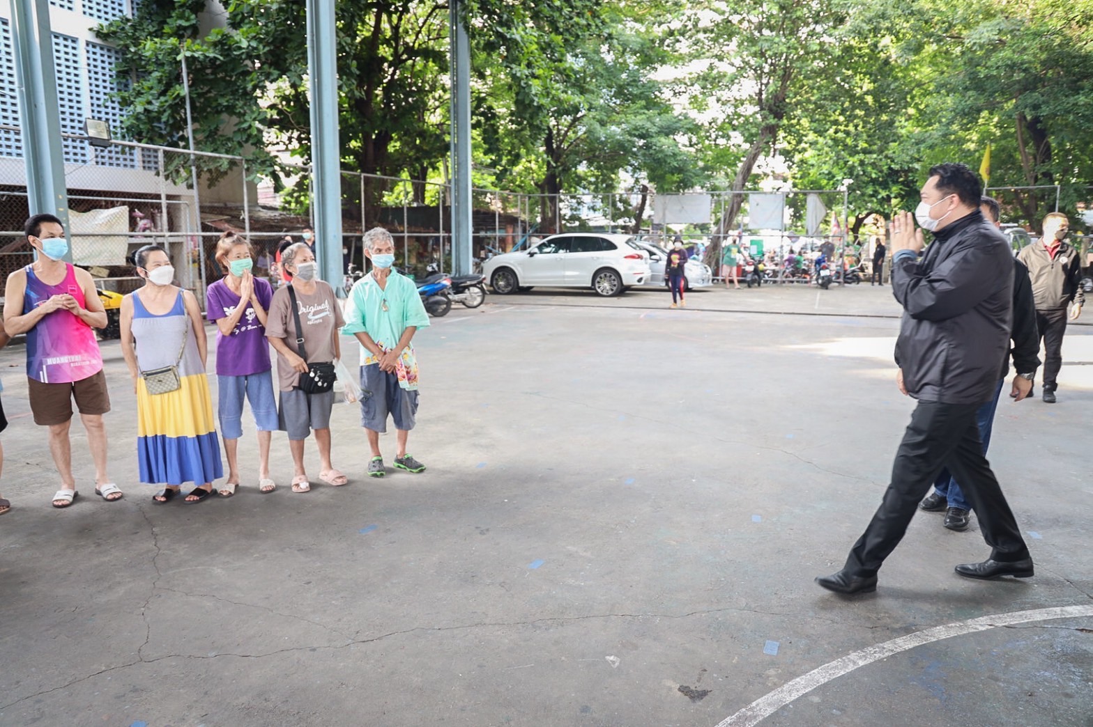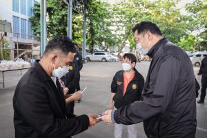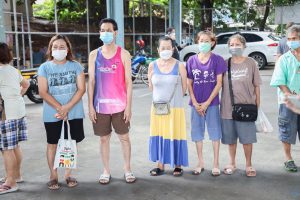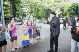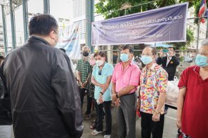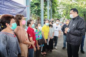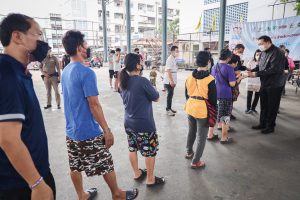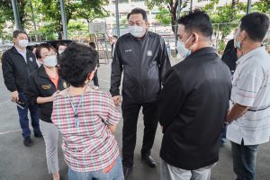 The Din Daeng Housing Community has 55 residential buildings, comprising 7,697 rooms, with 29,810 residents. There are 300 households with elderly people who cannot help themselves, and 100 households with people with disabilities need to be cared for. For COVID-19 prevention measures, the Din Daeng Community Housing Board encourages residents to wear masks at all times when leaving the accommodation, implements COVID-19 screening test for merchants in the Din Daeng Community Housing Market, and urges the implementation of the CCSA’s measures too.