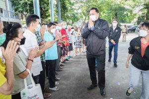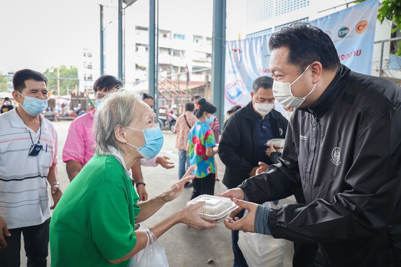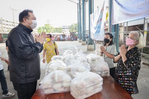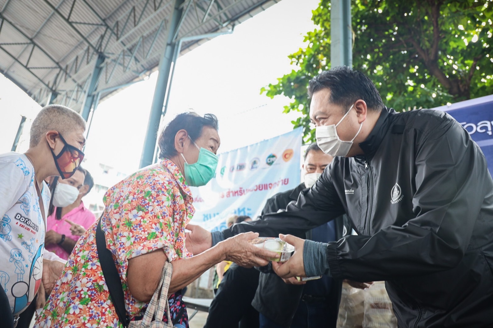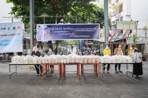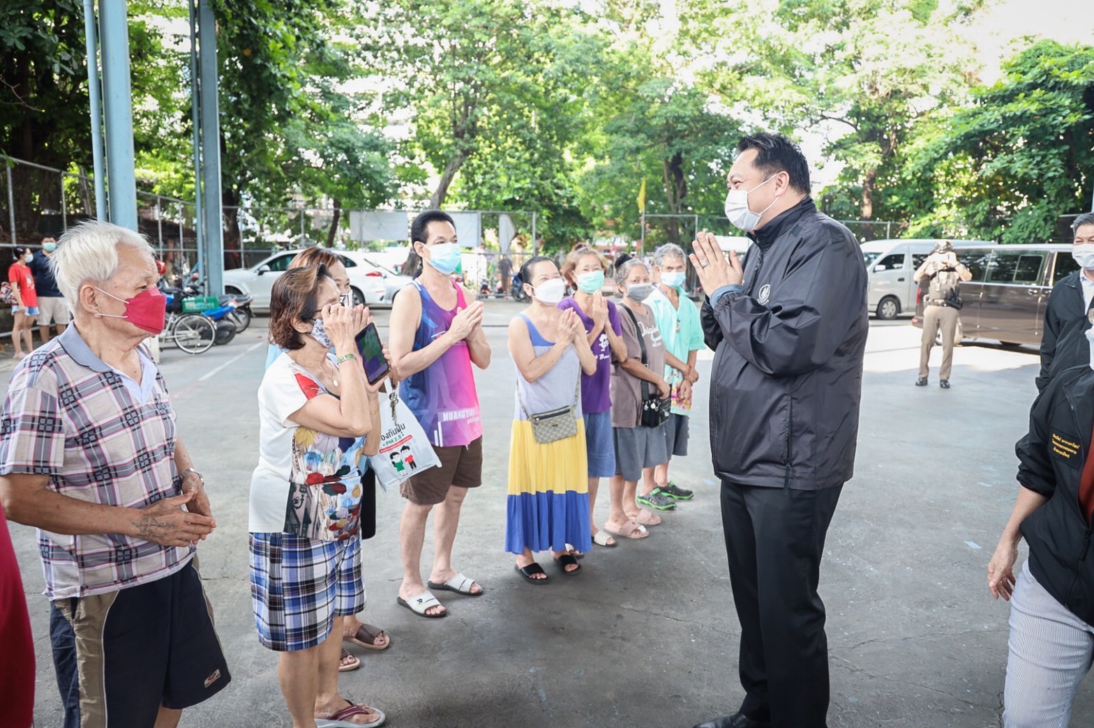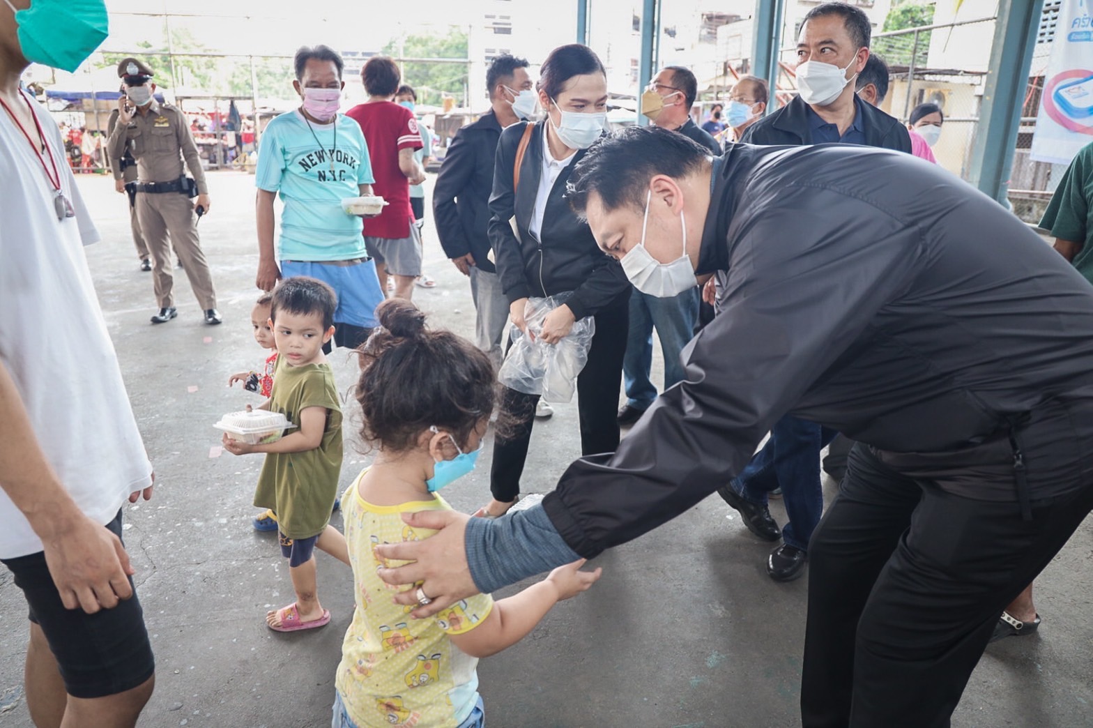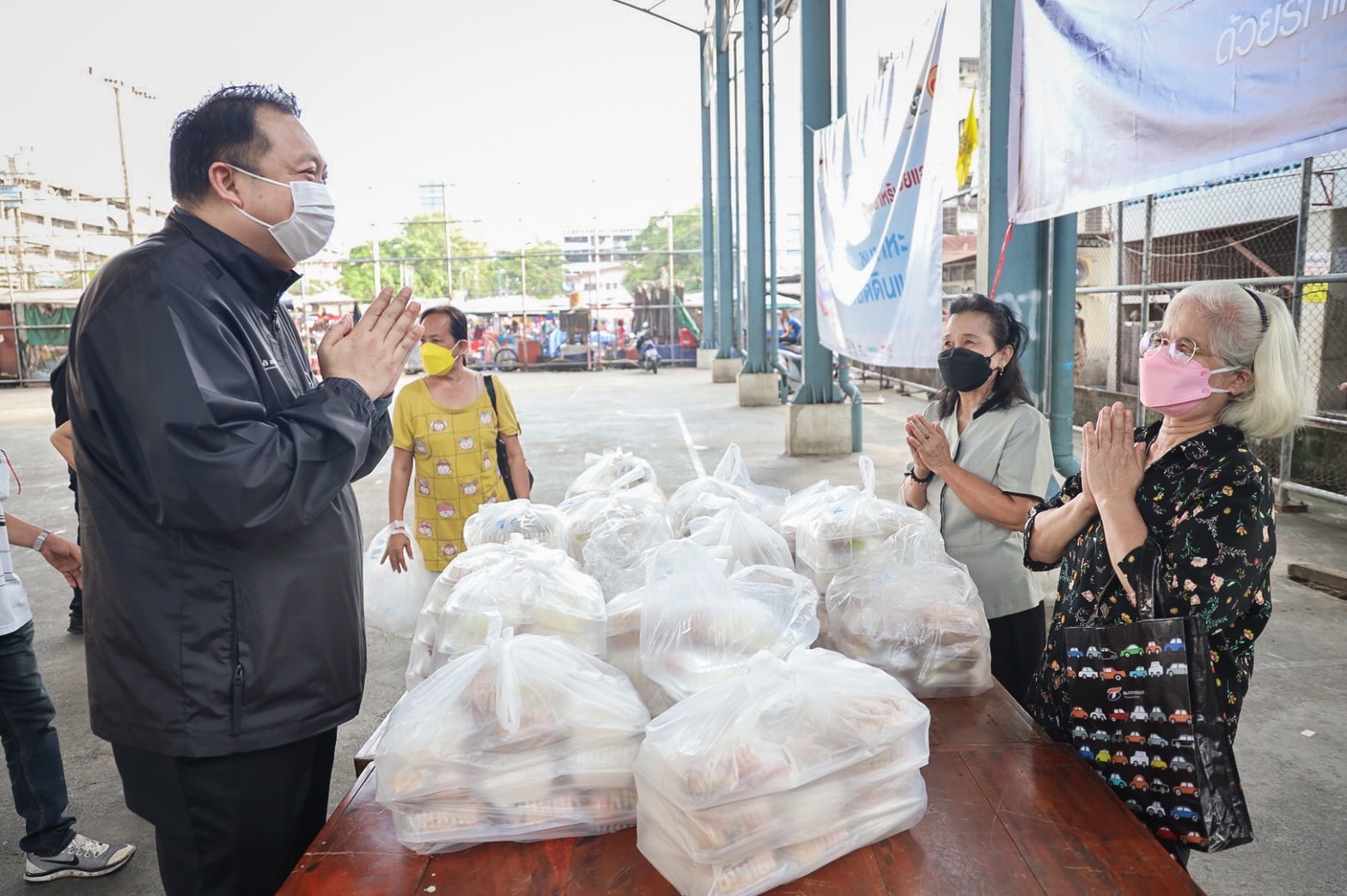 On September 18, 2021, Labour Minister Mr. Suchart Chomklin visited the area to deliver “Uncle Tu and Uncle Pom’s Kitchen” food boxes, which allowed local vendors to cook food boxes for dinner, to have a career, and earn an income. There were 1,500 food boxes to distribute to members in the three Din Daeng communities affected by COVID-19, equivalent to 500 boxes for each community. The food boxes consisted of shrimp paste fried rice, fried chicken with ginger and rice, boiled eggs with boiled chicken rice, fried chicken rice, and Panang pork and rice. The first point was the Din Daeng City Rehabilitation Phase 1 (Din Daeng Plan G) project behind the Muhayireen Mosque. The second point was at the field of the 8-story building, Pracha Songkhro Intersection, opposite Phibun Prachasan School. The third point was at the sports ground area 51, Soi Pracha Songkhro 11, near the Din Daeng 2 Community Housing Market. Mr. Wichan Kheewkaew, chairman of the Din Daeng 2 Community Housing Committee, and the residents of the Din Daeng flats received the food boxes. Mr. Suchart said that Prime Minister General Prayuth Chan-ocha and Deputy Prime Minister General Prawit Wongsuwan, who oversees the Ministry of Labour, is concerned about workers and the general public who have been affected by the COVID-19 situation, especially the elderly, young children, bedridden patients, and the residents of the Din Daeng flats. They have no income due to the impact of the virus. Therefore, the Labour Minister has been assigned to visit the area to deliver food boxes which allows the vendors in the community to make food boxes to have a career and income. The project produces 1,500 boxes per day and will be distributed to members in the Din Daeng community affected by the COVID-19 situation for dinner. A total of 500 boxes will be distributed at the three locations, starting from September 16 to October 12, 2021, for 27 days to alleviate the suffering and the burden of family expenses.