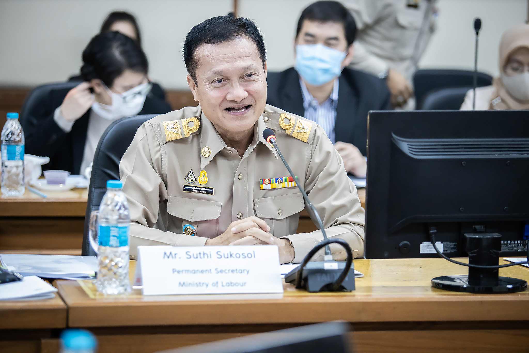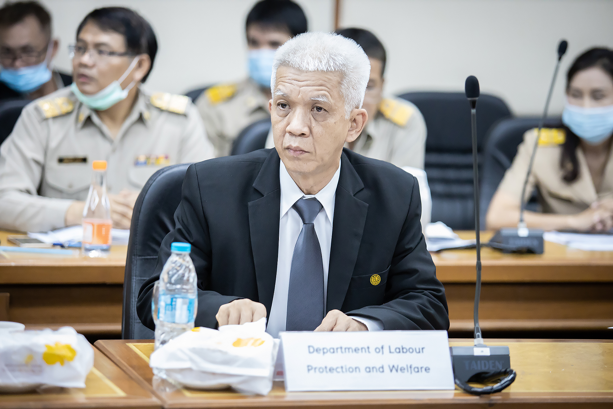 Today (November 23, 2020) at 13.30 hours, Permanent Secretary of Labour Mr. Suthi Sukosol welcomed Deputy Director of the Environmental Justice Foundation (EJF) Mr. Dominic Thomson and Project Manager for Southeast Asia, to discuss cooperation in resolving labour issues, especially workers in the fishery and industrial sectors, assisting Thai fishers outside Thai waters, including providing various useful suggestions. The meeting took place at the Prasong Rananant meeting room, 5th floor, Ministry of Labour.