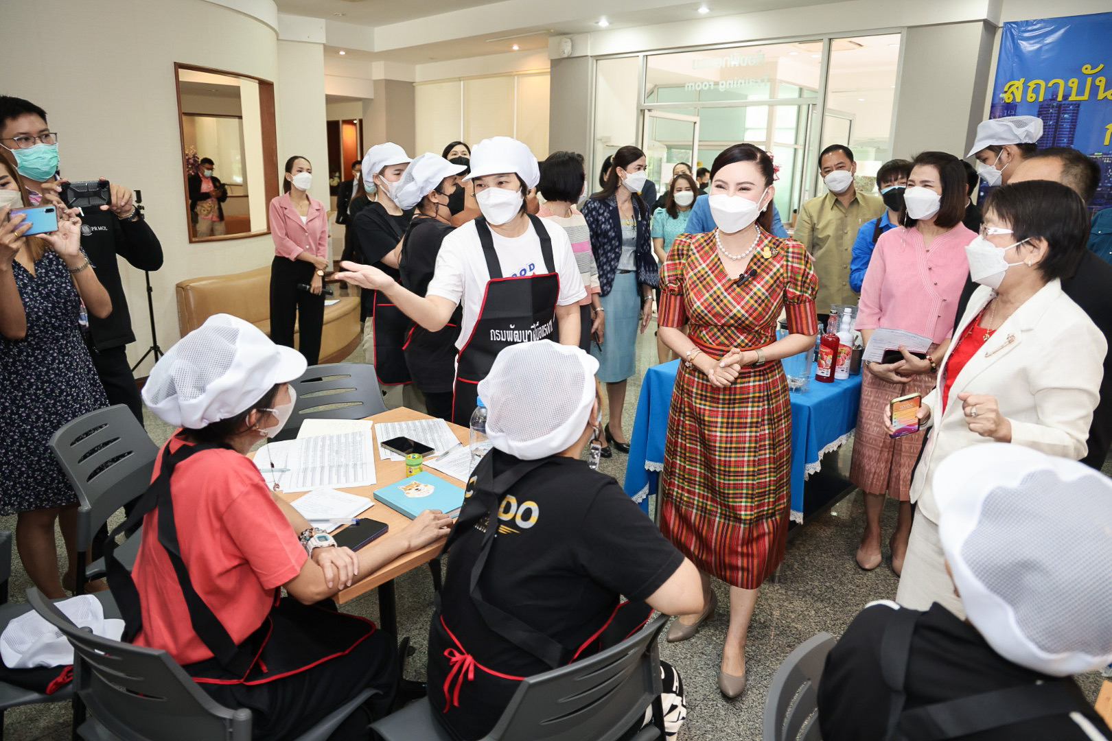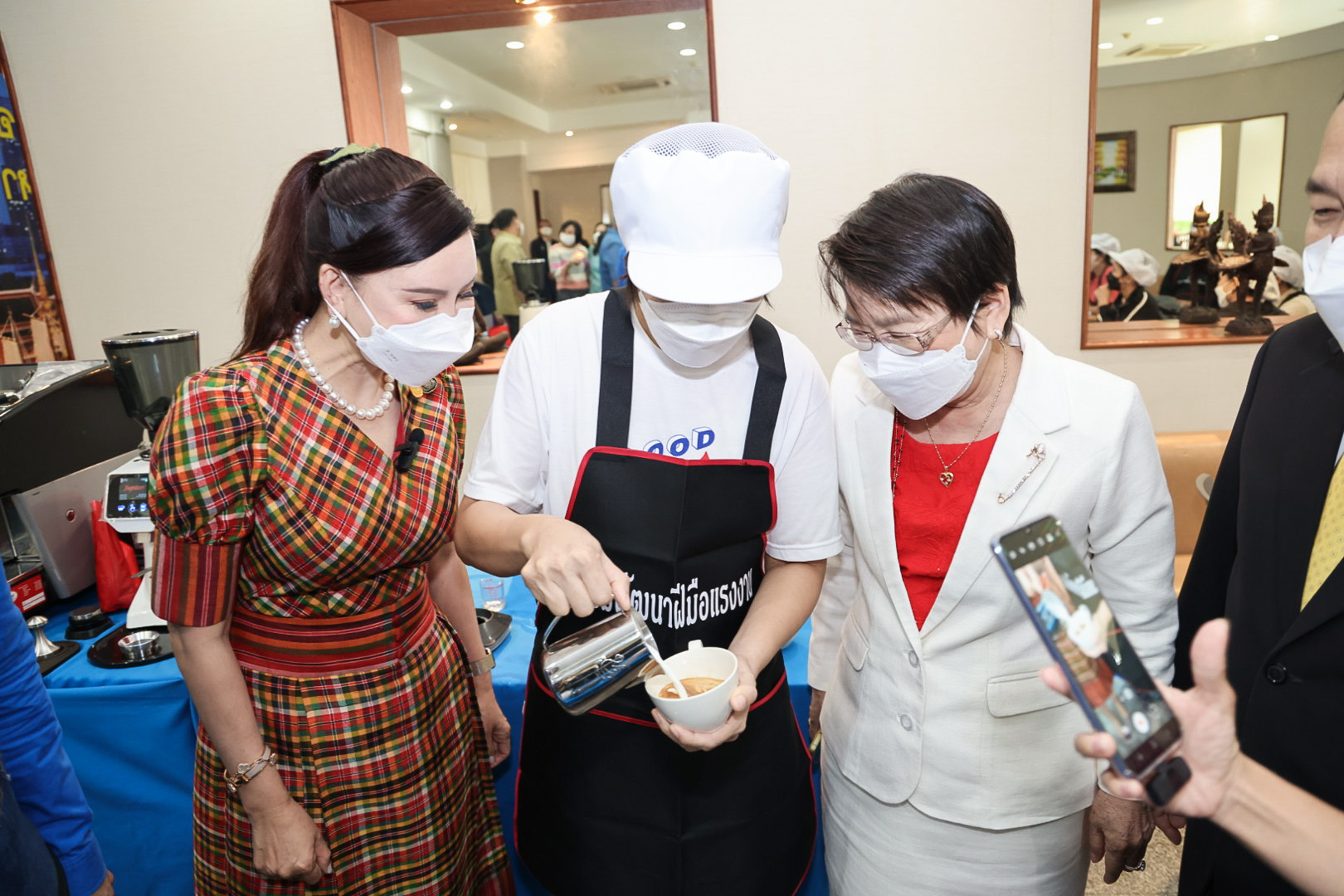 On August 2, 2022, the Labour Minister, Mr. Suchart Chomklin, assigned his Advisor, Mrs. Thiwalrat Angkinan, the Ministry of Labour’s Spokesperson (on Politics), Mrs. Thienrat Navamawat, the Deputy Permanent Secretary of Labour and the Ministry of Labour’s Spokesperson, Mr. Wannarat Srisuksai, and the Department of Skill Development’s Director-General, Mr. Prateep Songlamyong, observed the training to give morale and encouragement to the trainees who are former employees of JSL Global Media Co., Ltd. who were laid off. The Department of Skill Development was instructed to organize urgent occupational training, following the government’s policy, under the leadership of Prime Minister and Minister of Defense General Prayuth Chan-ocha and the Deputy Prime Minister General Prwit Wongsuwan, who oversees the Ministry of Labour. The Ministry of Labour was assigned to provide full assistance in skills training to increase career opportunities in other positions, following the government policy of “leaving no one behind.” The former employees opted for the professional barista course with the Department of Skill Development. A total of 25 people joined the 30-hour course between August 1 to 5, 2022, at the Labour College, Department of Skill Development.