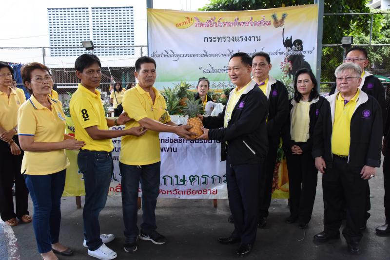 On July 1, 2018, H.E. Police General Adul Sangsingkeo, Minister of Labor, together with Mr. Jarin Chakkaphark, Permanent Secretary of Labor and senior executives from the Ministry of Labor in the Din Daeng area to give pineapples to the people in the community at Din Daeng Sports Stadium at Flat 51 – 53 Soi Prachatai 11, Dindaeng District, Bangkok, with Mr. Daranai Insawang, Deputy Governor of the National Housing Authority, Mr. Wichan Kiawkaew, Chairman of Din Daeng Community 2, and the flat people more than 250 people attended the reception. The Minister of Labor said that the case of pineapple growers in many provinces is experiencing a price depression because there are a lot of output to market. The Ministry of Labor has joined forces. Colonel Dr. Pongsak Tangkana, president of the Mental Foundation and Okmass Co., Ltd. buy pineapple 20,000 to help pineapple growers. In the province of Lampang and Chiang Rai over 20 tons to be distributed to government officials, Ministry of Labor, the people in the district of Din Daeng. The Ministry of Labor is also distributing to agencies that support the operation of the Ministry of Labor as well, such as the police station of Din Daeng, Pibulsong Prayan School, and Muhayeereen Mosque.