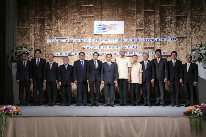 Today (May 28, 2018) H.E. Police General Adul Sangsingkeo, Minister of Labor, presided over the opening ceremony of the Labor Force Seminar in response to the EEC Area Development. “The shortage of labor and labor in the EEC area: present and future “at Mayfair Ballroom A, 11th floor, Berkeley, Pratunam, Bangkok.