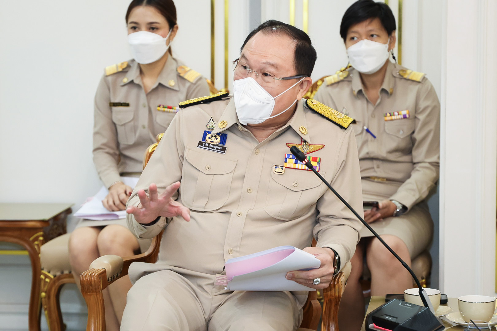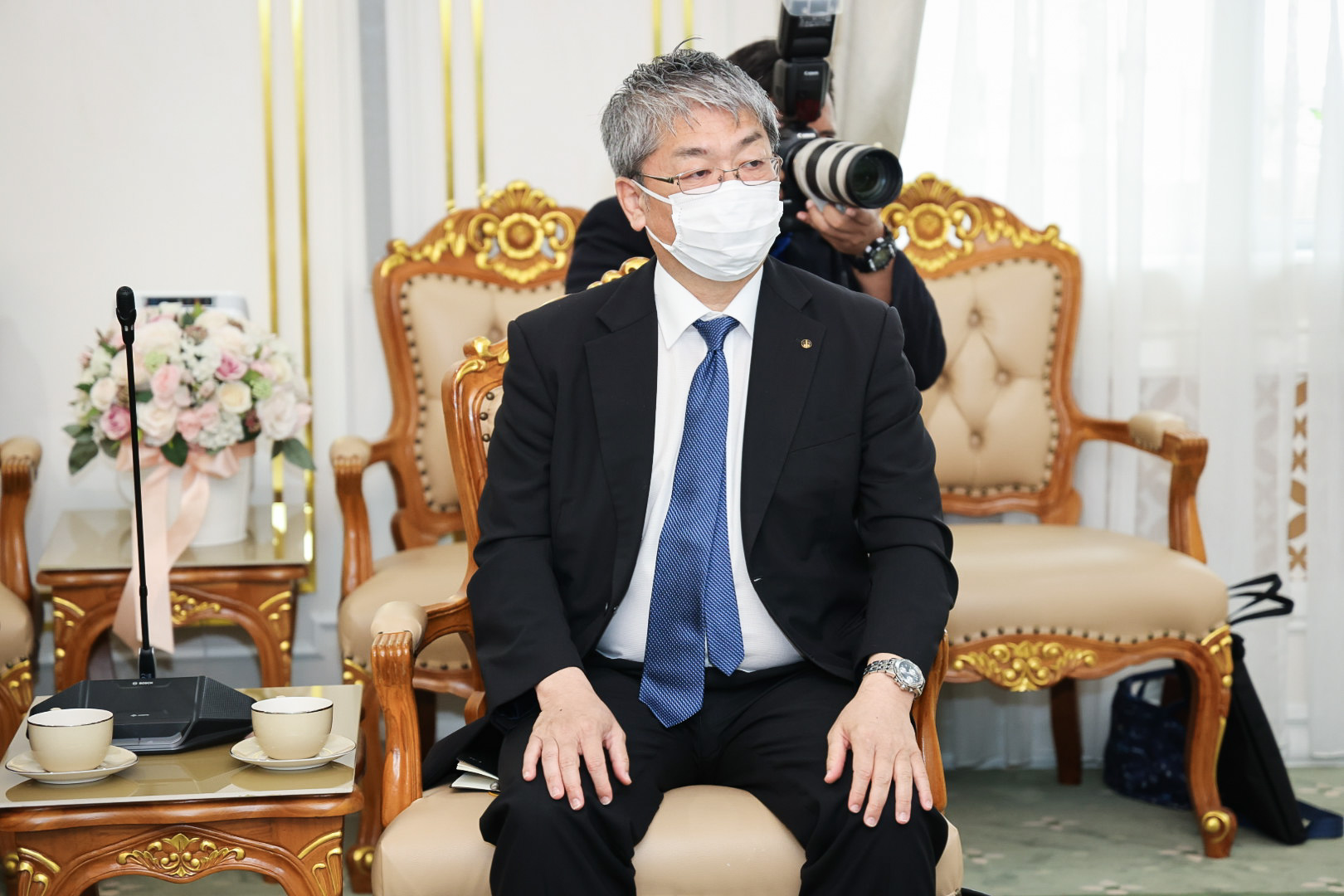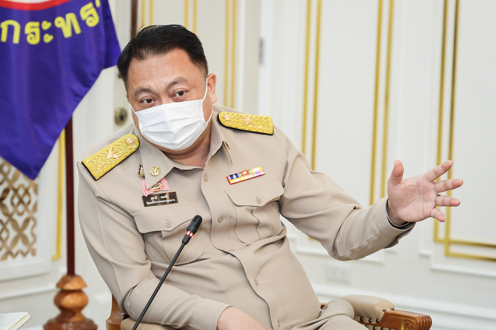 On May 23, 2022, Labour Minister Mr. Suchart Chomklin welcomed Mr. Hitoshi Kanamori, President of the International Manpower Development Organization, Japan (IM Japan) and delegation, on a courtesy call to the Labour Minister. The meeting took place on the occasion of Mr. Hitoshi Kanamori taking the President of IM Japan position in March 2020. They also discussed the government’s requirements for expanding the recruitment of Thai technical interns, including ways to expand cooperation to a new agreement on the recruitment of specialized skilled workers. Assistant to the Labour Minister Mr. Surachai Chaitrakulthong, Secretariat to the Labour Minister, Mr. Suthep Chitvong, Assistant Minister from the Prime Minister’s Office performing duties for the Ministry of Labour, Mr. Suthi Sukosol, the Ministry of Labour’s Spokesperson (on politics), and Mrs. Thienrat Navamawat, Permanent Secretary of Labour, Mr. Boonchob Suttamanaswong and the Ministry of LAbour’s executives also joined the occasion at the Chatumongkol Meeting Room, 6th floor, Ministry of Labour.
