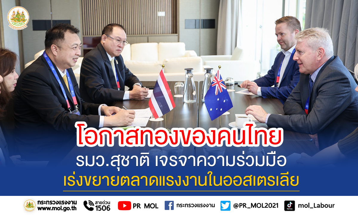 “I would like to thank the Minister for Skills and Training from the Australian Department of Employment and Workplace Relations for the discussion today. It is considered a good signal that will help create more opportunities for Thai workers to work abroad, increase their skills and raise income for themselves and their families. Most importantly, it will help generate money for the country and increase competitiveness,” concluded Mr. Suchart.