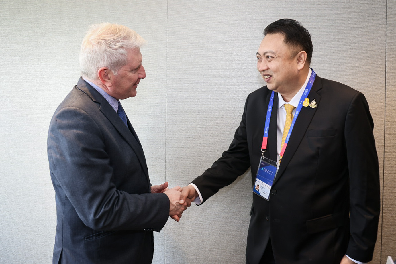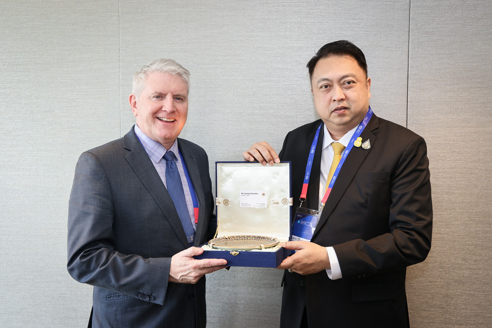On December 7, 2022, the Labour Minister, Mr. Suchart Chomklin, and the delegation had a bilateral meeting with H.E.The Hon Brendan O’ Connor MP, Minister for Skills and Training, from the Australian Department of Employment and Workplace Relations, on the occasion of traveling to Singapore to attend the ILO’s 17th Asia and the Pacific Regional Meeting (APRM), and discussions on cooperation in opening up the labour market in Australia. The Ambassador of Thailand to Singapore, Mr. Chutintorn Kongsak, gave a welcome at the Ord Meeting Room, Stamford Meeting Rooms, Level 4, Raffles City Convention Center, Singapore.