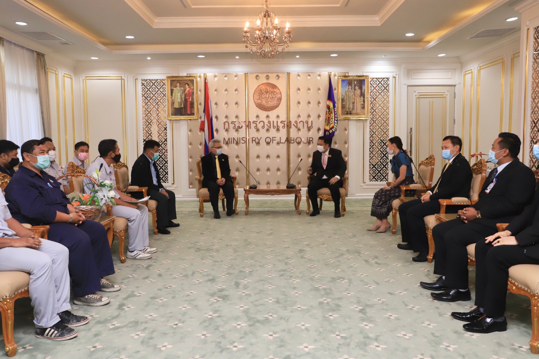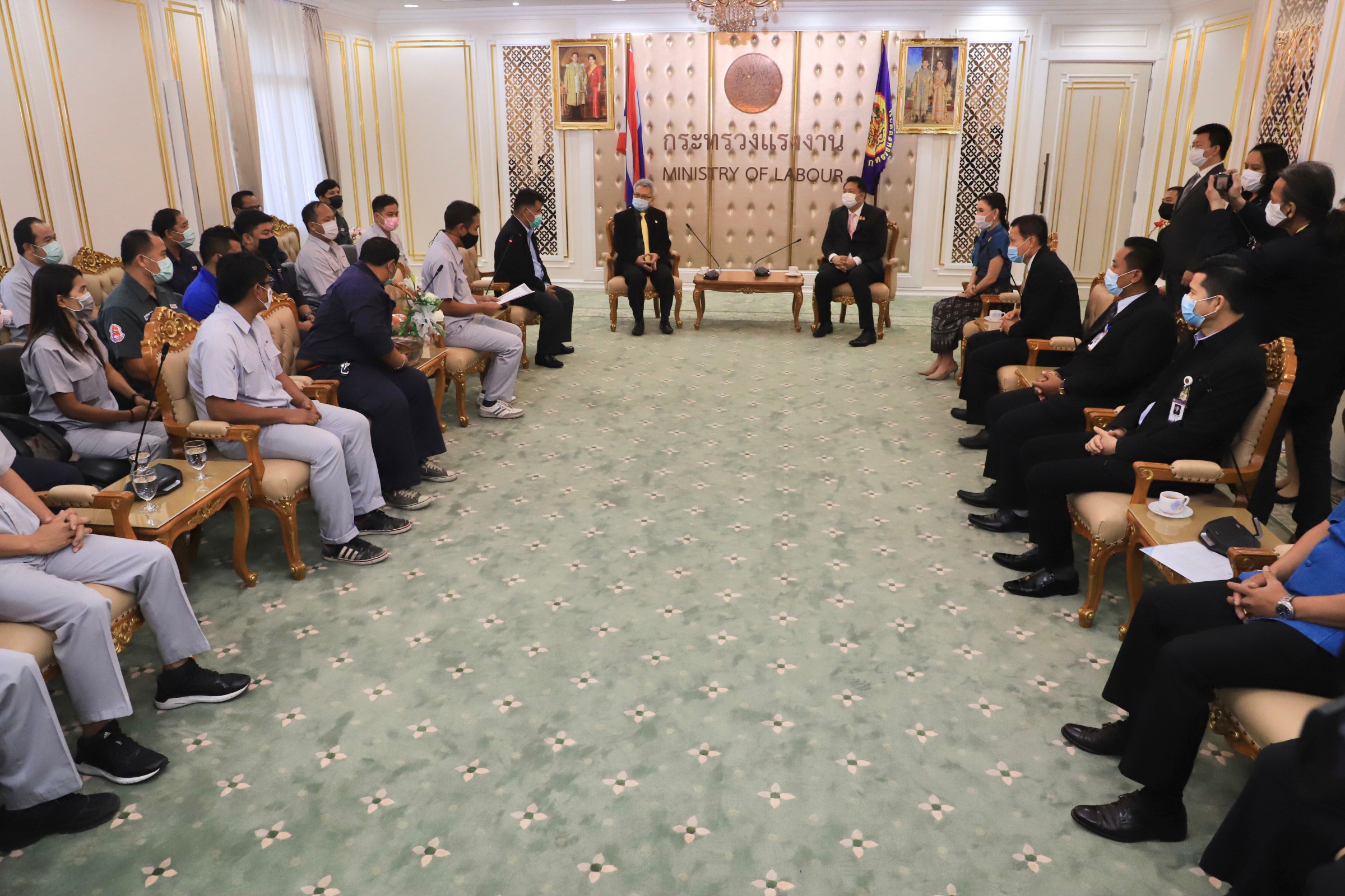 On February 5, 2021, Labour Minister Mr. Suchart Chomklin welcomed Hitachi Compressor’s (Thailand) Labour Union to meet and thank the Labour Minister on the occasion that the labour union submitted a letter to the Labour Minister asking for help on the employer business transfer issues. The Department of Labour Protection and Welfare and related agencies had negotiated and resolved the conflicts until all parties achieved a common understanding. Advisor to the Labour Minister, Mrs. Thiwalrat Angkinan, the Labour Minister’s Secretariat Mr. Suthep Chitayavong, and senior executives of the Ministry of Labour also participated in this occasion at the Chatumongkol Room, 6th floor, Ministry of Labour. On January 18, 2021, Labour Minister Mr. Suchart Chomklin assigned Advisory Board Members Mr. Manat Kosol and Teerawit Wongphet as representatives to assist in the case where the company changed shareholders. Director-General of the Department of Labour Protection and Welfare Mr. Wannarat Srisuksai received the letter and attended a meeting at Hitachi Compressor (Thailand) Co., Ltd. located at 1/65 Moo 5, Khanham, Uthai, Phra Nakhon Si Ayutthaya. The company manufactures refrigerator compressors and freezers. Currently, there are 1,160 employees. The labour conciliation staff, Office of Labour Relations, and the Phra Nakhon Si Ayutthaya Office of Labour Protection and Welfare had three negotiations on January 15, 21, and 28, 2021. The negotiations resulted in Midea Electric Trading (Singapore) Co., Ltd. accepting all employees to attend the event and to understand the agreement on employment conditions. The company confirmed to comply with the agreement and related laws in preparation to receive the transfer of rights and duties and all welfare. Hitachi asked Midea Group to issue a letter confirming its compliance with the employment conditions agreement, where all parties have the same understanding causing the said conflict to be settled. The Ministry of Labour proposed for both parties’ representatives to cooperate and comply with the agreement to further strengthen the labour relations system.