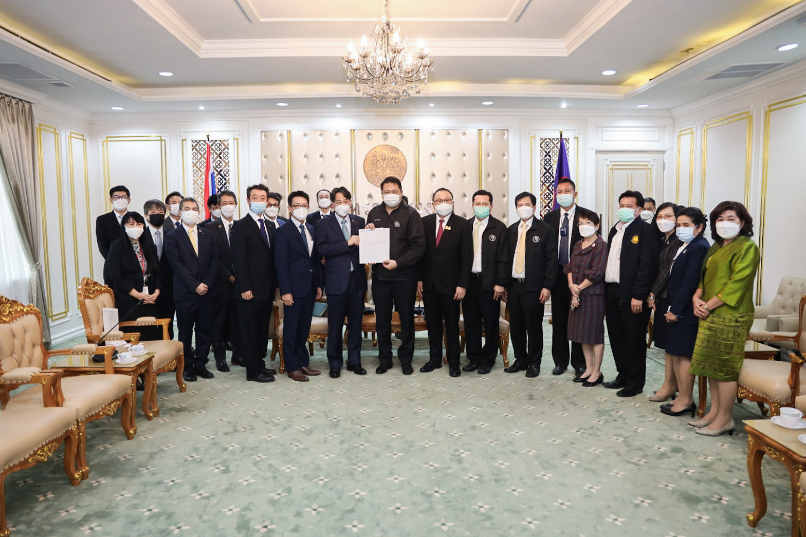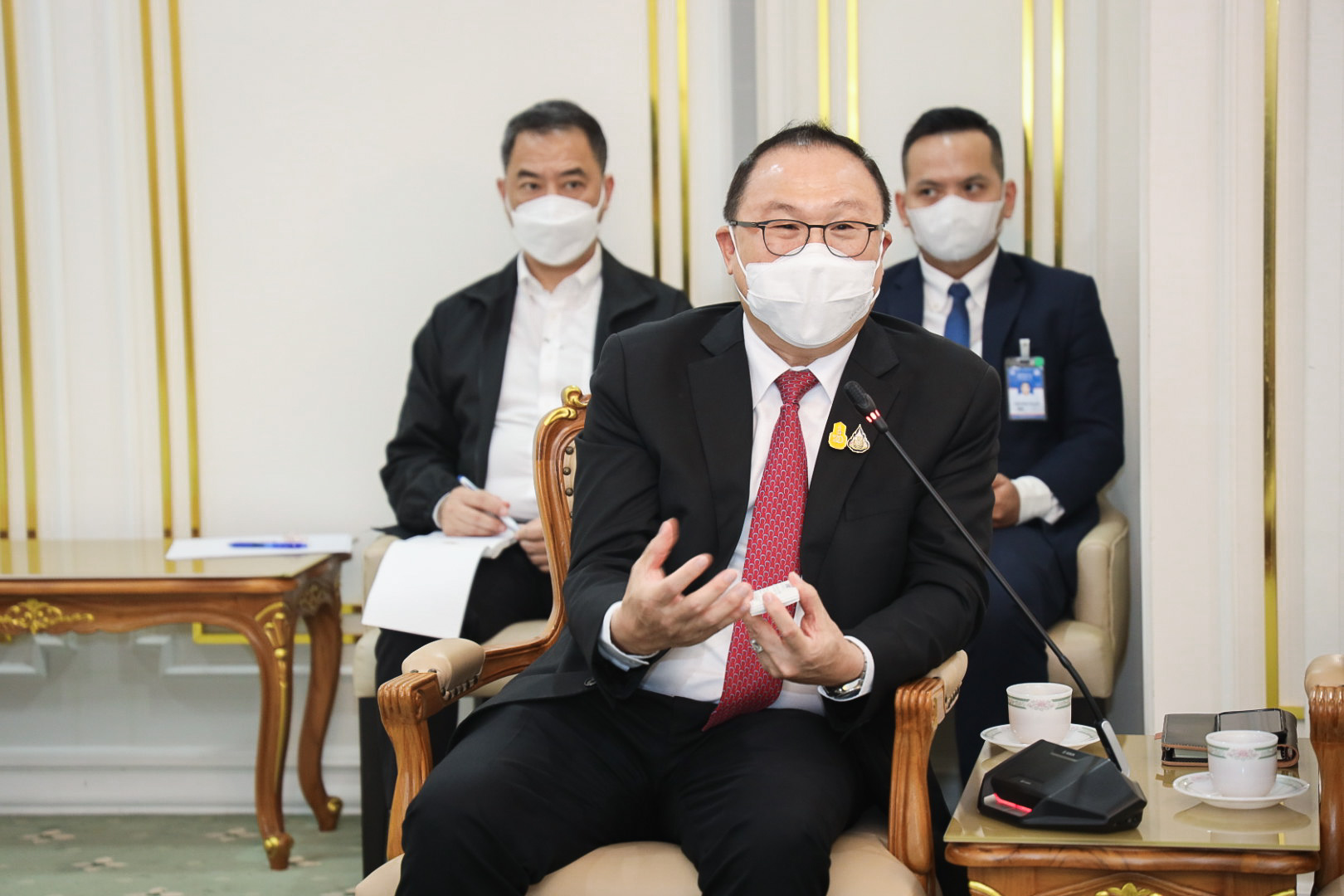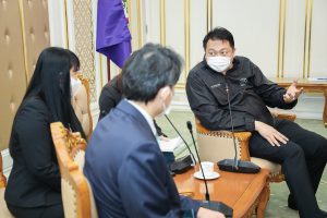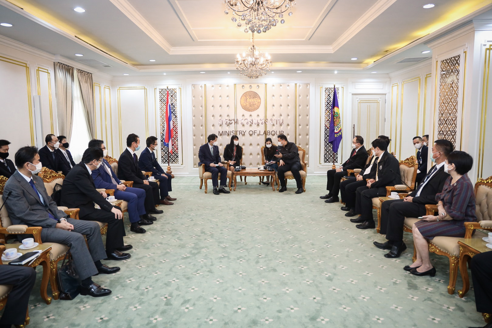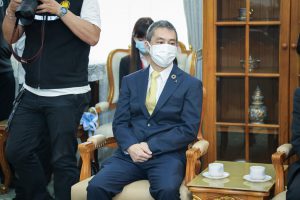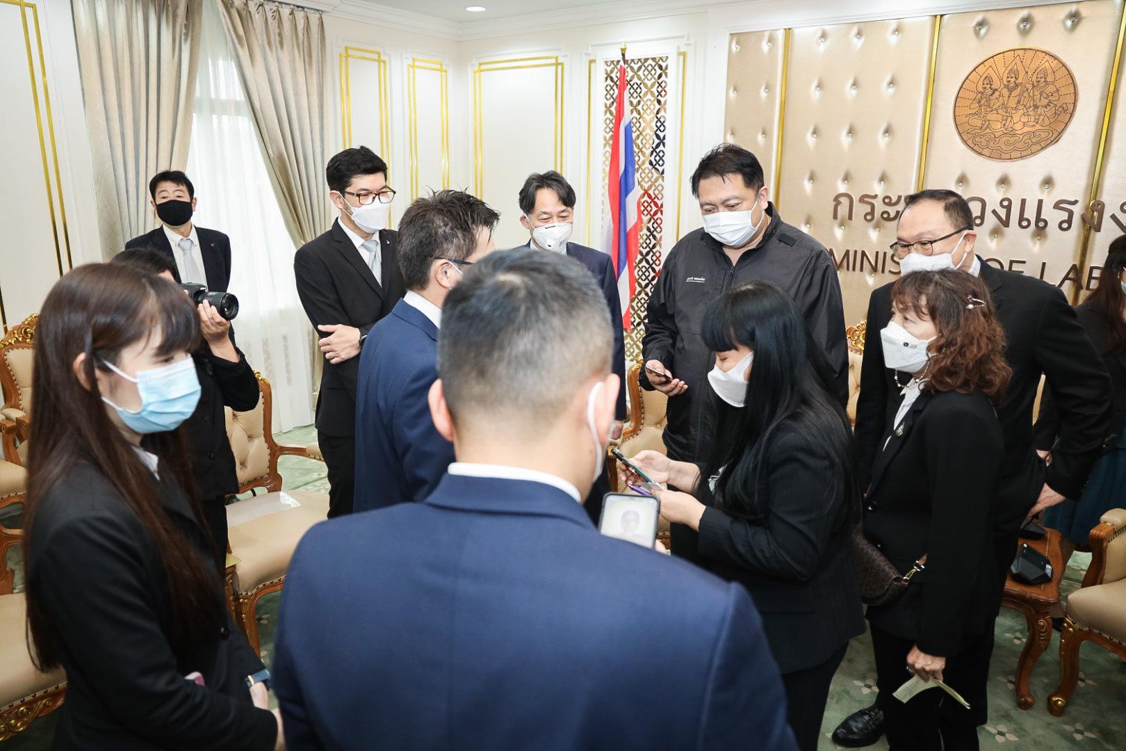 On September 14, 2021, Labour Minister Mr. Suchart Chomklin welcomed Mr. Koji Nakai, Chairman of Aisin Asia Pacific (Thailand) Co., Ltd., and Japanese investors, who met with the Labour Minister to thank the government and the Ministry of Labour for helping the company’s employees to receive vaccinations under the Factory Sandbox program. They also gave thanks for the social activities and donations of consumer goods where the Ministry of Labour has supported the workforce affected by COVID-19. The meeting discussed ways to expand the Factory Sandbox project to more companies of Japanese investors, especially in Chonburi, Rayong, Chachoengsao, and Prachinburi provinces. Assistant to the Labour Minister Mr. Surachai Chaitrakulthong, Secretariat to the Labour Minister Mr. Suthep Chitayawong, the Ministry of Labour’s Spokesperson (on politics) Mrs. Theanrat Nawamawat, Permanent Secretary of Labour Mr. Suthi Sukosol, and the Ministry of Labour’s executives joined the occasion at the Chatumongkol room, 6th floor, Ministry of Labour. Mr. Suchart said that the government under the leadership of Prime Minister and Minister of Defense General Prayuth Chan-ocha and the Ministry of Labour under the supervision of Deputy Prime Minister General Prawit Wongsuwan is concerned about investors and the workforce. Therefore, the government has important policies to implement measures to prevent and control the spread of COVID-19 in factories. The Ministry of Labour has implemented the Factory Sandbox project, which has the heart of examination, treatment, control, and supervision by operating in a manner of “Health Economics” to build employee immunity and confidence in driving the economy, to help the nation overcome the COVID-19 crisis together.