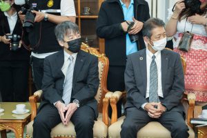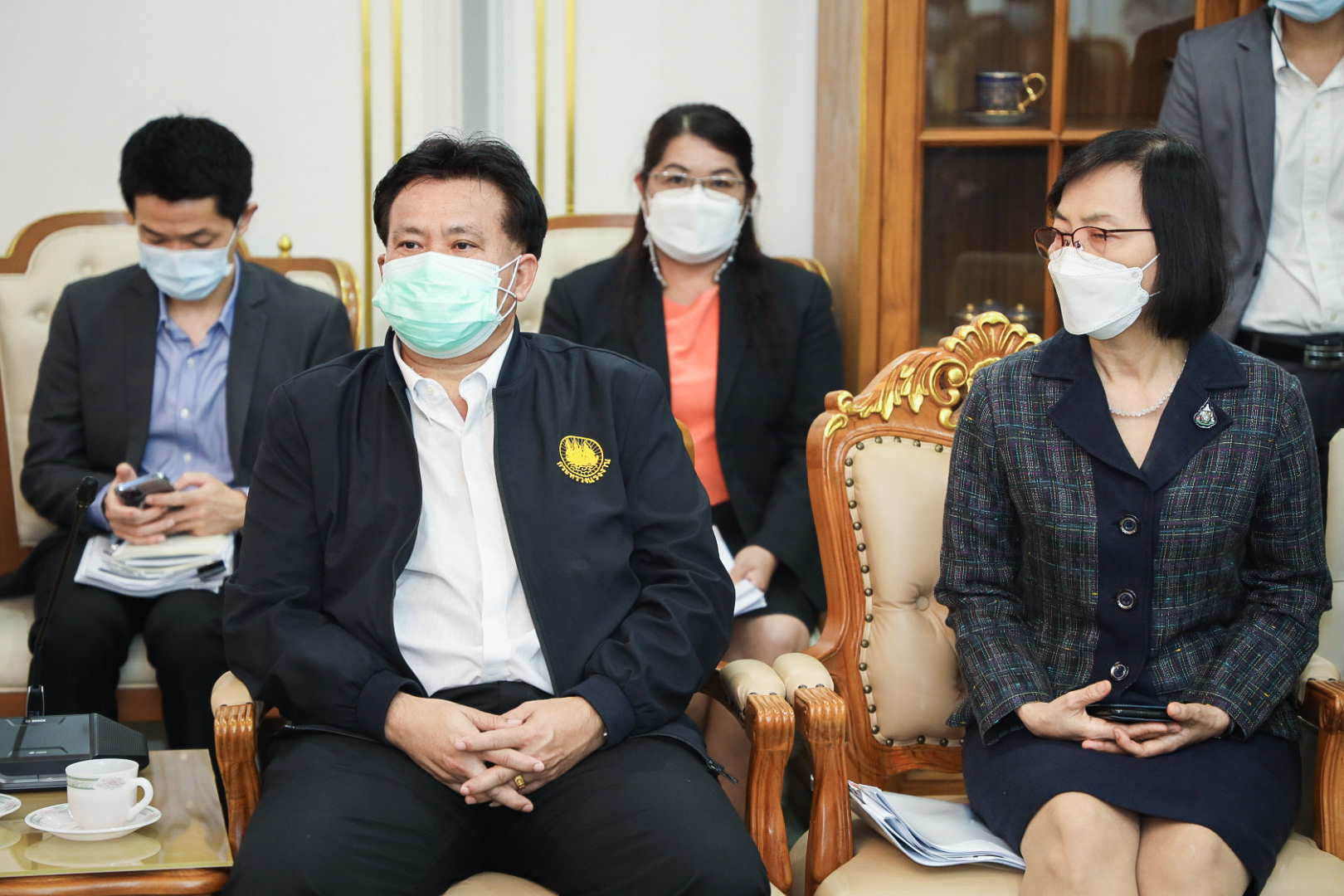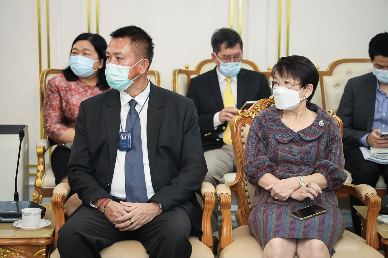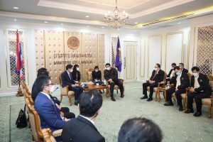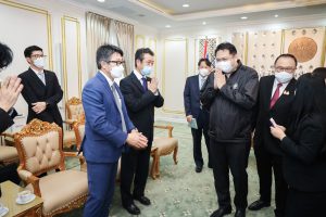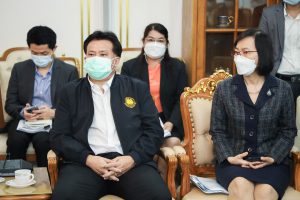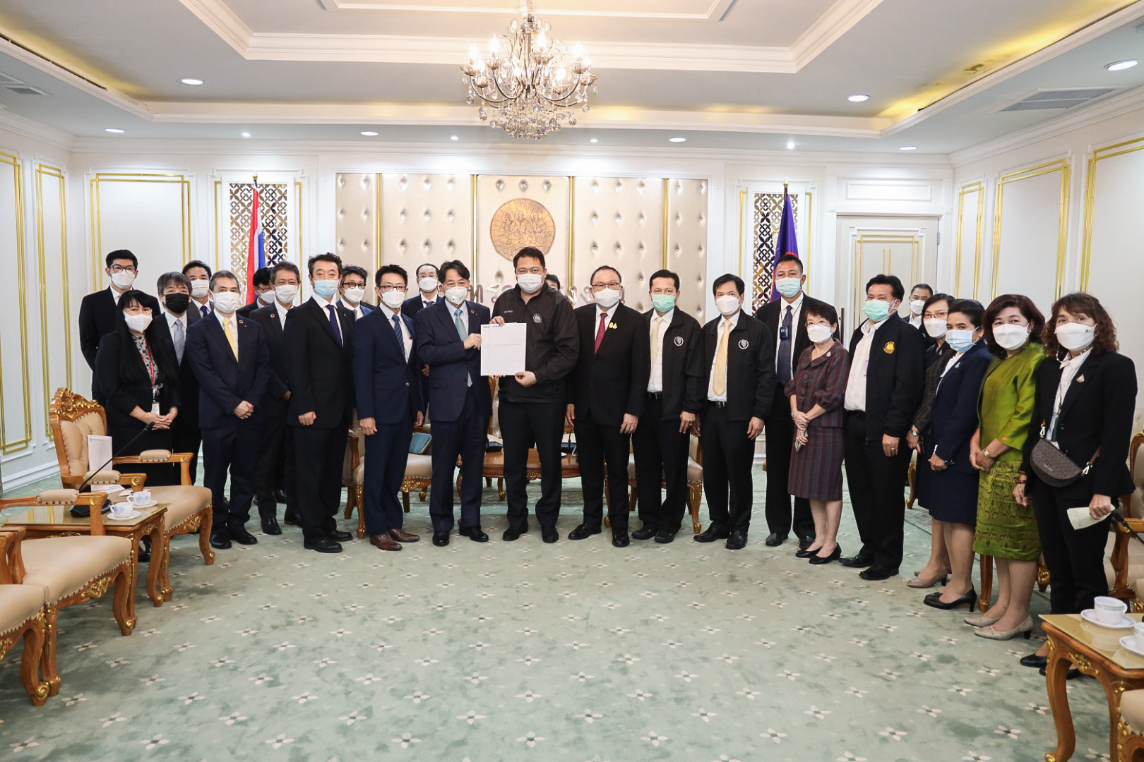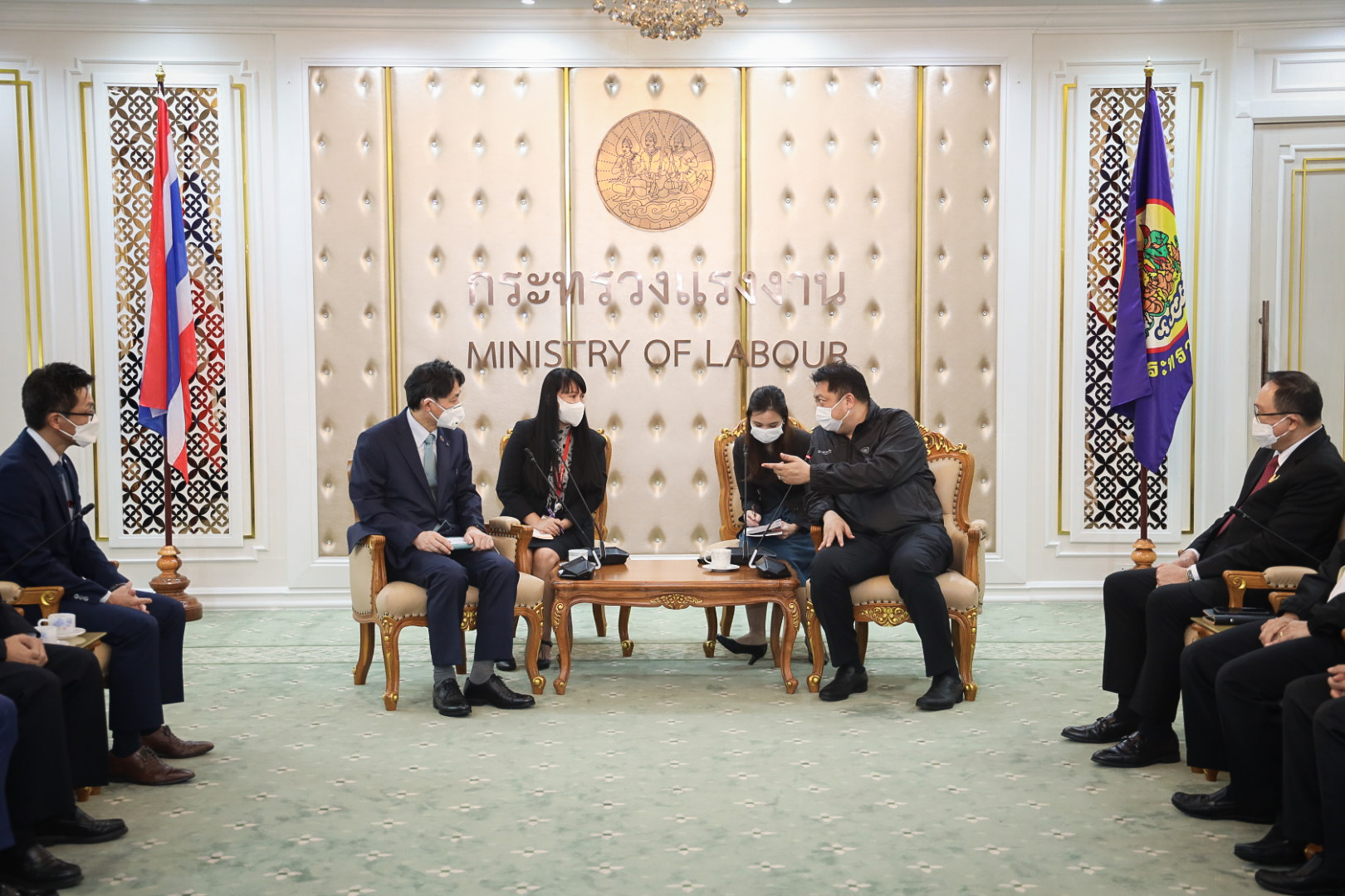 On September 14, 2021, Labour Minister Mr. Suchart Chomklin welcomed Mr. Koji Nakai, Chairman of Aisin Asia Pacific (Thailand) Co., Ltd., and Japanese investors, who met with the Labour Minister to thank the government and the Ministry of Labour for helping the company’s employees to receive vaccinations under the Factory Sandbox program. They also gave thanks for the social activities and donations of consumer goods where the Ministry of Labour has supported the workforce affected by COVID-19. The meeting discussed ways to expand the Factory Sandbox project to more companies of Japanese investors, especially in Chonburi, Rayong, Chachoengsao, and Prachinburi provinces. Assistant to the Labour Minister Mr. Surachai Chaitrakulthong, Secretariat to the Labour Minister Mr. Suthep Chitayawong, the Ministry of Labour’s Spokesperson (on politics) Mrs. Theanrat Nawamawat, Permanent Secretary of Labour Mr. Suthi Sukosol, and the Ministry of Labour’s executives joined the occasion at the Chatumongkol room, 6th floor, Ministry of Labour. Mr. Suchart said that the government under the leadership of Prime Minister and Minister of Defense General Prayuth Chan-ocha and the Ministry of Labour under the supervision of Deputy Prime Minister General Prawit Wongsuwan is concerned about investors and the workforce. Therefore, the government has important policies to implement measures to prevent and control the spread of COVID-19 in factories. The Ministry of Labour has implemented the Factory Sandbox project, which has the heart of examination, treatment, control, and supervision by operating in a manner of “Health Economics” to build employee immunity and confidence in driving the economy, to help the nation overcome the COVID-19 crisis together.