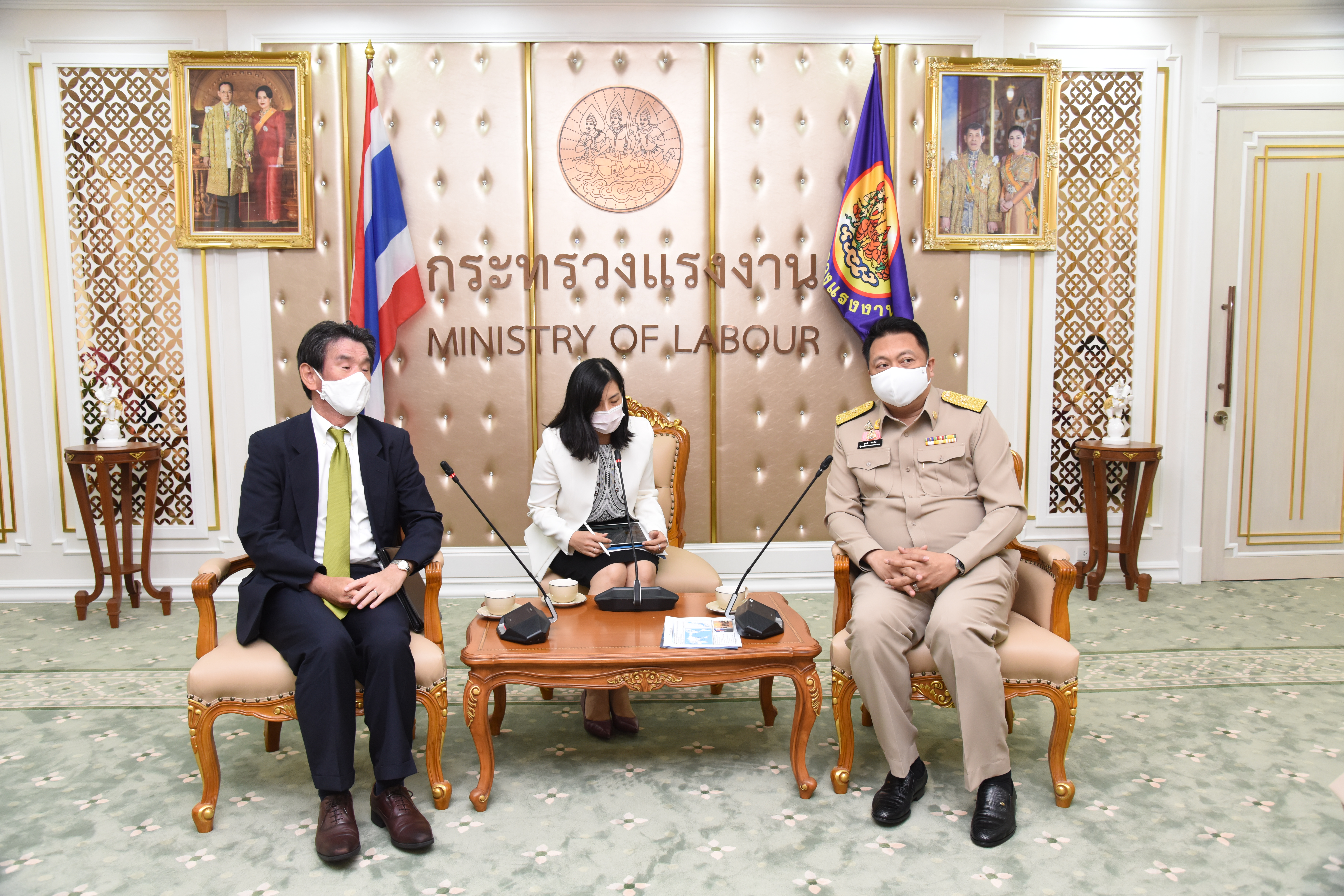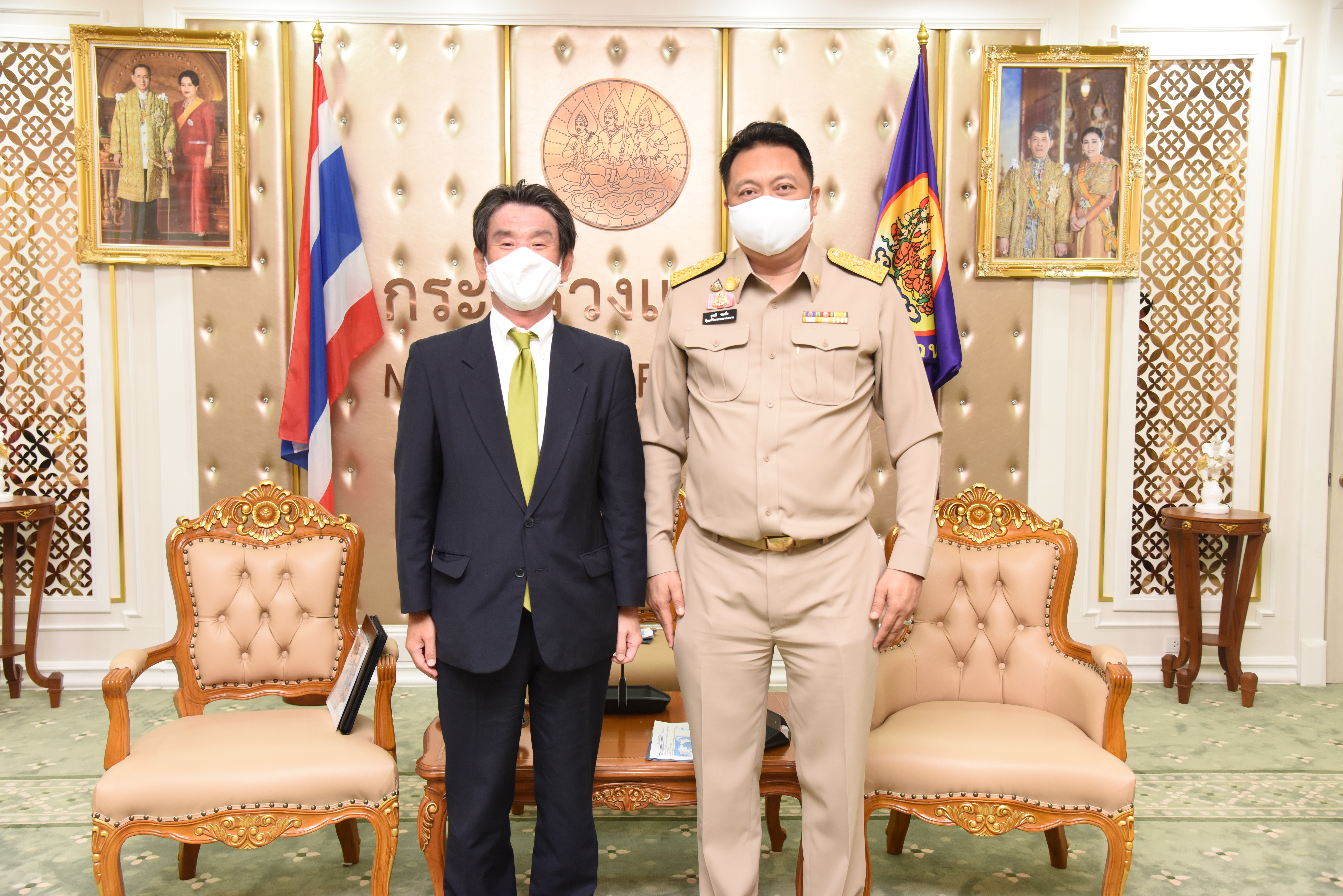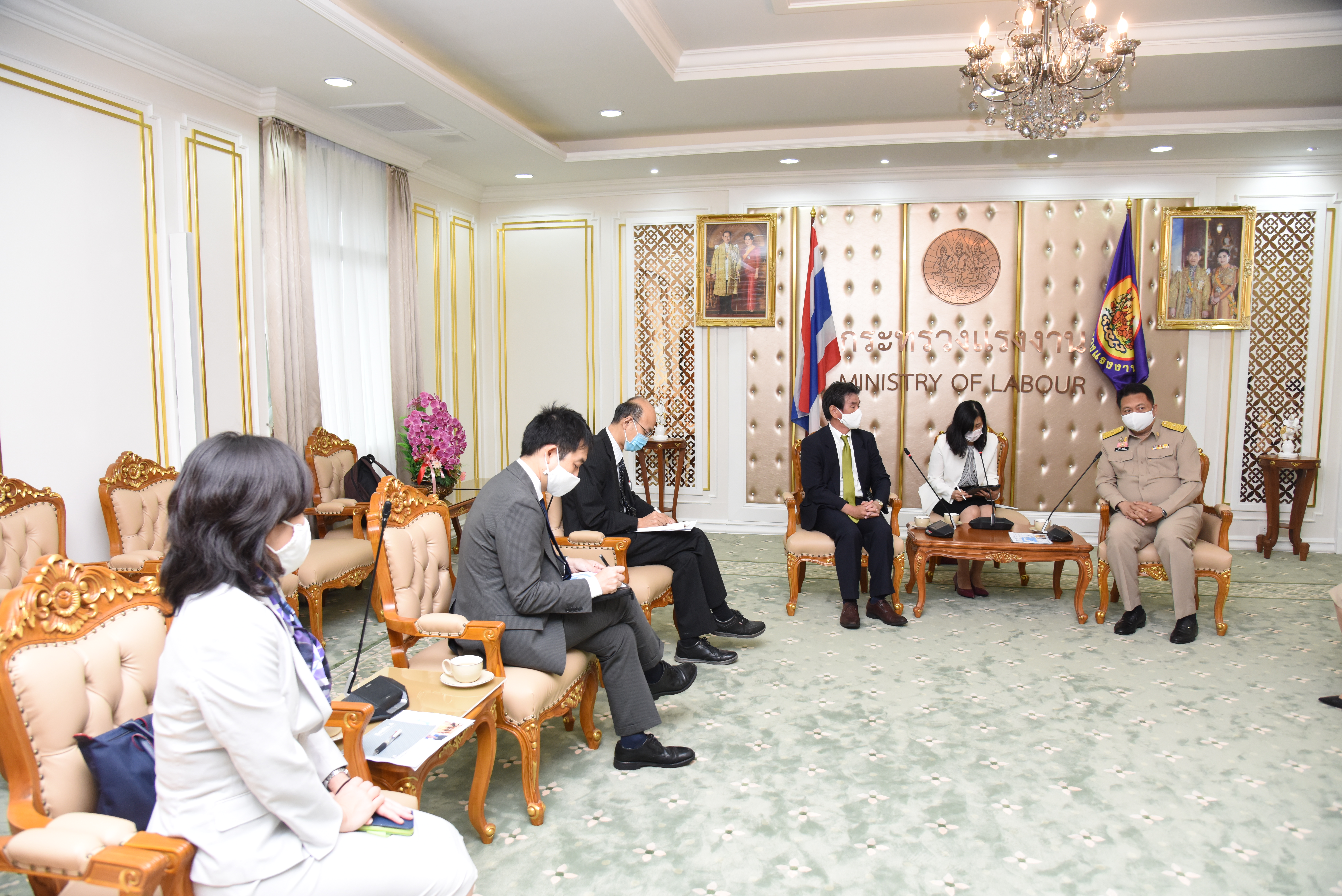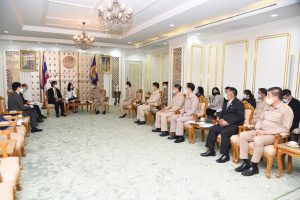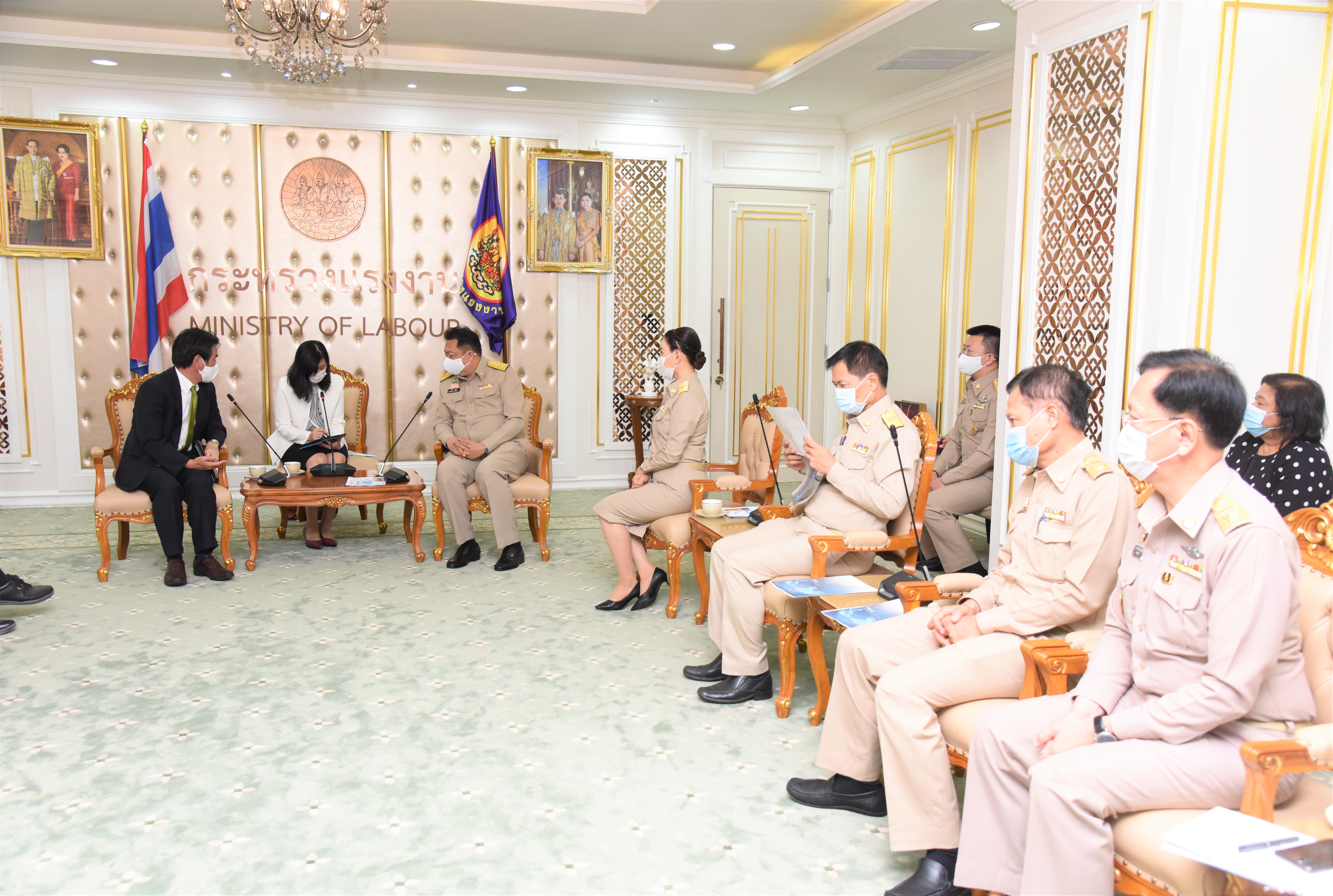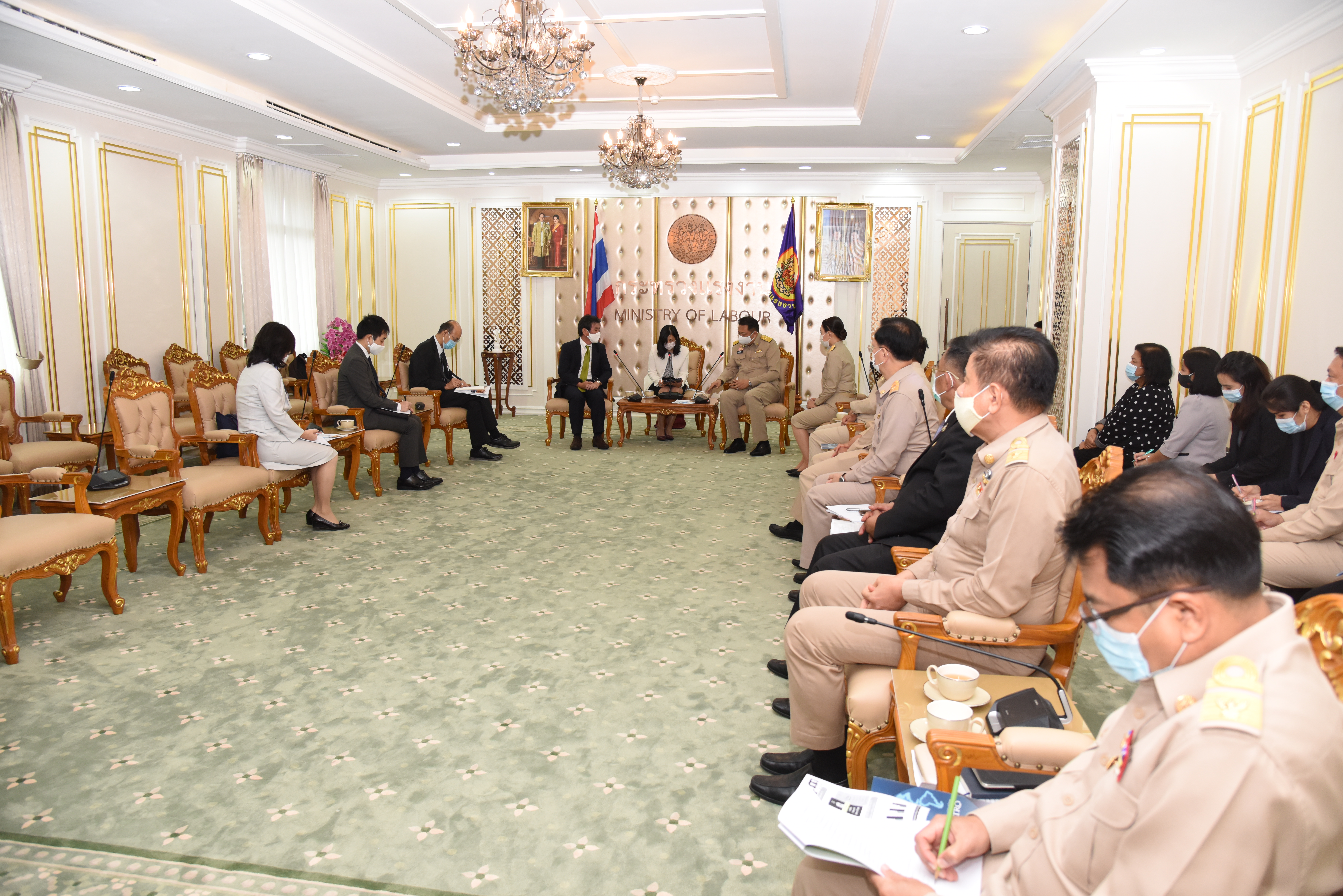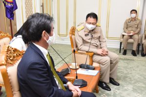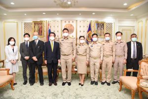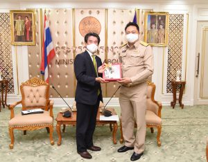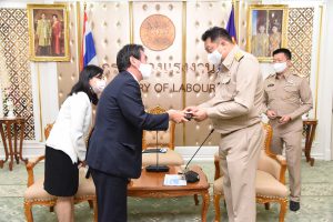 On September 14, 2020, at 13.00 hours, Labour Minister Mr. Suchart Chomklin welcomed the President of JETRO Bangkok Mr. Taketani Atsushi, and the committee to congratulate the Labour Minister labour policies to promote the business of Japanese companies in Thailand. Advisor to the Labour Minister Mrs. Thiwalrat Angkinan, Secretary-General to the Ministry of Labour Mr. Suthep Chitayavong, Permanent Secretary of Labour Mr. Suthi Sukosol, and the Ministry of Labour’s senior executives also joined the welcoming at the Jatumongkol Meeting Room, 6th floor, Ministry of Labour.