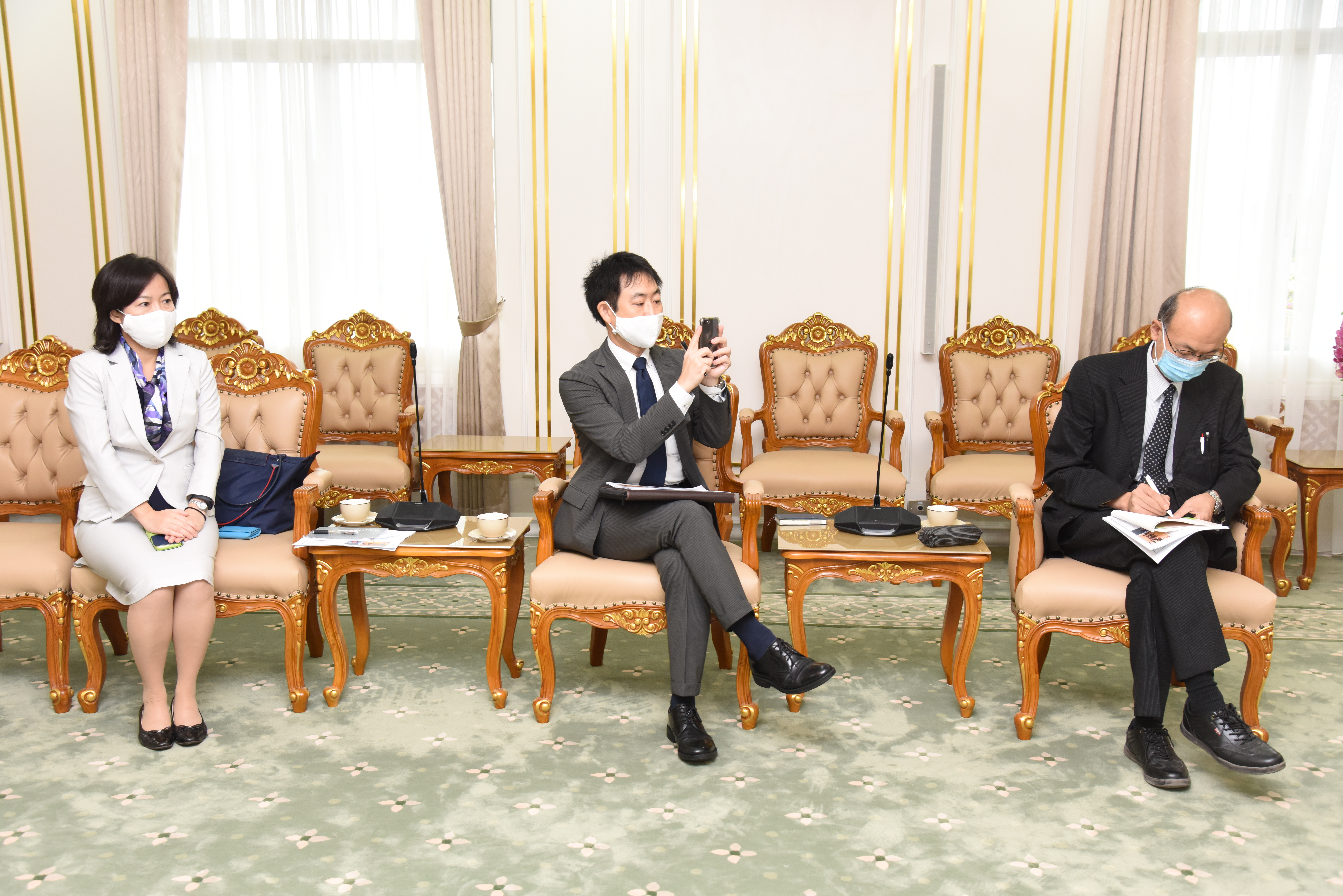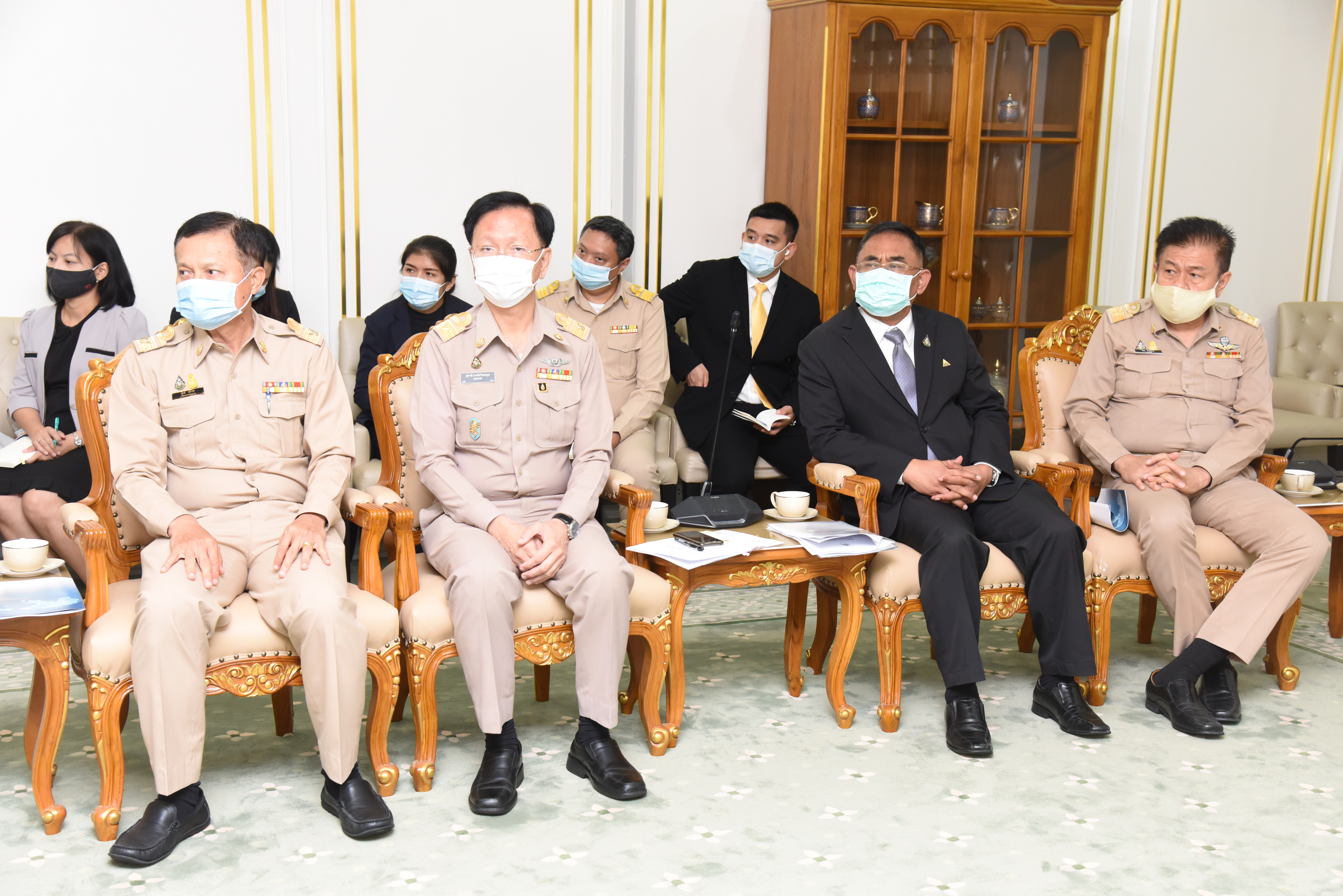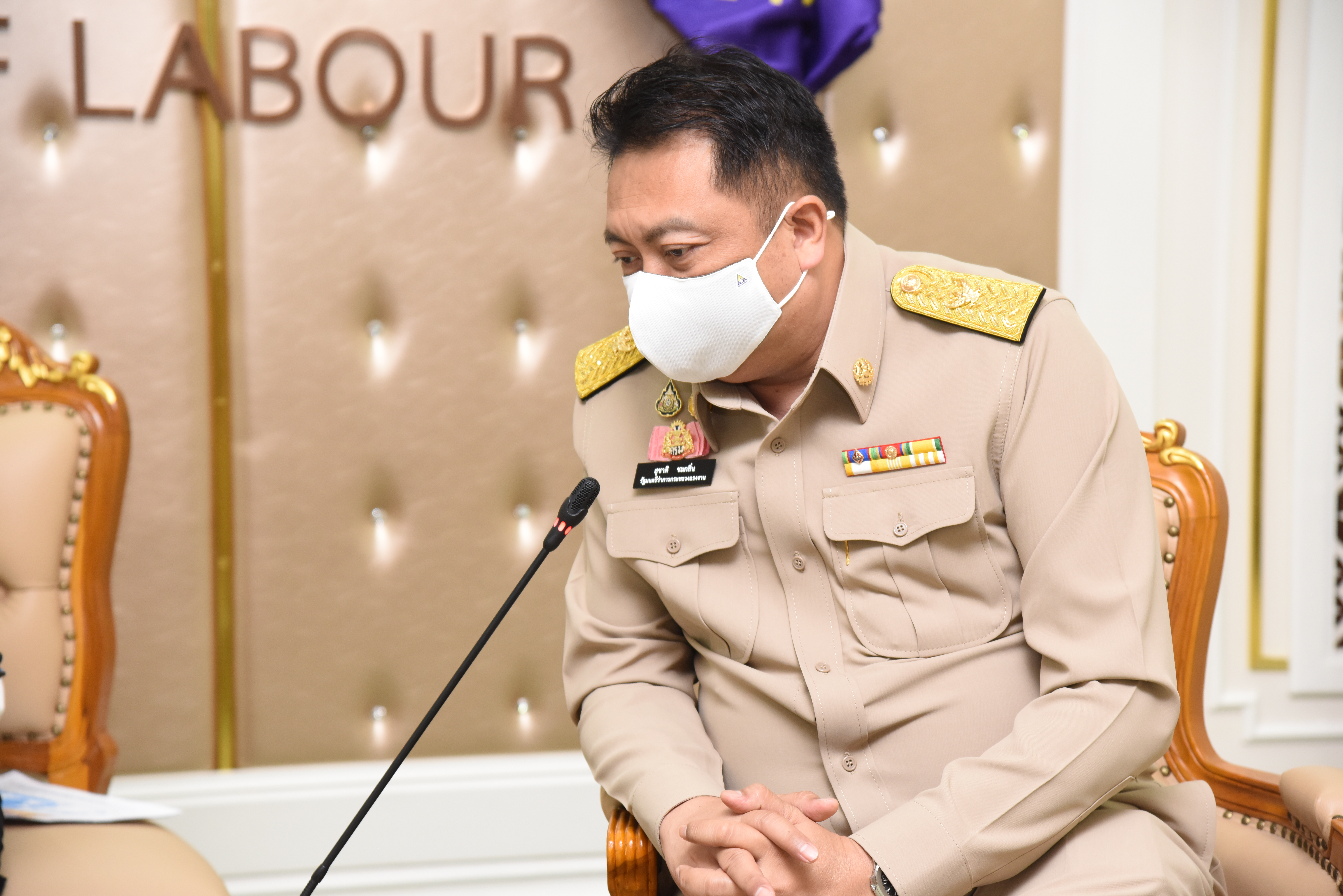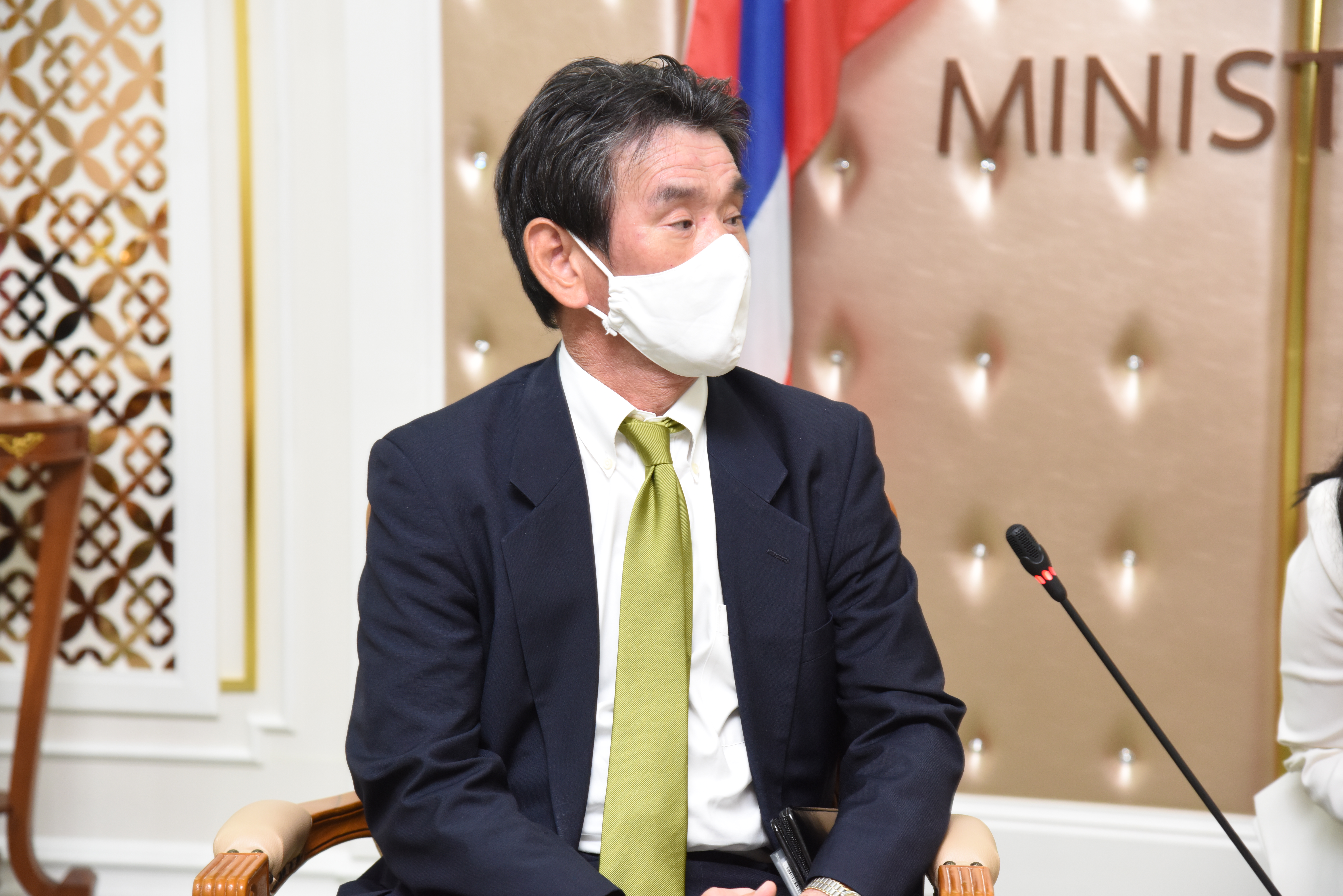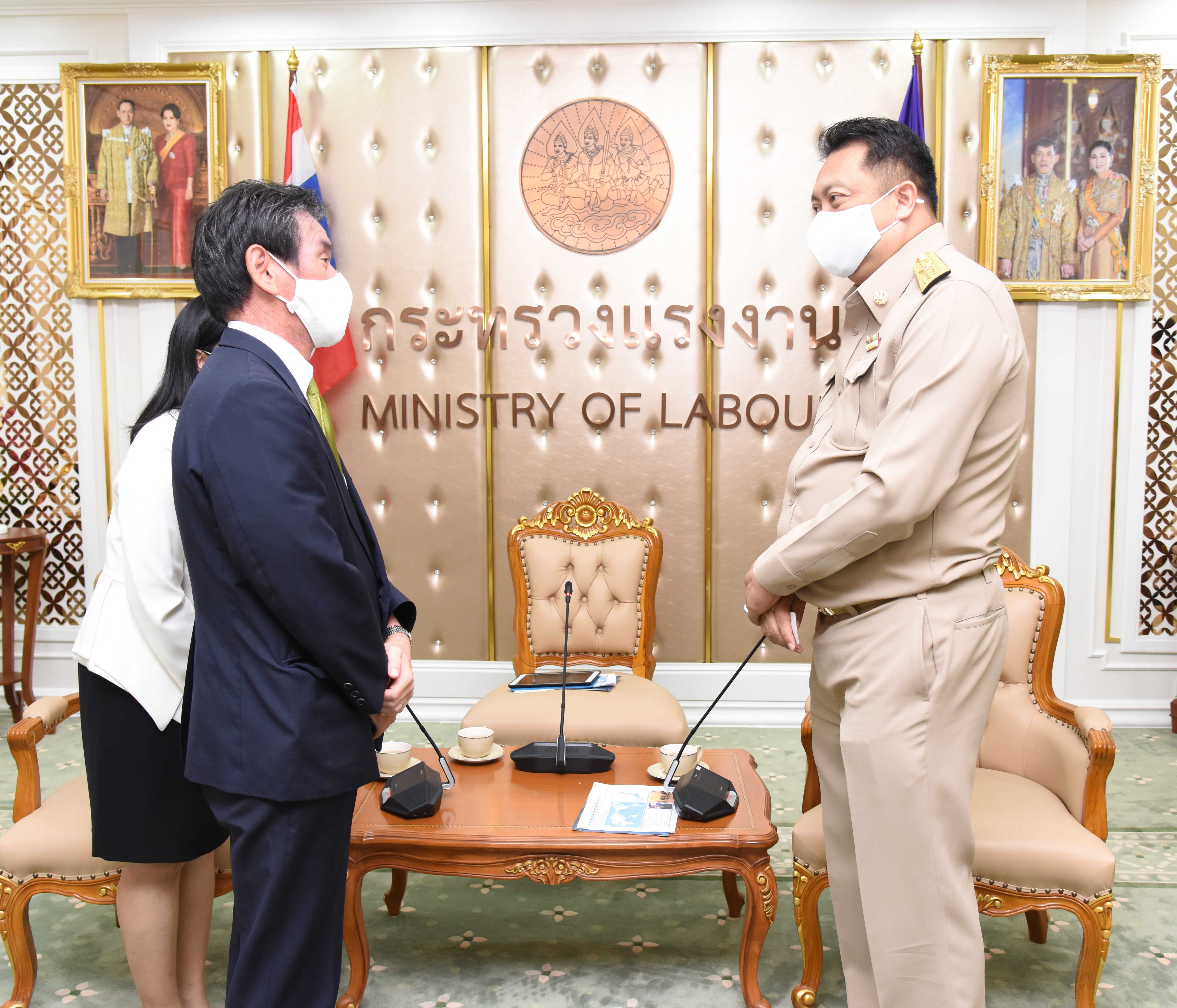 On September 14, 2020, at 13.00 hours, Labour Minister Mr. Suchart Chomklin welcomed the President of JETRO Bangkok Mr. Taketani Atsushi, and the committee to congratulate the Labour Minister labour policies to promote the business of Japanese companies in Thailand. Advisor to the Labour Minister Mrs. Thiwalrat Angkinan, Secretary-General to the Ministry of Labour Mr. Suthep Chitayavong, Permanent Secretary of Labour Mr. Suthi Sukosol, and the Ministry of Labour’s senior executives also joined the welcoming at the Jatumongkol Meeting Room, 6th floor, Ministry of Labour.