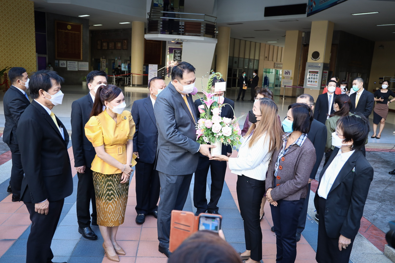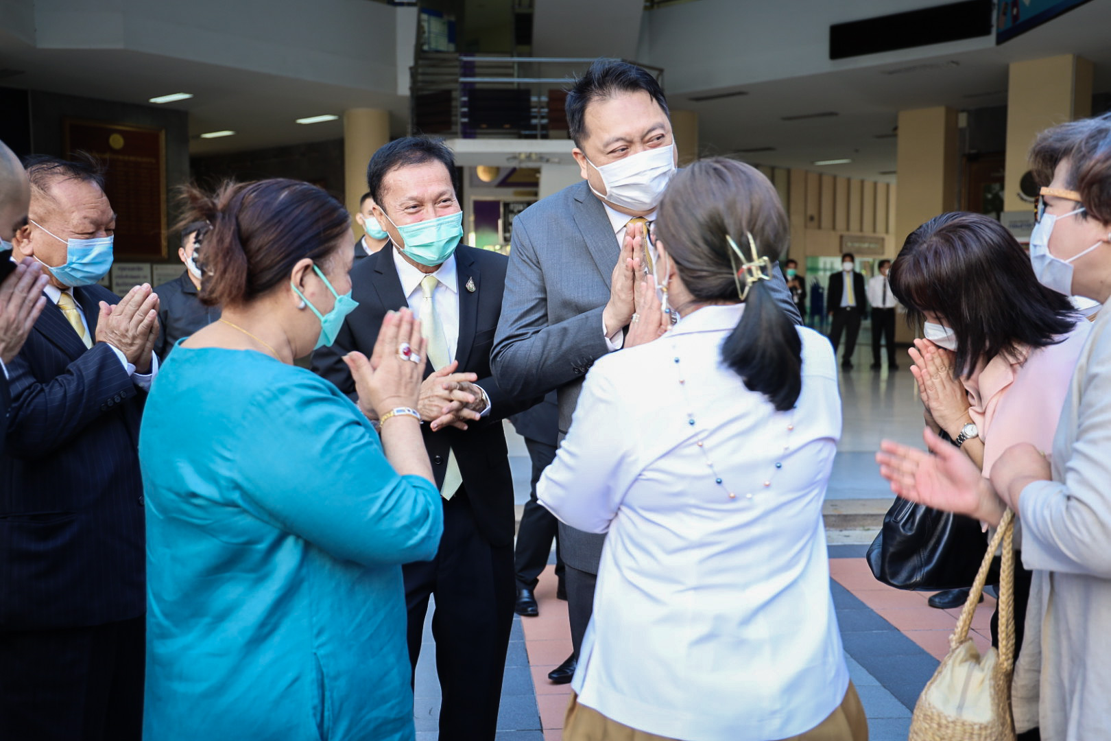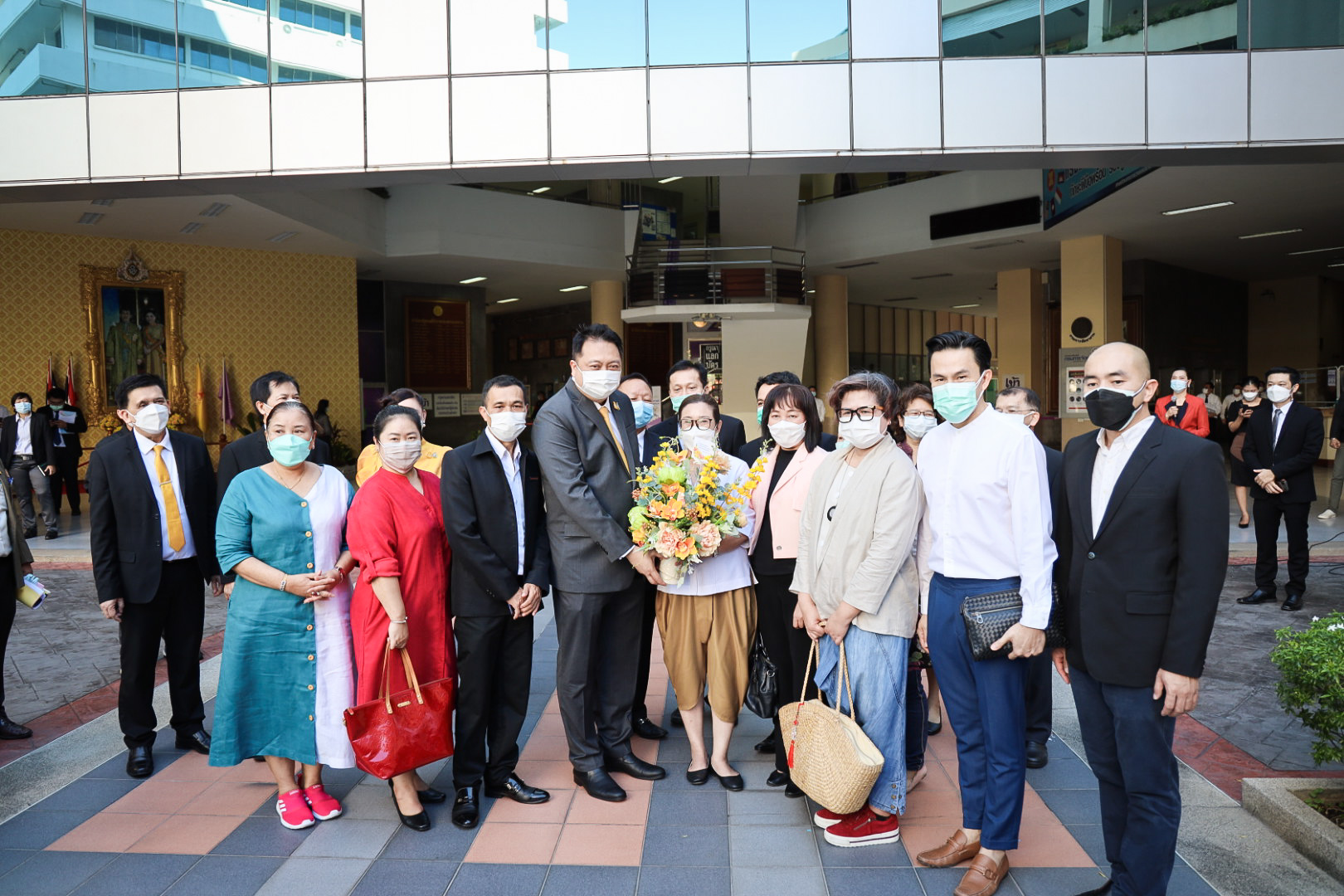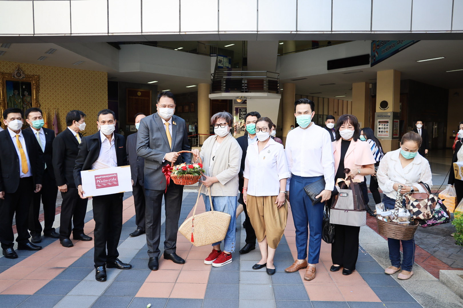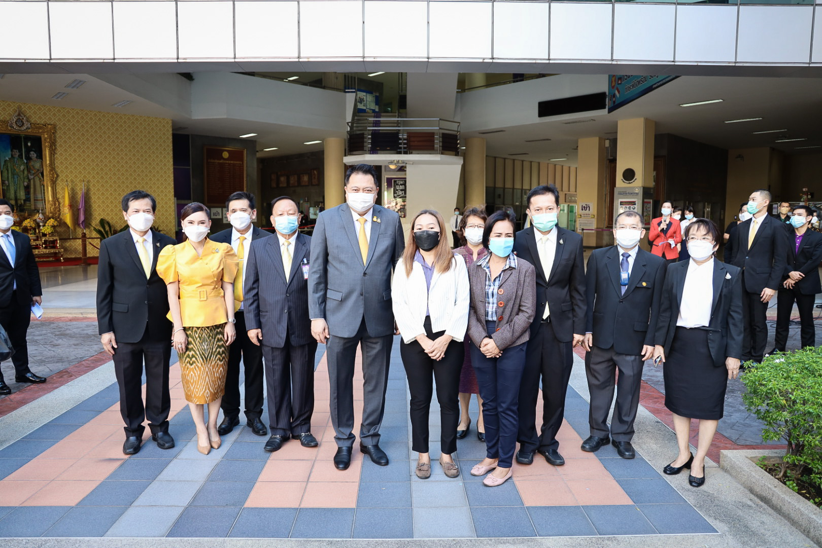 On August 18, 2021, labor leaders led by President of the Thai Taxi Association, Mr. Witoon Naewpanich, President of the Thai Restaurant Association, Mrs. Thaniwan Kulmongkol, and Chairman of the Bangkok Street Hawker Club, Ms. Yada Phornpetchrampha, met Labour Minister Mr. Suchart Chomklin to give souvenirs to thank Prime Minister General Prayuth Chan-ocha, Deputy Prime Minister General Prawit Wongsuwan and Labour Minister Mr. Suchart Chomklin, on the occasion of supporting the three labour groups, who were affected by COVID-19. The occasion took place at the foyer on the ground floor, Ministry of Labour. The Ministry of Labour’s Advisor, Mrs. Thiwalrat Angkinan, the Labour Minister’s Secretariat Mr. Suthep Chitayawong, the Ministry of Labour’s Spokesperson (on politics) Mrs. Theanrat Nawamawat, Permanent Secretary of Labour Mr. Suthi Sukosol, and the Ministry of Labour’s executives also joined the occasion.