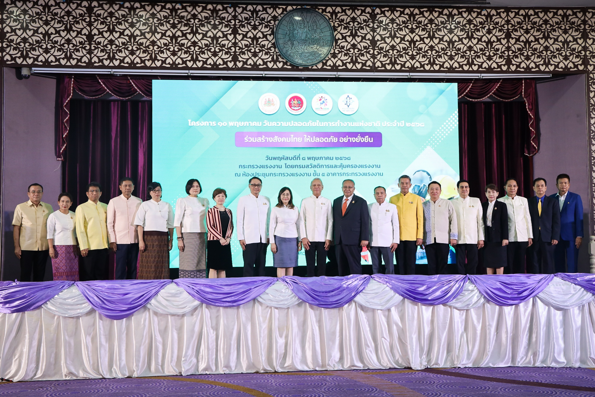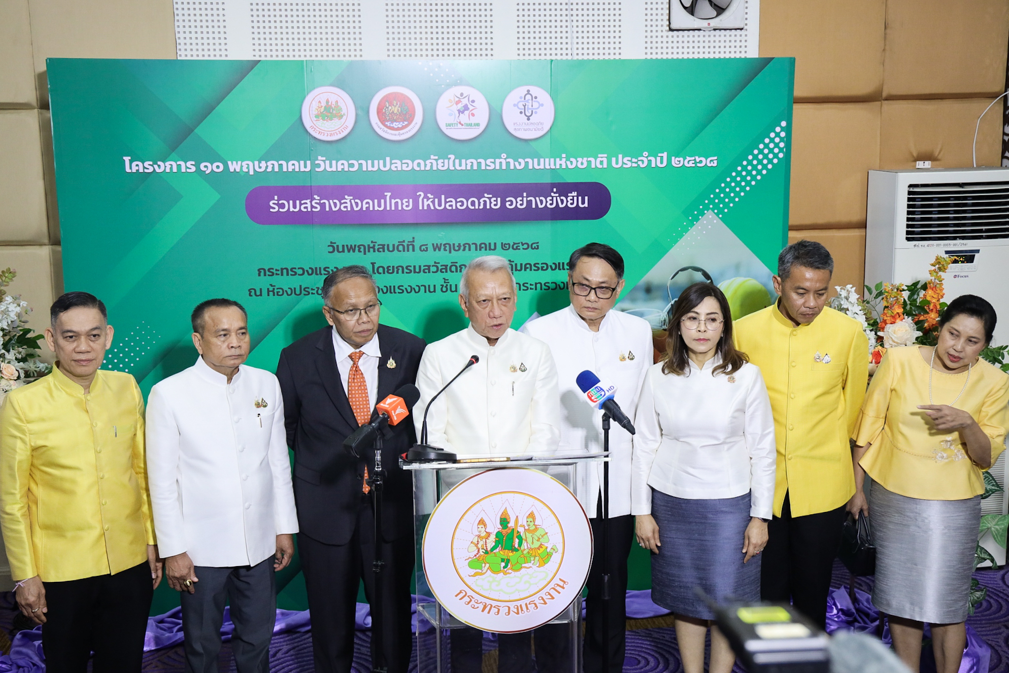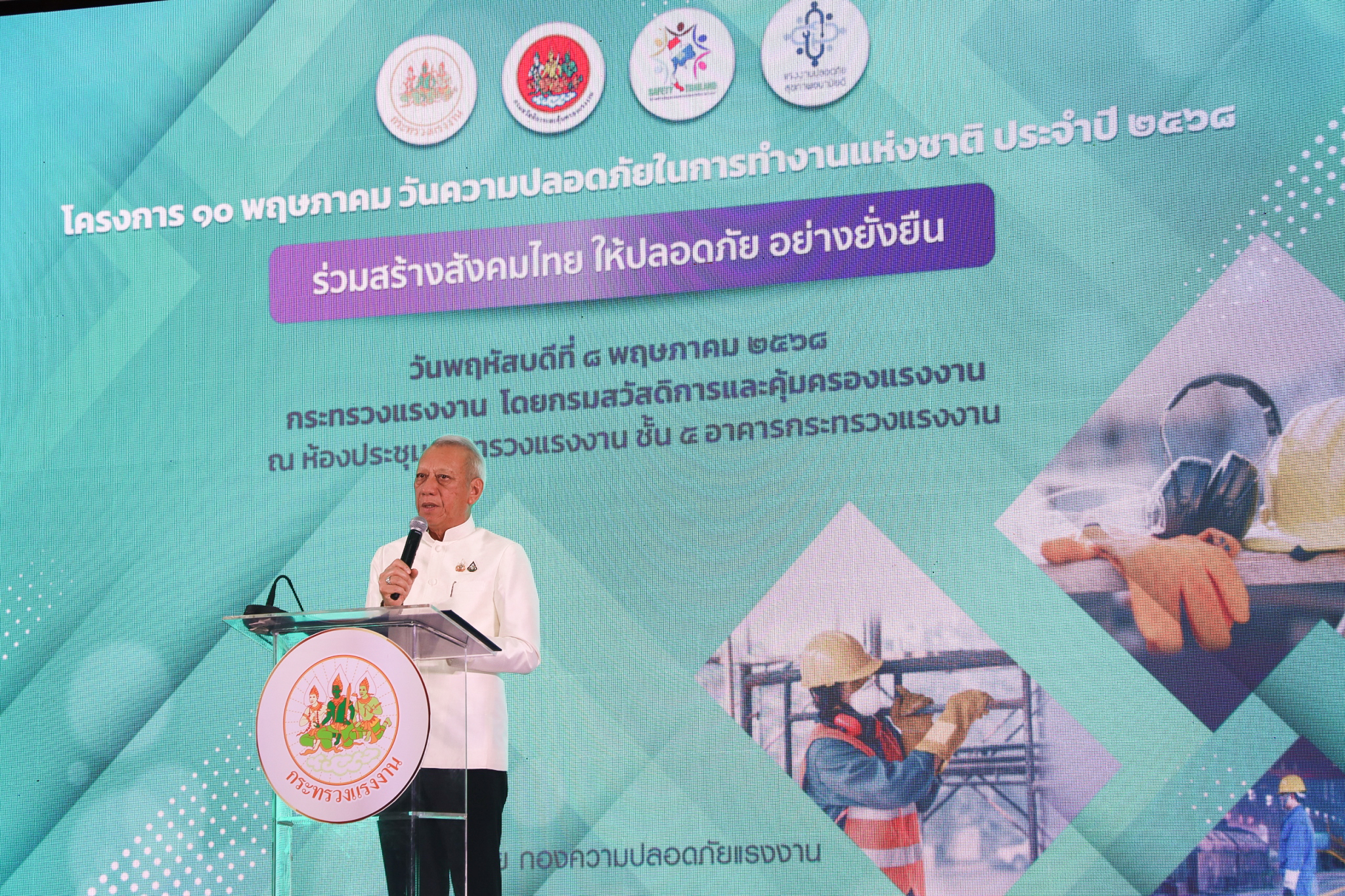 May 8, 2025 – Mr. Phiphat Ratchakitprakarn, Minister of Labour, presided over the opening ceremony of the “National Safety at Work Day” 2025 at the Ministry of Labour’s 5th floor conference hall. Also in attendance were Mr. Siraphop Duangsodsri, Assistant to the Labour Minister, Mr. Aree Krainara, the Secretariat to the Labour Minister, Mr. Phuchong Worasri, assigned to the Office of the Prime Minister and currently serving at the Ministry of Labour, Ms. Bubpha Rueangsud, Deputy Permanent Secretary of Labour, Ms. Bunyawee Khaipan, the Ministry of Labour’s Chief Inspector-General, Mr. Pichet Thongphan, Ms. Kanchana Poonkaew, Acting Second Lieutenant Somsak Promdam, Ms. Jirapa Boonrat, the Ministry of Labour’s Inspector Generals, Mr. Krirkkrai Nasomyont, Legal Advisor, Ms. Kornjirat Phongchanthorn, Assistant to the Permanent Secretary of Labour, and the Ministry of Labour’s executives. There were over 300 participants, including representatives from the ILO, public and private sectors, labor groups, students, and safety networks from across the country. The occasion took place at the Ministry of Labour’s conference room on the 5th floor.