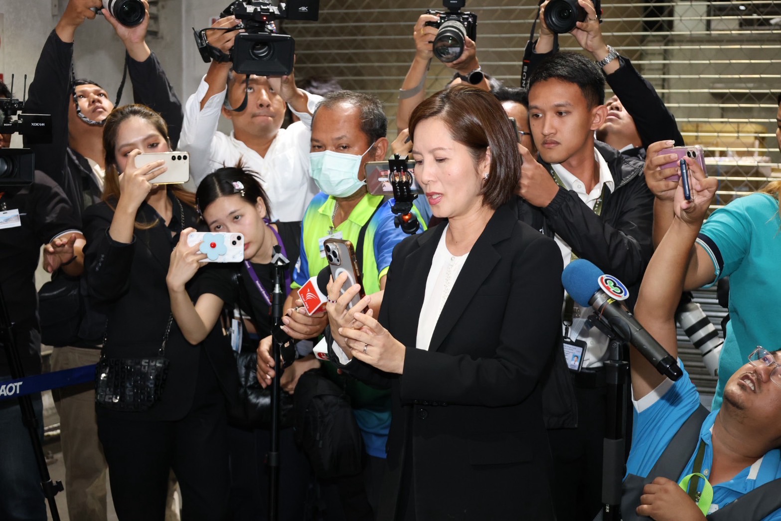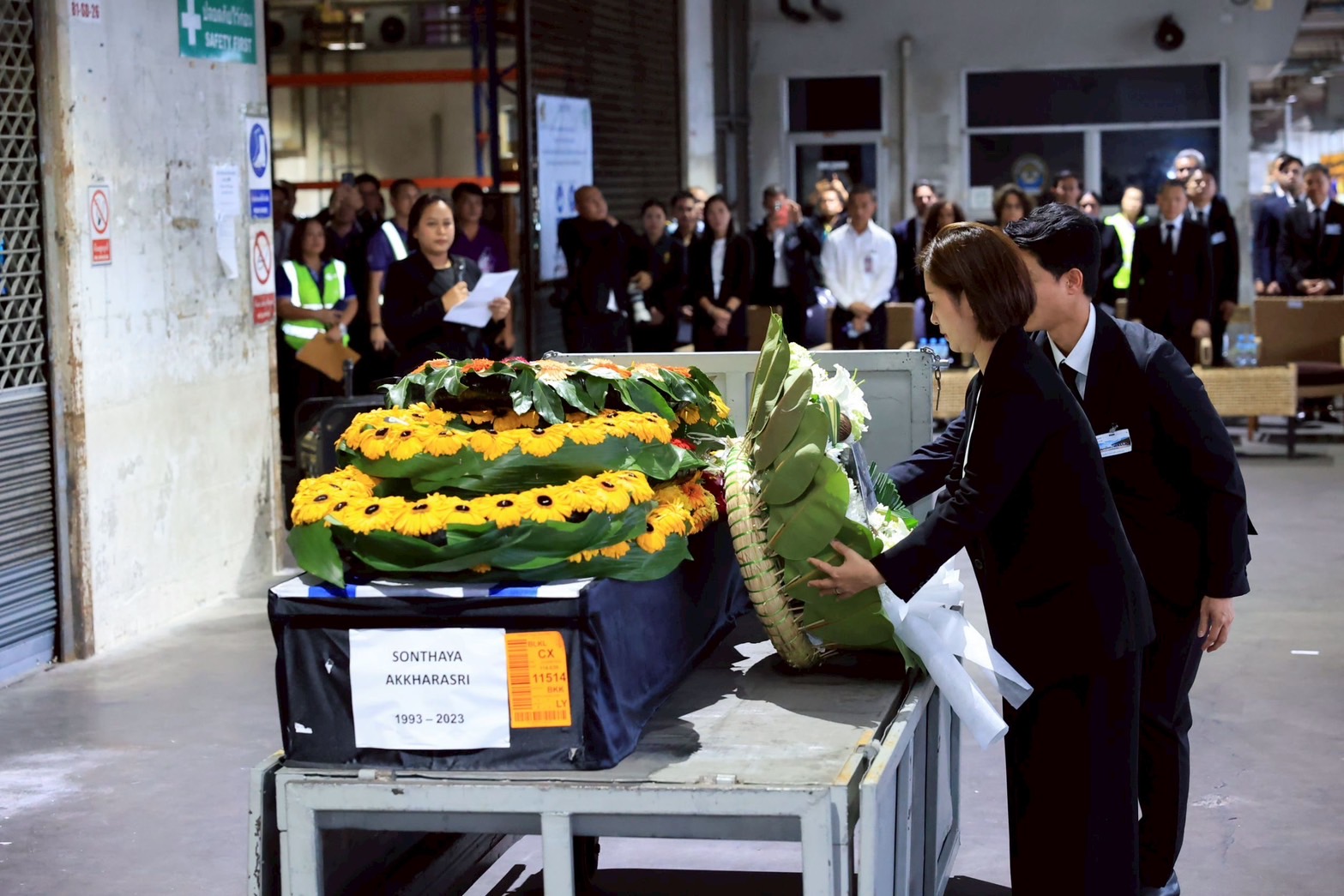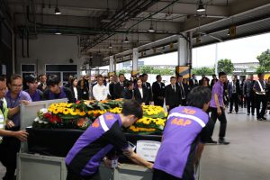 October 23, 2025, 16.45 hours, Free Zone Office Building, Suvarnabhumi Airport – Ms. Trinuch Thienthong, Minister of Labour, together with senior executives from the Ministry of Labour, representatives from the Ministry of Foreign Affairs, and H.E. Dr Alona Fisher-Kamm, Ambassador of Israel to Thailand, attended the ceremony to receive the body of Mr. Sonthaya Akkrasri, a Thai worker who lost his life in Israel during the Israel–Hamas conflict, after being held hostage since October 2023. Upon arrival at the Free Zone area in Suvarnabhumi Airport, Ms. Trinuch, along with her delegation, representatives from the Ministry of Foreign Affairs, and H.E. Dr Alona Fisher-Kamm, Ambassador of Israel to Thailand, entered the Suvarnabhumi Airport cargo terminal to receive the remains.