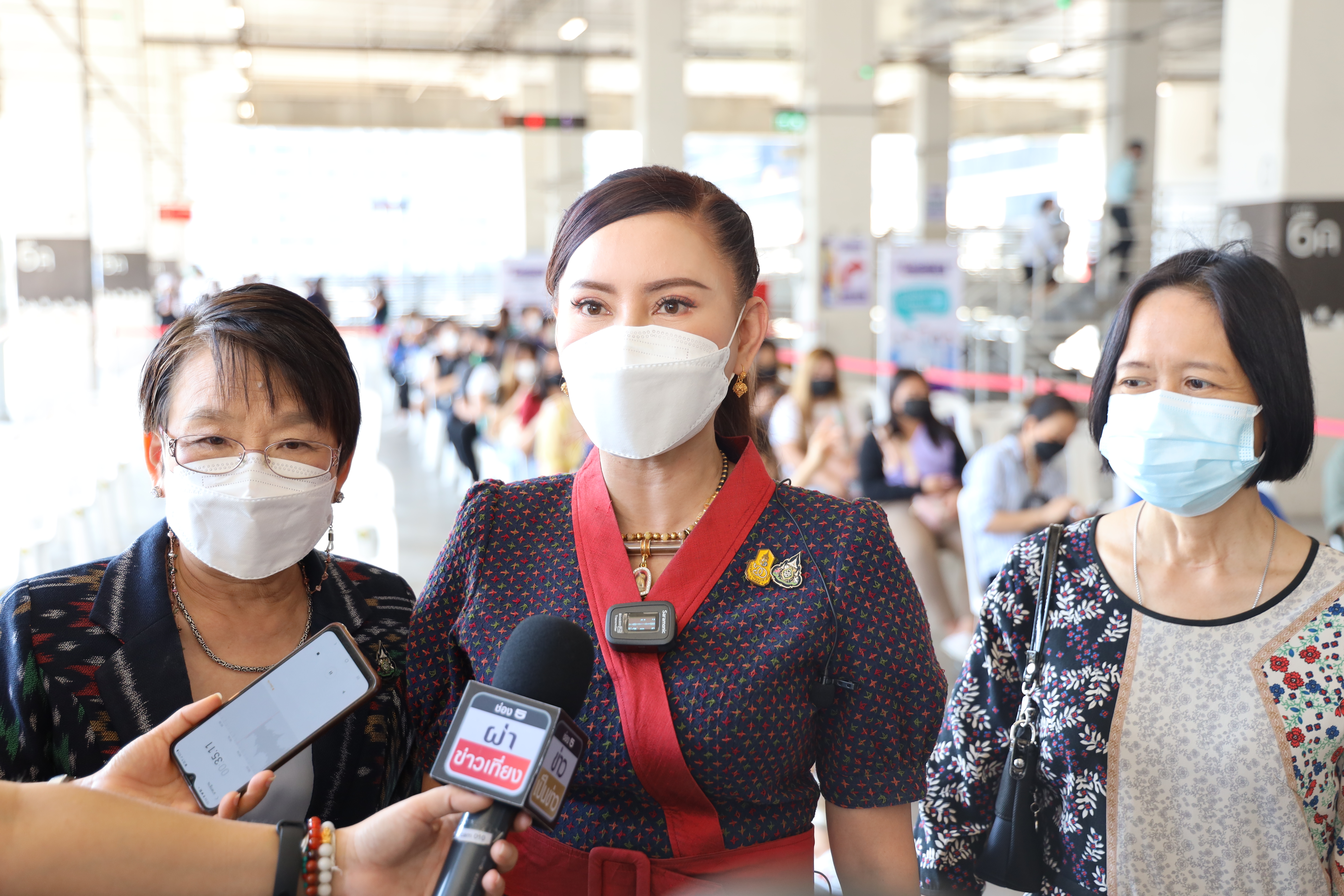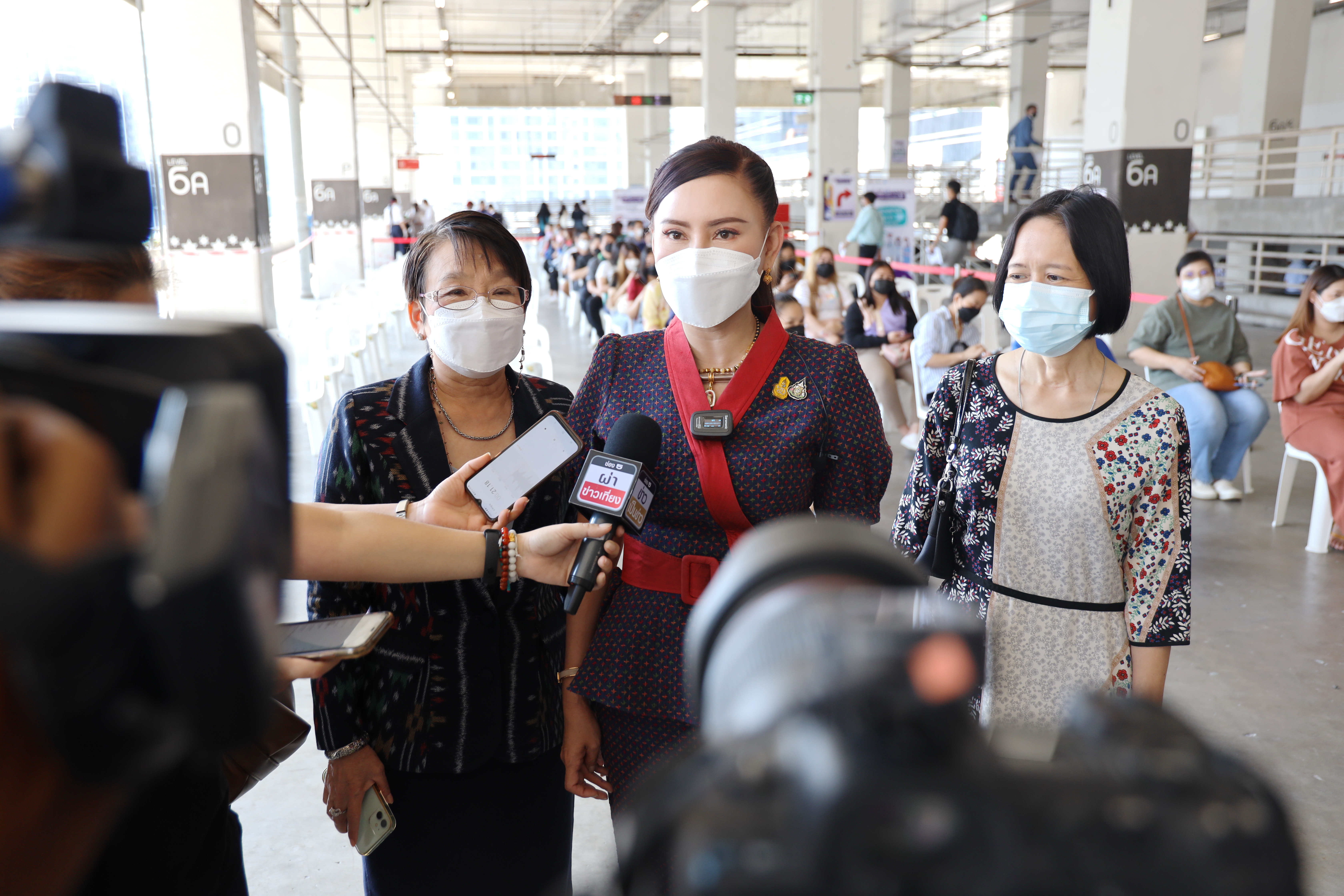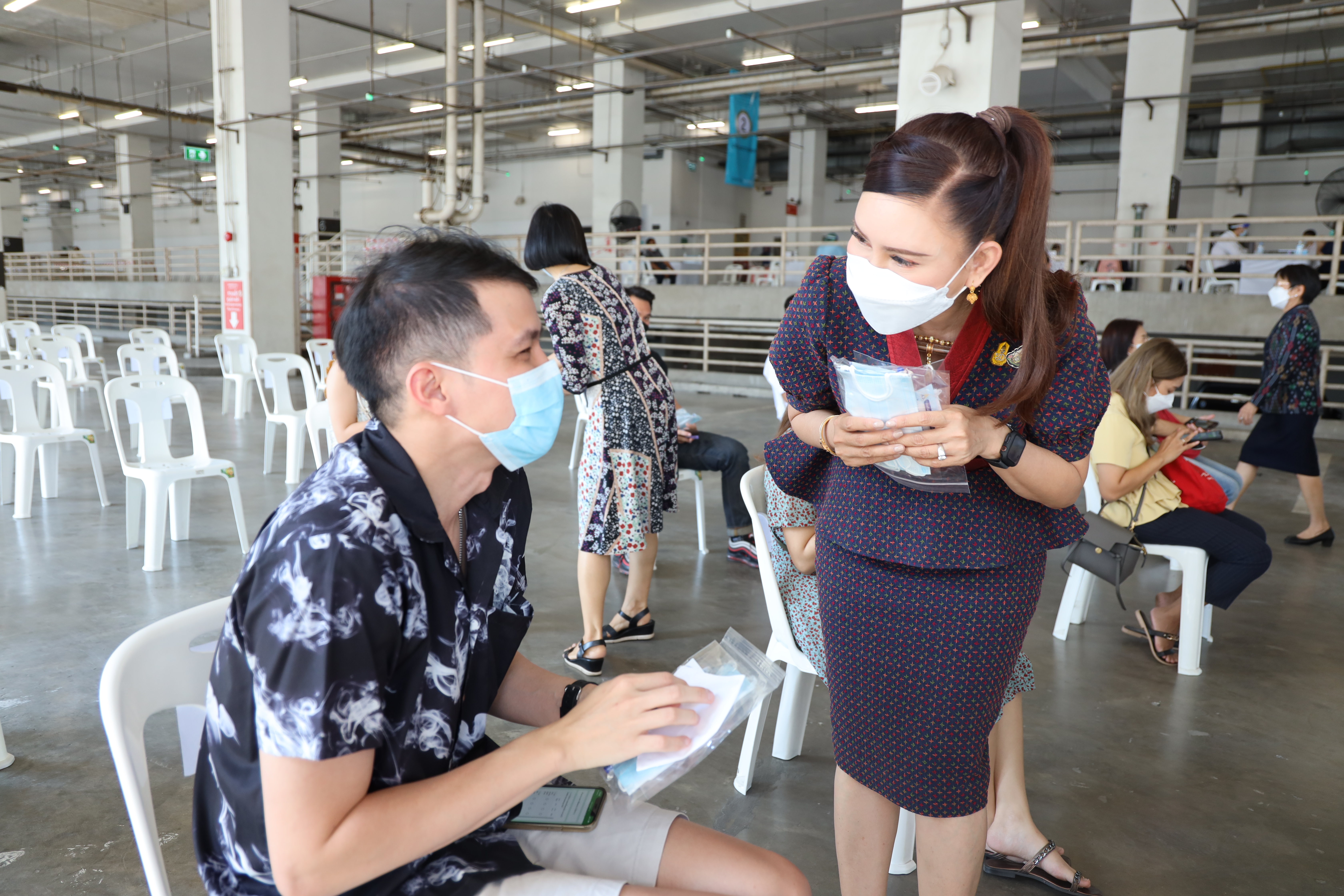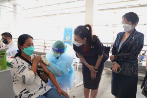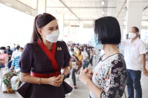 On January 18, 2022, Labour Minister Mr. Suchart Chomklin assigned the Labour Minister’s Advisor, Mrs. Thiwalrat Angkinan, to visit the area and encourage insured persons under Section 33 to get their third jab (booster dose) of the COVID-19 vaccine at Section 33 Insured Persons Vaccination Center, Central Rama 9 Shopping Center, Ratchadaphisek Road, Huai Khwang District, Bangkok. The Ministry of Labour’s Spokesperson (on politics), Mrs. Theanrat Nawamawat, also joined the occasion. Mrs. Thiwalrat said that the government under the leadership of Prime Minister and Minister of Defense General Prayuth Chan-ocha, and Deputy Prime Minister General Prawit Wongsuwan, who oversees the Ministry of Labour, is concerned about the health and safety of workers and insured persons. As such, they have intensified policies to contain the Omicron strain of COVID-19 and urged all agencies to be fully vigilant and provide important measures to provide booster doses to build immunity and reduce the severity of the virus. Today, the Labour Minister, Mr. Suchart Chomklin, assigned her and the Ministry of Labour’s Spokesperson (on politics) to visit COVID-19 Vaccination Center for booster doses at the Central Rama 9 Shopping Center, Ratchadaphisek Road. The vaccination center is under the responsibility of the Bangkok Social Security Office Area 3. The number of insured persons who need a third dose of vaccinations is 175,086. Medical staff and nurses from Paolo Hospital Chokchai 4 are vaccination providers. The facility can vaccinate 1,200 people per day. The third dose vaccination services will be open from January 17 to March 31, 2022, for a total of 52 working days, excluding Saturdays, Sundays, and public holidays.