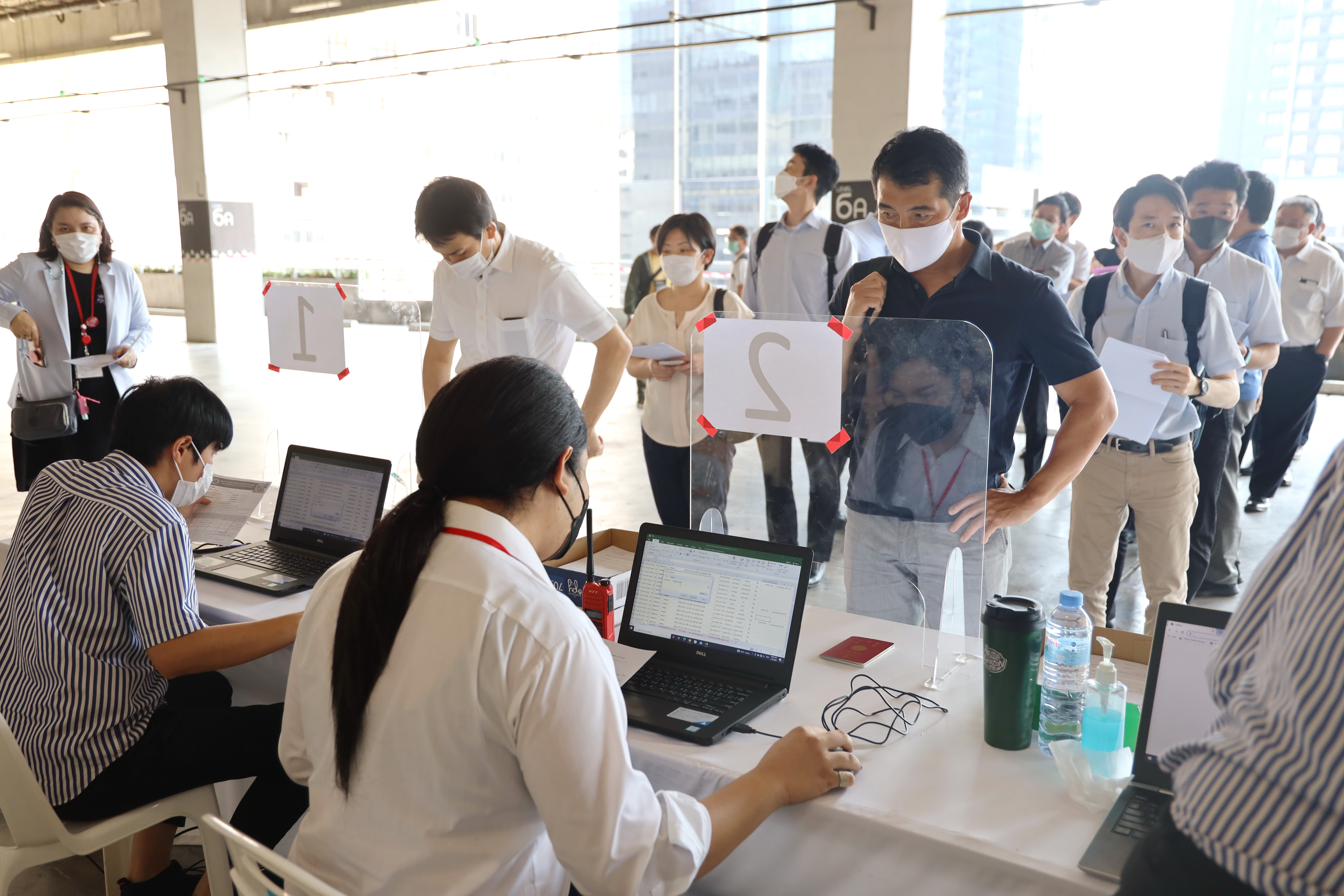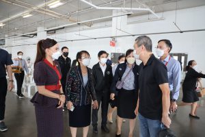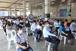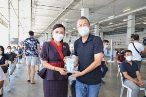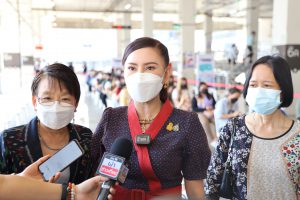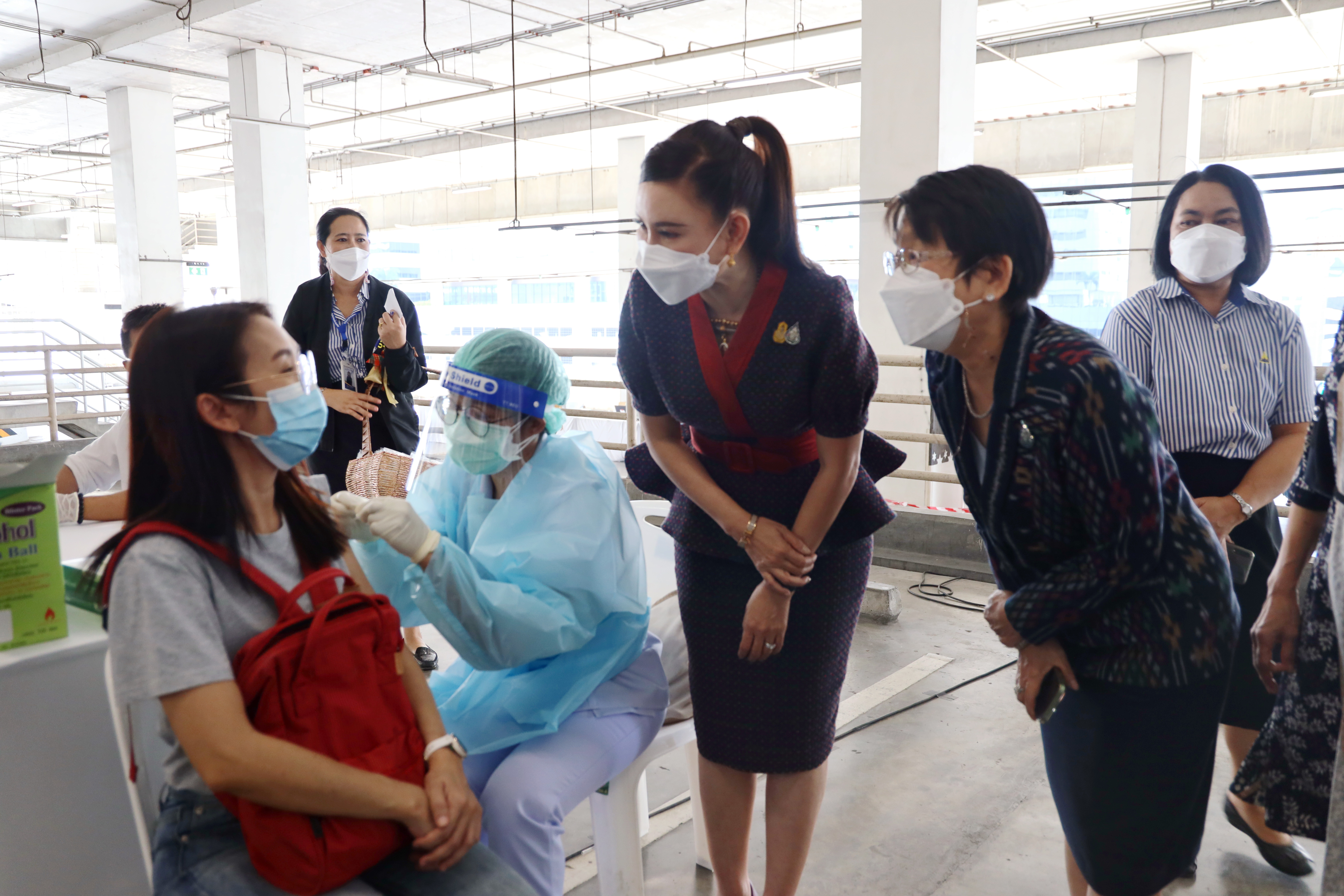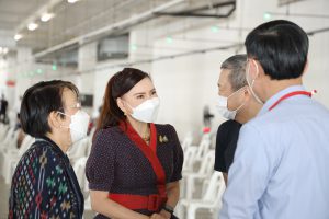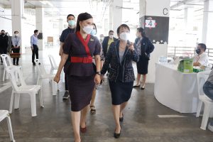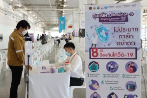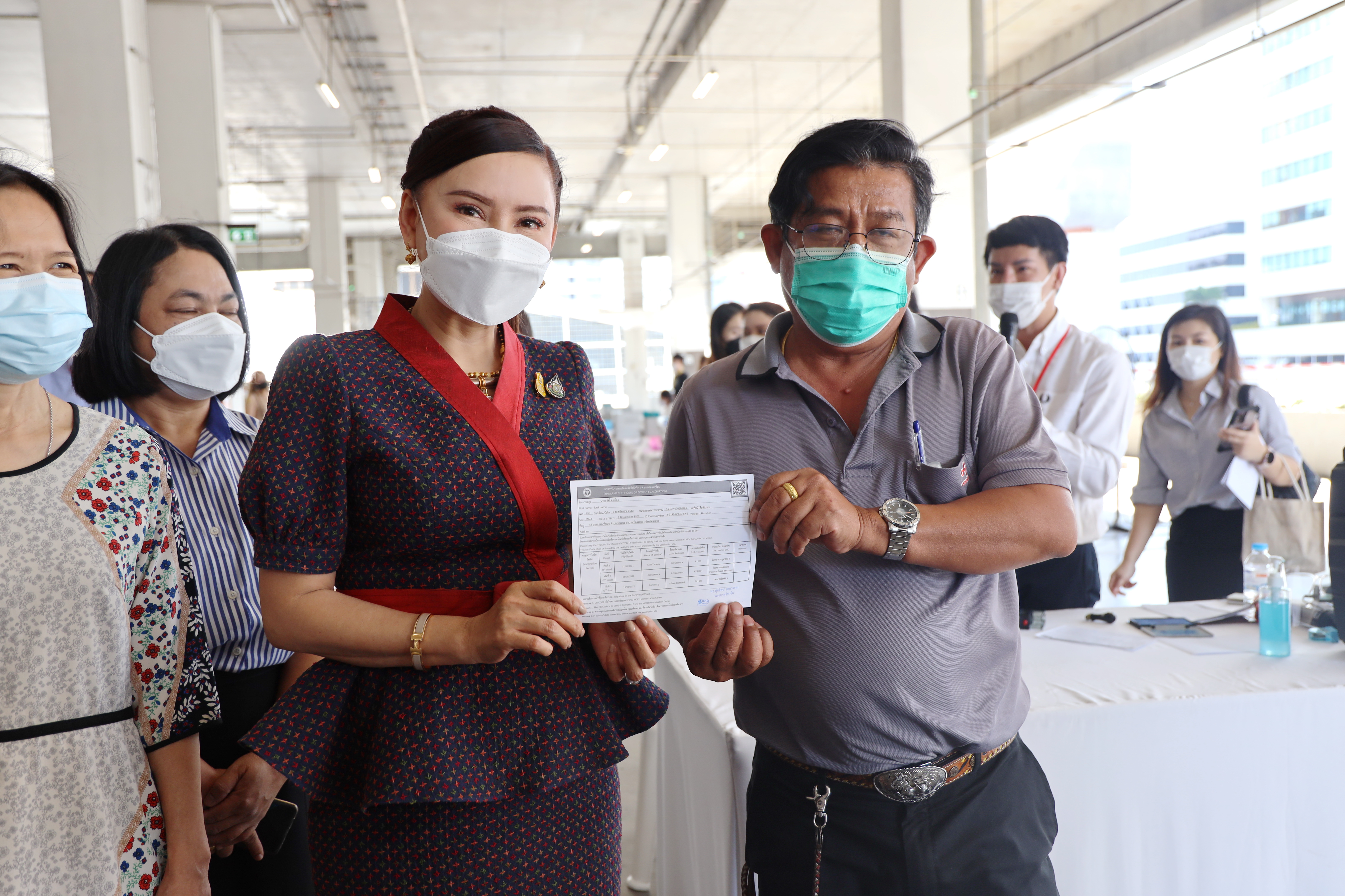 On January 18, 2022, Labour Minister Mr. Suchart Chomklin assigned the Labour Minister’s Advisor, Mrs. Thiwalrat Angkinan, to visit the area and encourage insured persons under Section 33 to get their third jab (booster dose) of the COVID-19 vaccine at Section 33 Insured Persons Vaccination Center, Central Rama 9 Shopping Center, Ratchadaphisek Road, Huai Khwang District, Bangkok. The Ministry of Labour’s Spokesperson (on politics), Mrs. Theanrat Nawamawat, also joined the occasion. Mrs. Thiwalrat said that the government under the leadership of Prime Minister and Minister of Defense General Prayuth Chan-ocha, and Deputy Prime Minister General Prawit Wongsuwan, who oversees the Ministry of Labour, is concerned about the health and safety of workers and insured persons. As such, they have intensified policies to contain the Omicron strain of COVID-19 and urged all agencies to be fully vigilant and provide important measures to provide booster doses to build immunity and reduce the severity of the virus. Today, the Labour Minister, Mr. Suchart Chomklin, assigned her and the Ministry of Labour’s Spokesperson (on politics) to visit COVID-19 Vaccination Center for booster doses at the Central Rama 9 Shopping Center, Ratchadaphisek Road. The vaccination center is under the responsibility of the Bangkok Social Security Office Area 3. The number of insured persons who need a third dose of vaccinations is 175,086. Medical staff and nurses from Paolo Hospital Chokchai 4 are vaccination providers. The facility can vaccinate 1,200 people per day. The third dose vaccination services will be open from January 17 to March 31, 2022, for a total of 52 working days, excluding Saturdays, Sundays, and public holidays.