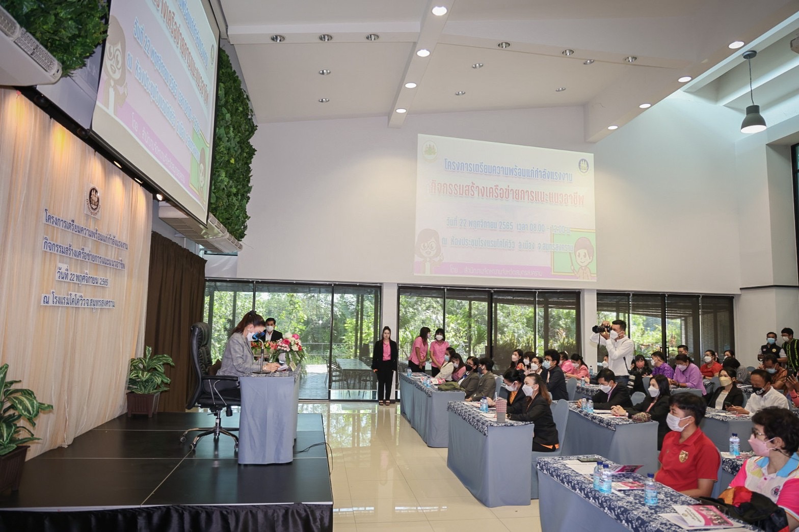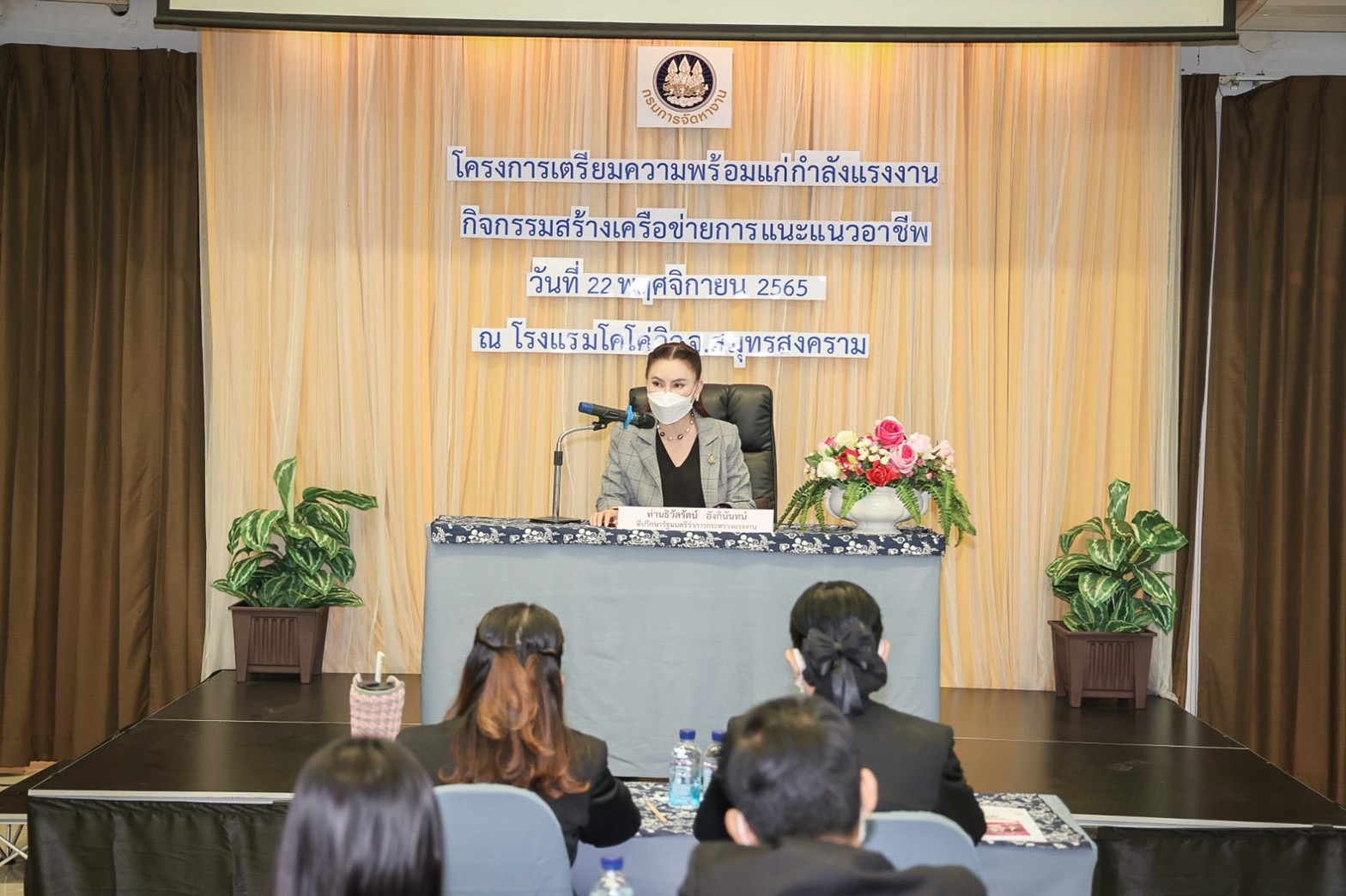 On November 22, 2022, the Labour Minister, Mr. Suchart Chomklin, assigned the Labour Minister’s Advisor, Mrs. Thiwalrat Angkinan, to chair the opening ceremony of the workshop on building a career guidance network and a meeting to clarify the vocational skill enhancement project for students not continuing studies after graduation in Samut Songkhram Province for 2023. School administrators, heads of government agencies under the Ministry of Labour in Samut Songkhram Province, and seminar participants gave a welcome at the Coco View Hotel, Mae Klong Subdistrict, Mueang District, Samut Songkhram Province.