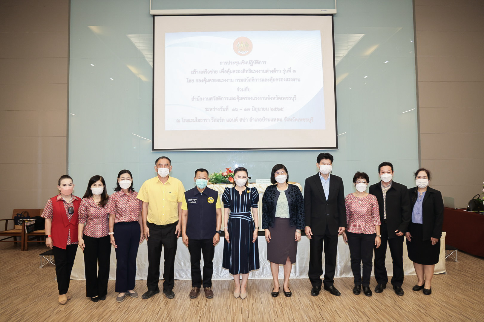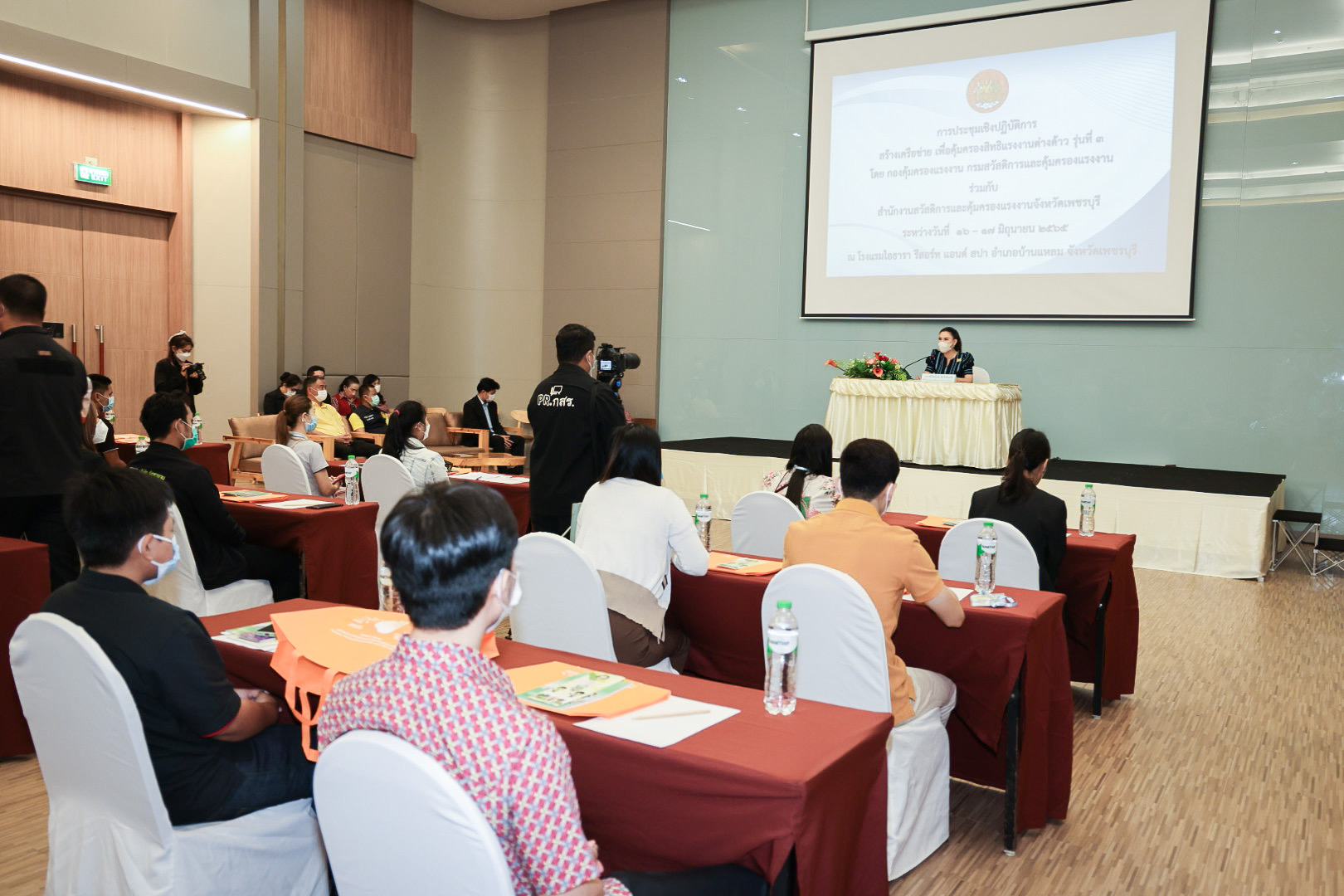 The Department of Labour Protection and Welfare’s (DLPW) Deputy Director-General Miss Kanjana Poonkaew added that in the 2022 fiscal year, the department has set up workshops to build networks to protect foreign workers in all six classes, with 50 people each. Two classes have been completed, and today, the third workshop was arranged at the I Tara Resort & Spa Hotel, Ban Laem District, Phetchaburi Province. There were 50 participants in the meeting, comprising representatives of business establishments, personnel officers, and language coordinators (interpreters) for Burmese, Laotian, and Cambodian migrant workers. The DLPW hopes trainees will learn and understand the law, rights, duties, welfare, and channels for properly exercising labour rights. This will lead to a strong network capable of performing duties to create a good quality of life for workers and coordinate with the government in a sustainable way.