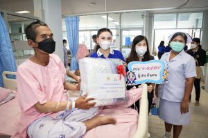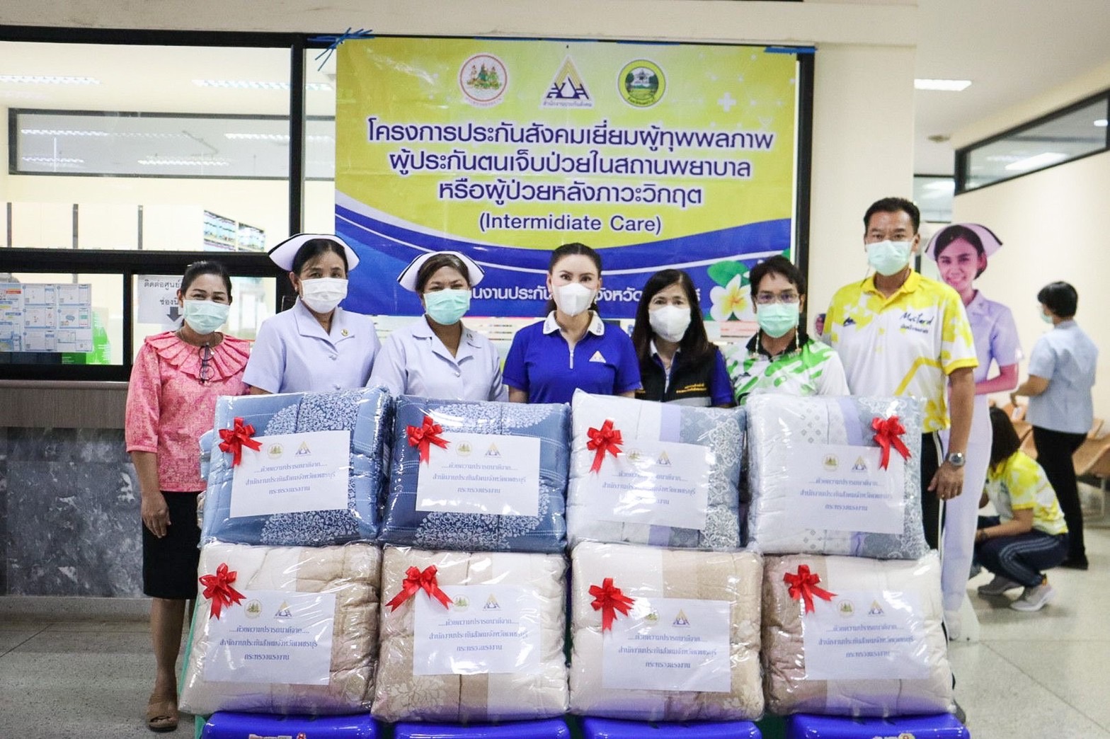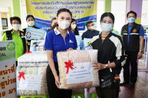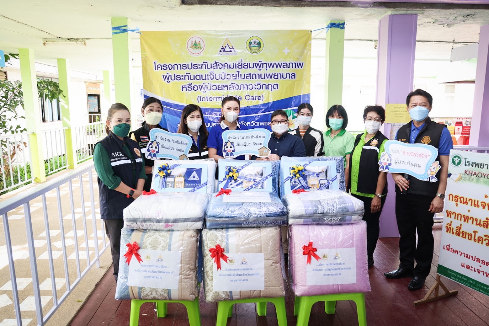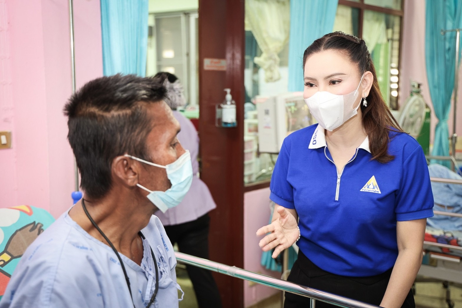On June 15, 2022, the Labour Minister, Mr. Suchart Chomklin assigned the Labour Minister’s Advisor, Mrs. Thiwalrat Angkinan visit the area to support and donate items to unwell insured persons in hospitals under the Social Security Scheme. They visited sick insured persons in the Intermediate Care unit to build morale and encouragement. The visits took place at the Khao Yoi Hospital, Tha Yang Hospital, and Cha-am Hospital, which are hospitals in the Social Security Office’s network in Phetchaburi province. Phetchaburi Social Security Officer Mrs. Rassamee Sujato, Head of the Cha-am Branch Ms. Sukanya Siangwan, heads of government agencies under the Ministry of Labour in Phetchaburi Province, Director of Khao Yoi Hospital, Dr. Orawan Tavetiphong, Director of Cha-am Hospital, Dr. Prapasit Chomchuen, and staff of Thayang Hospital gave a welcome.