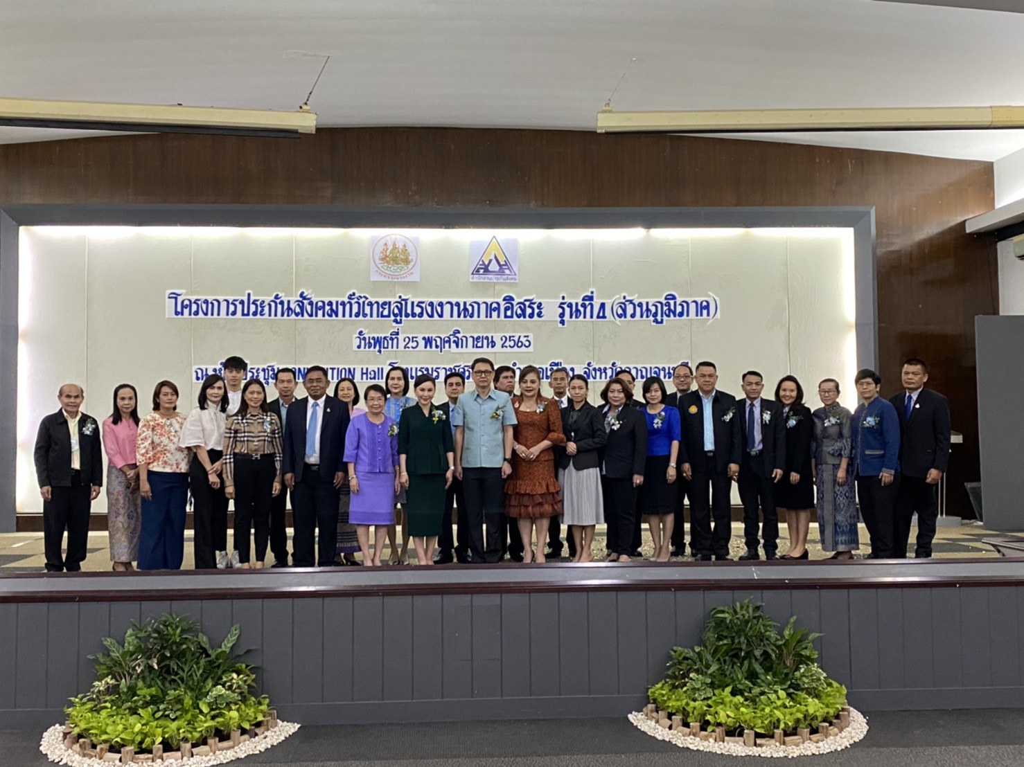 On November 25, 2020, Labour Minister Mr. Suchart Chomklin assigned Advisor to the Labour Minister Mrs. Thiwalrat Angkinan presided over the opening ceremony of the social security program across Thailand to the 4th generation of independent workers, at the Convention Hall on the 1st Floor, Ratchasupamit Hotel, Muang, Kanchanaburi. Advisory Board Member to the Labour Minister Mrs. Theanrat Navamawat also joined the occasion. The Social Security Office’s Secretary-General Mr. Tosapol Kritawongwiman gave a report, and Deputy Governor of Kanchanaburi province Lieutenant Colonel Tosapol Chaiyakomin gave a welcoming. The Advisor to the Labour Minister said that the government under the leadership of Prime Minister General Prayuth Chan-ocha has focused on strengthening a comprehensive and suitable social security for people of all ages to support an aging society’s transition. The Ministry of Labour, under the supervision of Deputy Prime Minister General Prawit Wongsuwan, has given priority to workers in the independent labour sector or the informal sector to guarantee social security. Today, Labour Minister Mr. Suchart Chomklin, therefore, assigned her to meet with the independent or informal workers of Kanchanaburi province because everyone is an important player in driving the country’s development; if the informal workers have stability in their lives, they will rise to confidence in their work and life, which would have a positive effect on the economy and generate income for the country, promoting prosperity to the nation.