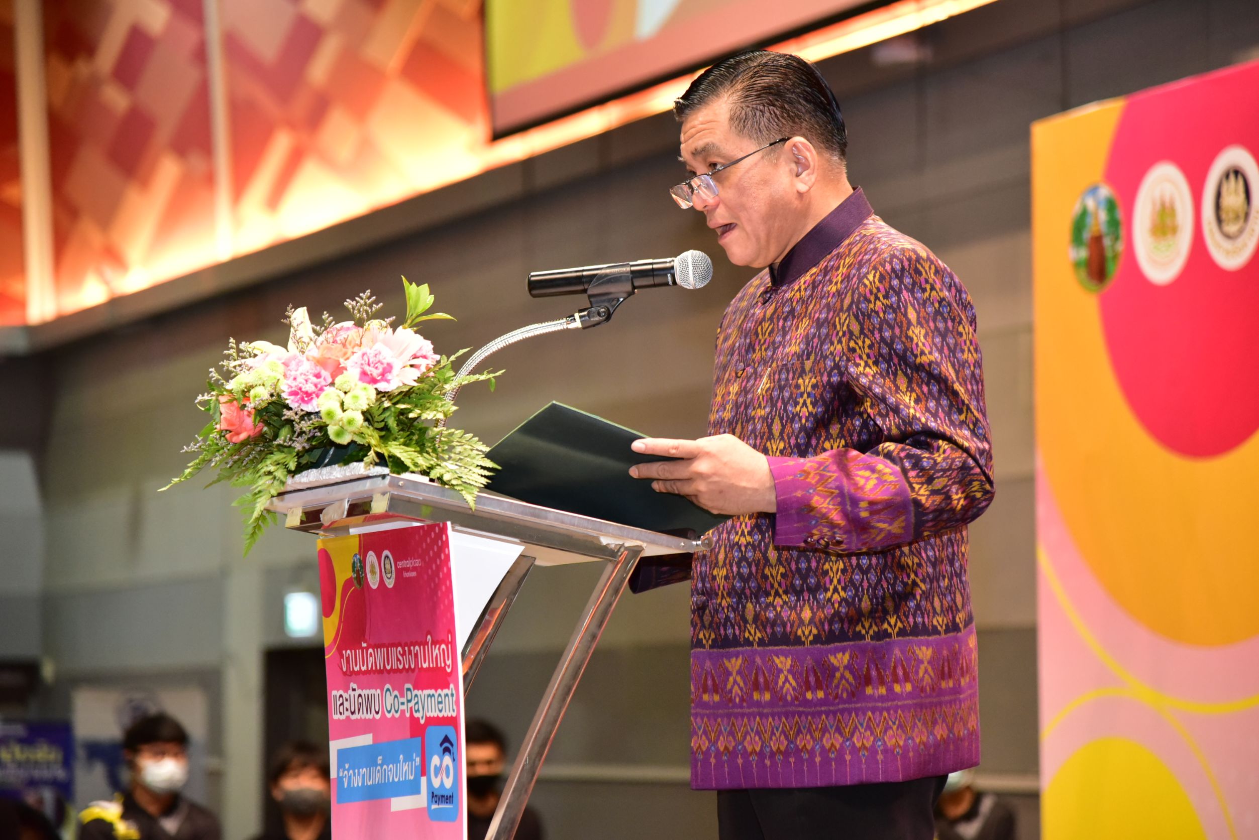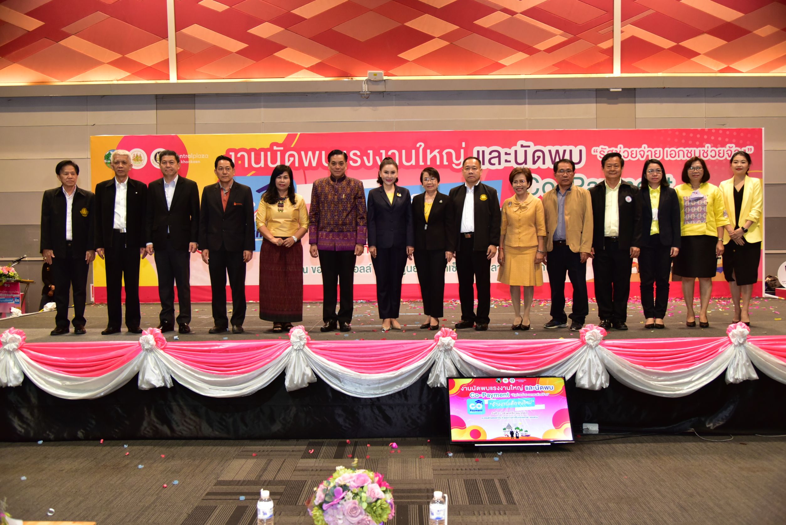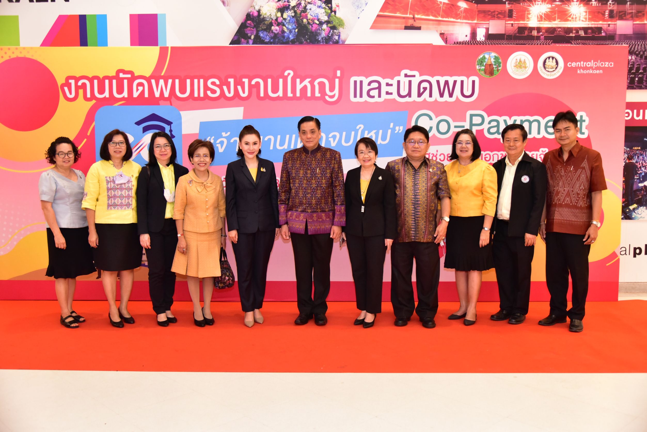 Labour Minister Mr. Suchart Chomklin assigned Advisor to the Labour Minister Mrs. Thiwalrat Angkinan to Khon Kaen, to commence a big labour meeting event and meet with Co-Payment “hiring new graduates” with 3,295 positions available.