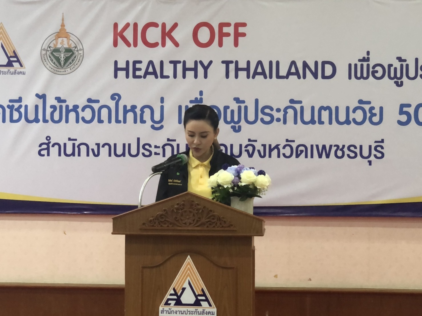 Labour Minister Mr. Suchart Chomklin assigned his Advisor to observe the influenza vaccine service to insured persons at King Mongkut’s Hospital, Petchburi. The initiative aims to promote health and disease prevention for people at risk, aged 50 years and up, starting on October 15 at social security network hospitals across the country.