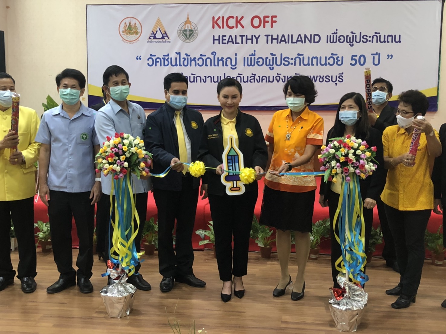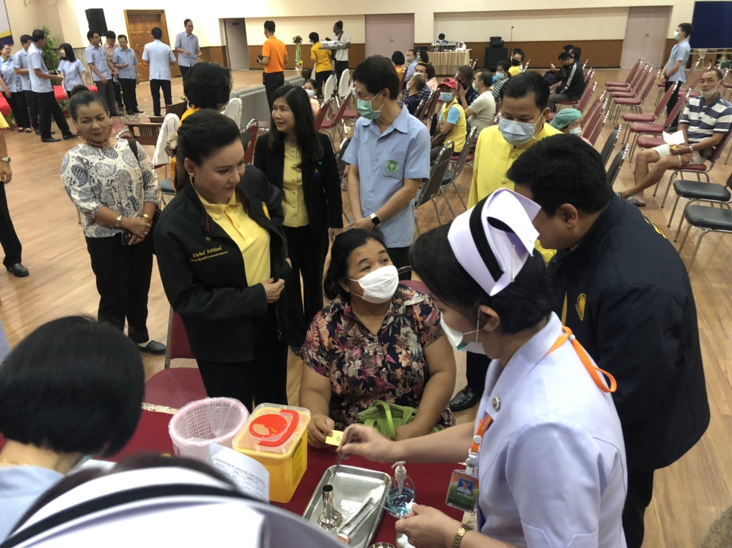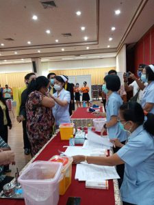 The Labour Minister’s Advisor said that the government, under the leadership of Prime Minister General Prayuth Chan-ocha, is concerned for the health of the people, especially during the Covid-19 pandemic. Although Thailand has been able to control the pandemic, maintaining the good health of the people is very important. She said that today, Labour Minister Mr. Suchart Chomklin assigned her to pay a visit and encourage insured persons to get the flu vaccine. Each year, there are many people at risk for influenza. The Ministry of Labour’s Social Security Office, therefore, organized activities to promote health and disease prevention through influenza vaccinations (Healthy Thailand for the Insured) with the aim of creating immunity for insured persons to get influenza vaccines. This will, in turn, reduce the rate of illnesses among insured persons aged 50 years and over. The initiative focuses on protecting insurers who are important workers in the country by recognizing the importance of prevention rather than treatment and is an initiative by the Social Security Office in collaboration with King Mongkut’s Hospital, Petchburi.