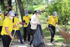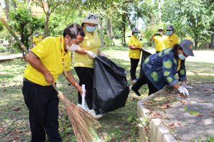 On July 25, 2022, the Labour Minister, Mr. Suchart Chomklin, assigned the Labour Minister’s Advisor, Mrs. Thiwalrat Angkinan, to preside over the project’s opening ceremony in honour of H.M. King Maha Vajiralongkorn Phra Vajiraklaochaoyuhua, for Phetchaburi provincial labour volunteers to develop their hometowns in 2022. The occasion took place at Wat Phra Roop, Chong Sakae Subdistrict, Mueang Phetchaburi District, Phetchaburi Province. She was also the chairperson of the Phetchaburi subdistrict labour volunteers meeting for July 2022 at the Samakkhitham Conference Room, Phetchaburi Monastic College. This activity was organized by the Phetchaburi Provincial Labour Office to honour His Majesty the King and to provide opportunities for labour volunteers, networks, and community partners from the public and private sectors and the general public to participate in community service. Cleaning activities were organized around the Wat Phra Roop area. Labour volunteers and networks, community leaders, local government organizations, and heads of government agencies under the Ministry of Labour in Phetchaburi Province joined the occasion.