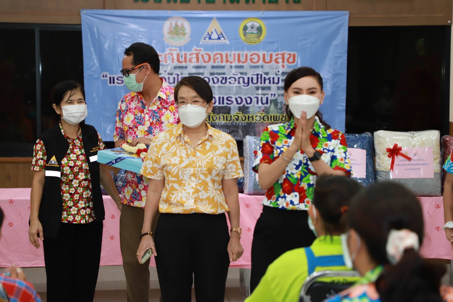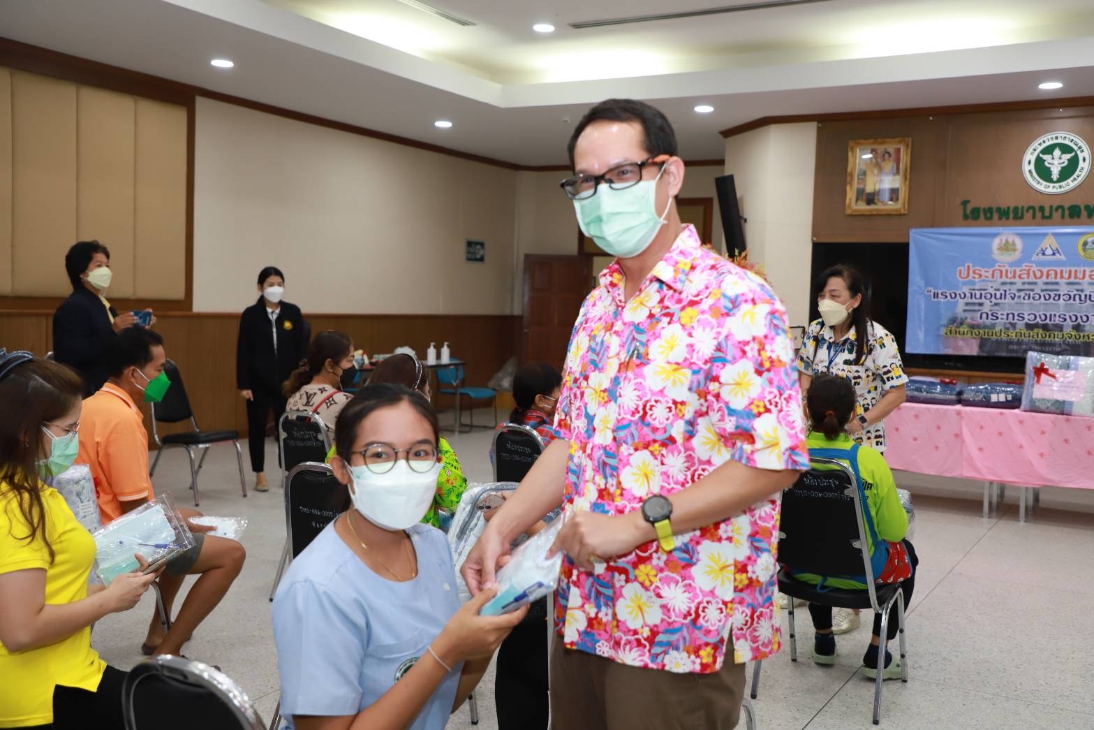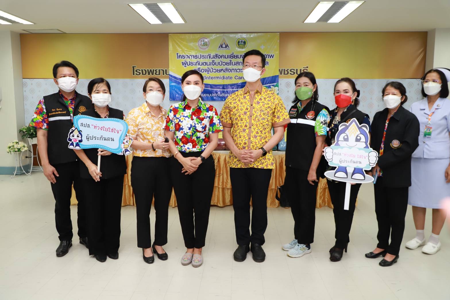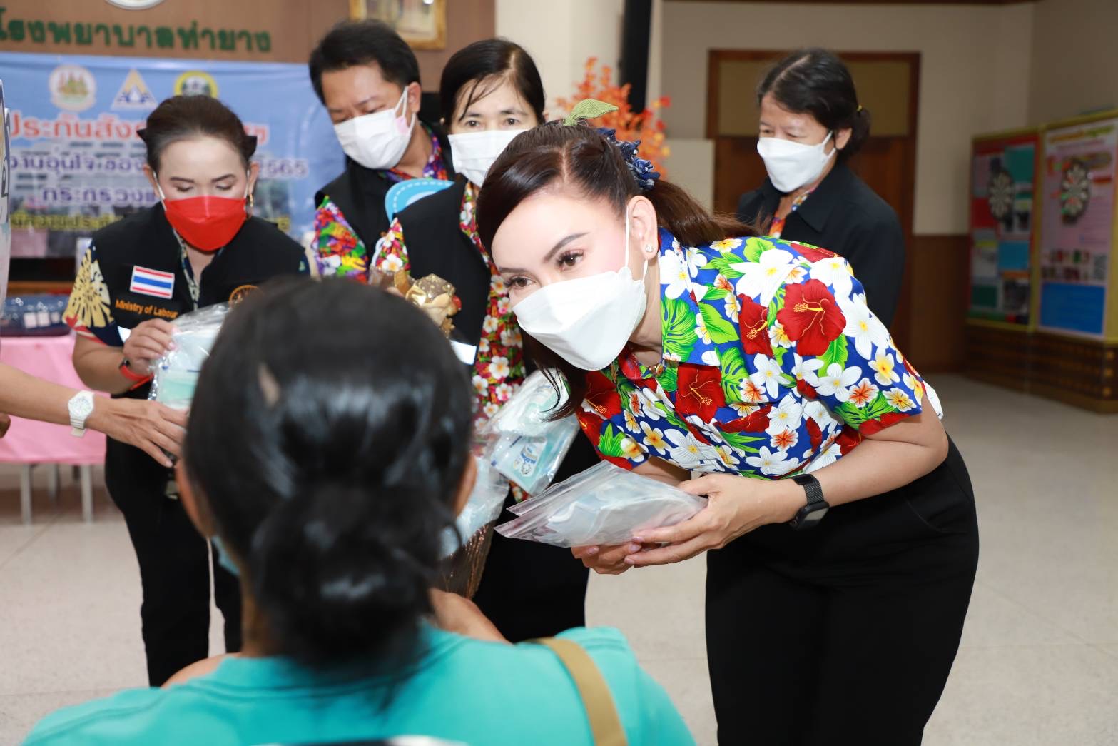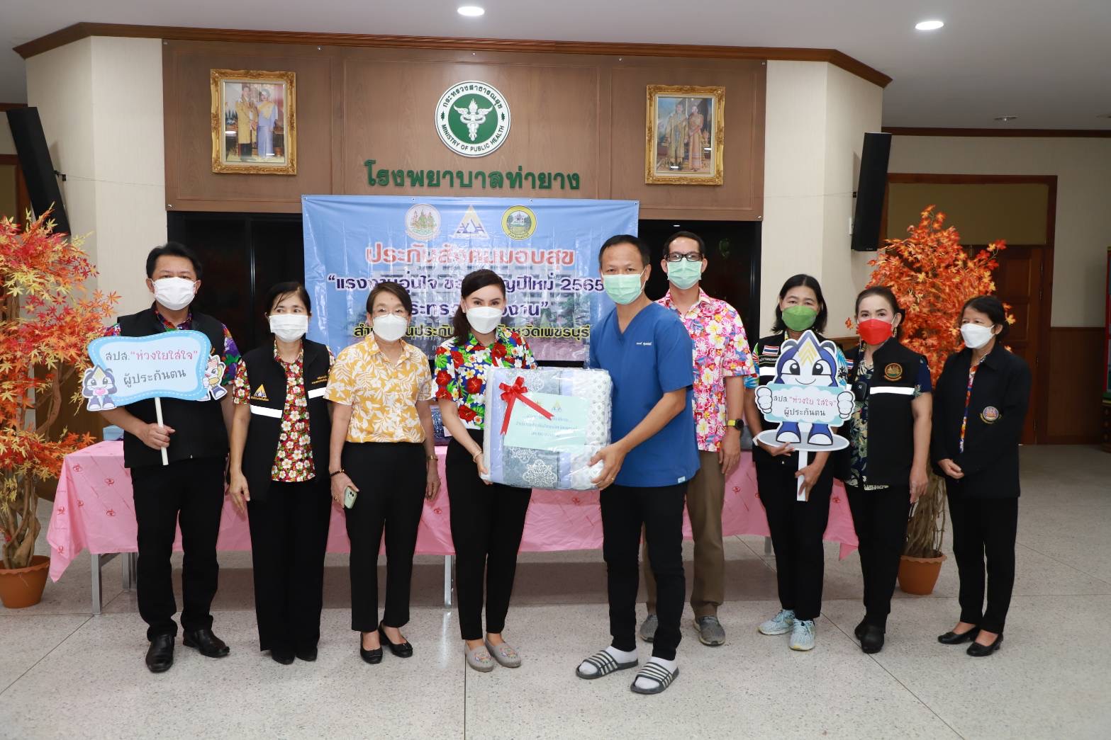 On April 11, 2022, Labour Minister Mr. Suchart Chomklin assigned the Labour Minister’s Advisor, Mrs. Thiwalrat Angkinan, the Ministry of Labour’s Spokesperson (on politics), Mrs. Theanrat Nawamawat, Phetchaburi Social Security Officer Mrs. Rasamee Sujto, and heads of government agencies under the Ministry of Labour in Phetchaburi Province to visit the area, give gifts and build morale for sick insured persons at the King Mongkut’s Hospital and Tha Yang Hospital. Dr. Pichet Huapancharoenkij, Director of King Mongkut’s Hospital in Phetchaburi Province, and Dr. Jatupoom Neelasri, Director of Thayang Hospital, and their teams, gave a welcoming.