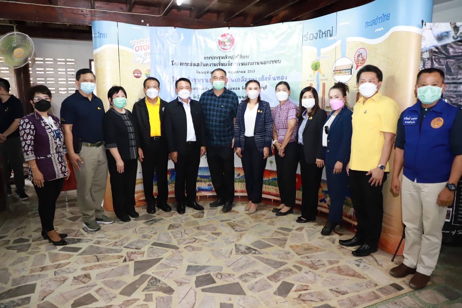 On May 26, 2022, at 13.00 hours, Labour Minister Mr. Suchart Chomklin assigned the Labour Minister’s Advisor, Mrs. Thiwalrat Angkinan, to preside over the opening ceremony of the workshop under the project to strengthen the informal workers association for the third class and to award employers of home workers in the activity to recruit and select outstanding informal worker networks for 2022. The Department of Labour Protection and Welfare’s Deputy Director-General, Mr. Decha Pruekphathanarak, and heads of government agencies under the Ministry of Labour in Phetchaburi Province participated in this occasion at the Golden Windmill Sea Salt Occupational Group Community Enterprise, Ban Laem District, Phetchaburi Province.