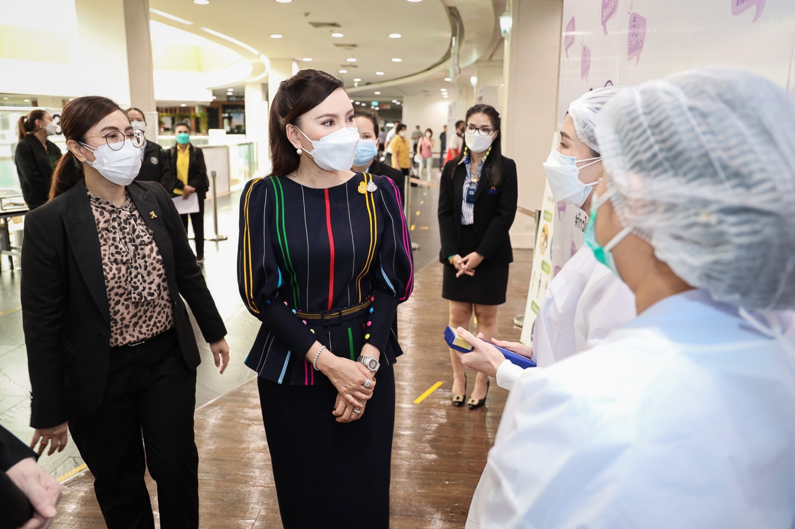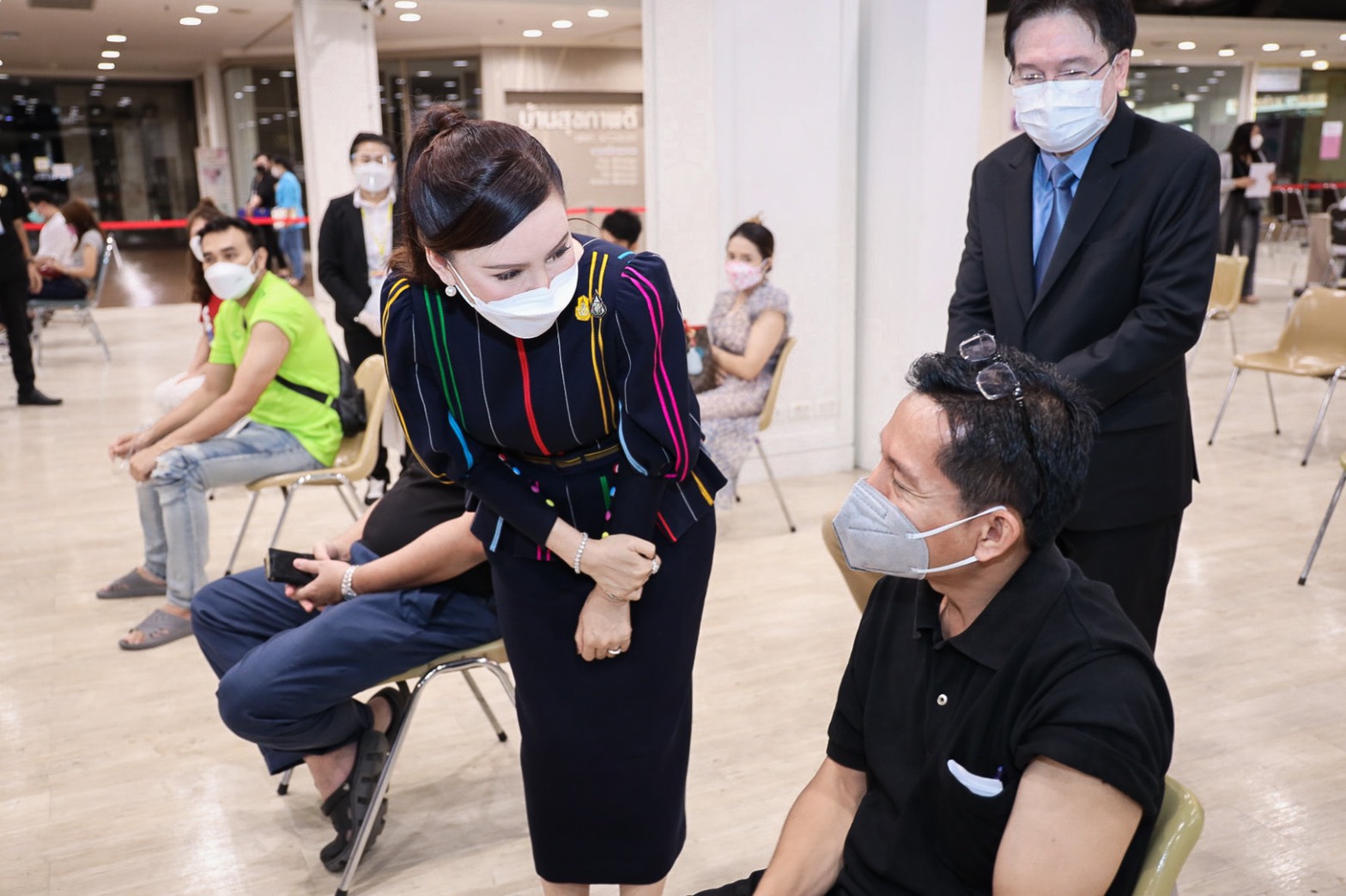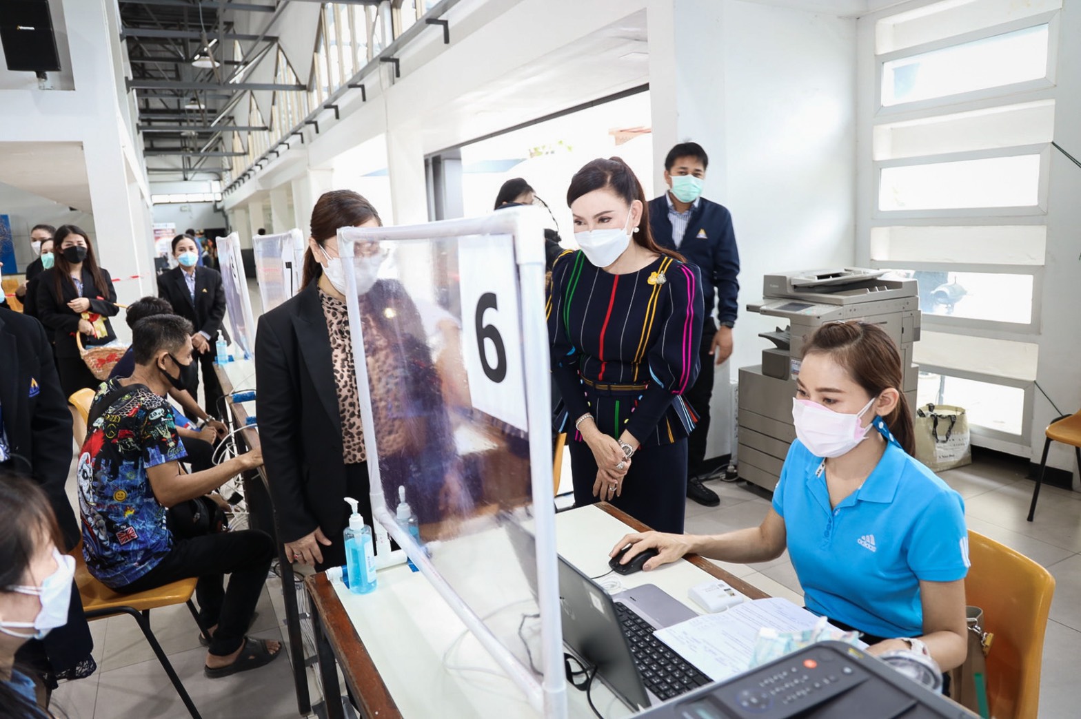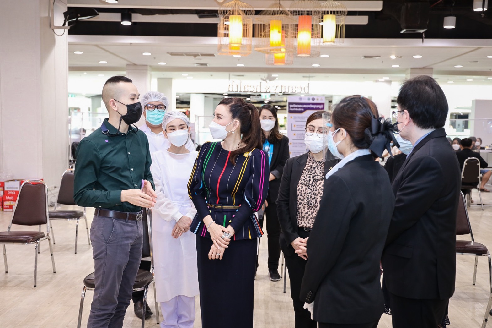 On August 25, 2021, Labour Minister Mr. Suchart Chomklin assigned the Ministry of Labour’s Advisor, Mrs. Thiwalrat Angkinan, and the Ministry of Labour’s Inspector-General, Ms. Bubpha Rueangsud, to present a certificate of appreciation to the private sector for their contribution in providing facilities and hospitals in the social security network for supporting medical personnel in the COVID-19 vaccinations to Section 33 insured persons. The occasion took place at Bangkok Bank Club, Paradise Park Shopping Center, and Central Bangna Shopping Center. Mrs. Thiwalrat said that the government under the leadership of Prime Minister and Minister of Defense General Prayuth Chan-ocha, and Deputy Prime Minister General Prawit Wongsuwan, who oversees the Ministry of Labour, is concerned about the workforce and the general public amid the COVID-19 situation, promoting vaccinations as a national agenda. The Labour Minister assigned the Social Security Office to work with the Ministry of Interior, the Bangkok Metropolitan Administration, the Ministry of Public Health by the National Health Security Office (NHSO), the Ministry of Finance by Krung Thai Bank, and public and private social security networked hospitals to provide COVID-19 vaccinations to insured persons. The initiative aims to control the outbreak’s spread from spreading to a wide area in factories and establishments.