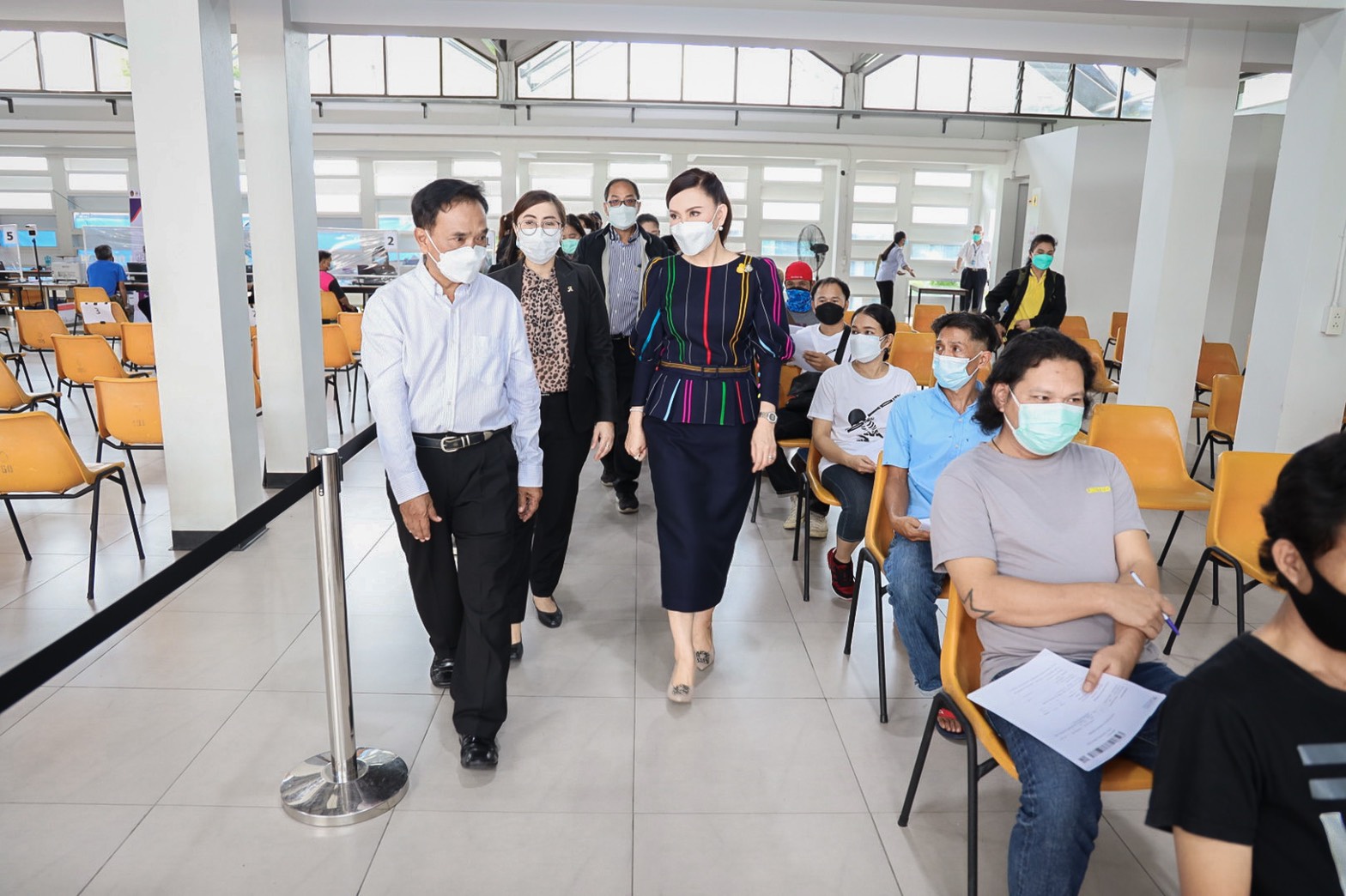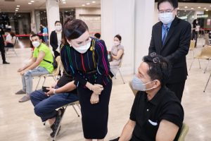 “Labour Minister Mr. Suchart Chomklin assigned my team and me to visit the vaccination services for Section 33 insured persons and to present a plaque of appreciation to thank the private sector executives. The visit also encouraged medical personnel to provide COVID-19 vaccinations to Section 33 insured persons, which is one of the Ministry of Labour’s measures in prevention and treatment, by expediting vaccinations to insured people following government policy to control the spread of COVID-19 and build immunity among workers for business to move forward,” concluded Mrs. Thiwalrat.