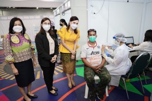 “Labour Minister Mr. Suchart Chomklin assigned my team and me to visit the vaccination services for Section 33 insured persons and to present a plaque of appreciation to thank the private sector executives. The visit also encouraged medical personnel to provide COVID-19 vaccinations to Section 33 insured persons, which is one of the Ministry of Labour’s measures in prevention and treatment, by expediting vaccinations to insured people following government policy to control the spread of COVID-19 and build immunity among workers for business to move forward,” concluded Mrs. Thiwalrat.