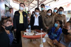 Then they visited, gave words of encouragement, and followed up on the performance of the informal workers, the “Model Fishing Boat Craft Group.” They were welcomed by Mr. Chatchawan Chaosamut, the President of the Group, and 15 members at the Model Fishing Boat Craft Learning Center, No. 65/4 Moo 5, Bang Ya Phraek, Muang Samut Sakhon, Samut Sakhon. The said group was established in July 2011 by joining a group of 7 boat lovers to set up a wooden model fishing boat production group as an additional career. They made fishing boats, trawlers, fishing nets, and local fishing boats. Each ship takes about 10-14 days and sells at 3,000-4,000 Baht each. It has currently upgraded to a learning center in the field of intellectual identity to develop into a career by transmitting knowledge on the invention of a model fishing boat to interested groups such as the unemployed, the elderly, and the youths in the area. The departments under the Ministry of Labour in Samut Sakhon jointly organized an activity to promote career development, income, knowledge about safety and occupational health, and build social security. They have organized a 30-hour skill training course with members of the group. They have trained 20 people to provide knowledge about group management, access to funding, getting work to do at home, to promote one person with disabilities to be self-employed, and to provide information about occupational safety. The initiative also supports knowledge about the working environment, preventing hazards related to tools and occupational health, knowledge about changes at work, and social security benefits under Section 40, and other various options.