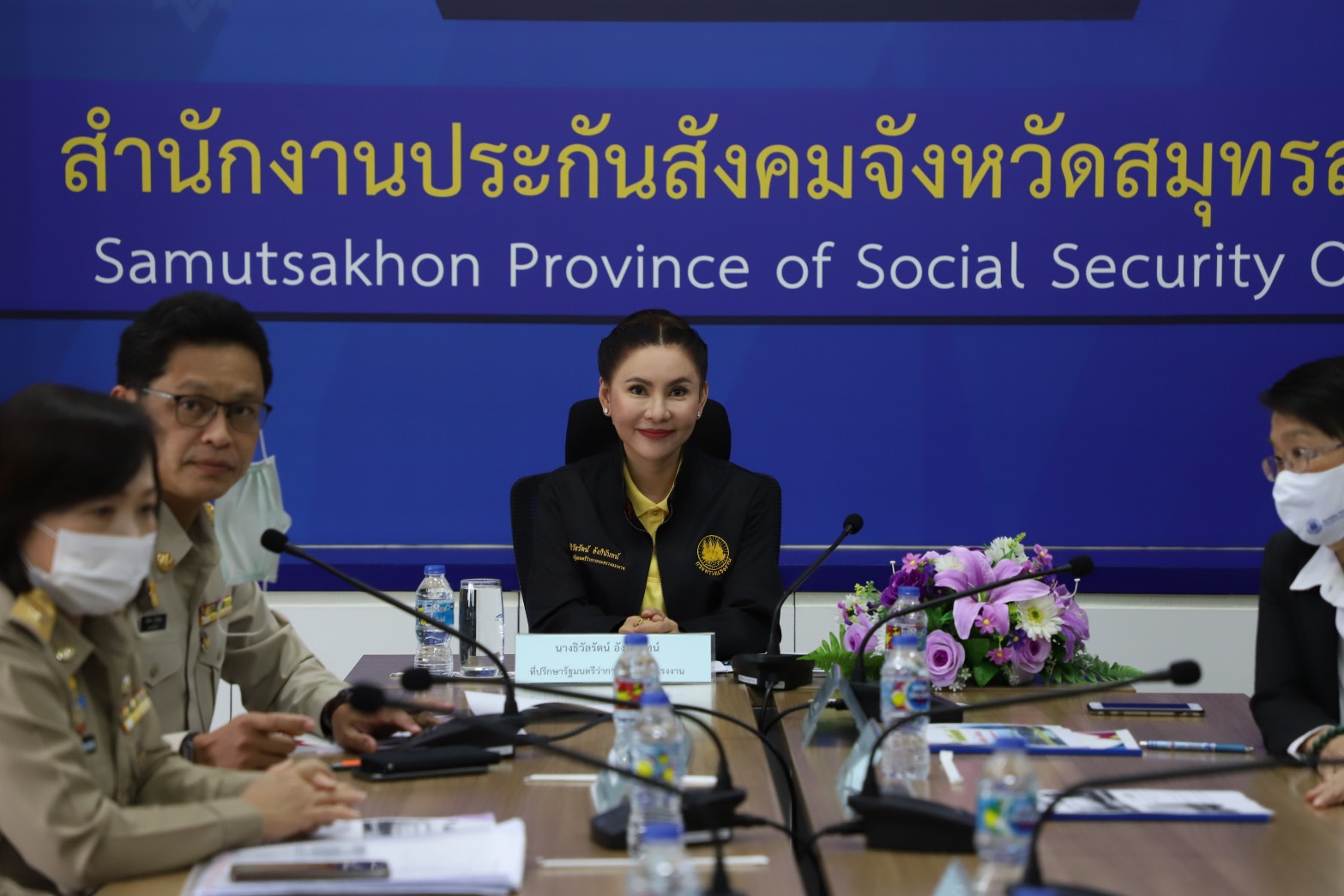 The Labour Minister’s Advisor chaired the meeting to hand over the Ministry of Labour’s policies and practices to the heads of government agencies under the Ministry of Labour in Samut Sakhon. She also took the opportunity to listen to problems, obstacles, and suggestions to build morale and encouragement for staff. The meeting took place at the Social Security Office meeting room, Samut Sakhon. The Labour Minister’s Adviser said that the government under the leadership of Prime Minister General Prayuth Chan-ocha, has given importance to resolving various difficulties in different dimensions, to workers, companies and the general public, to resolve troubles keep up with the changing situations. The effort also drives the Ministry of Labour’s policies, assigned by the Prime Minister. Today, the Advisor reiterated several issues: 1) Providing assistance and remedies to workers and companies affected by Covid-19; 2) Solving problems sustainably by supporting employment, legislation, promotion, and development of the quality of life of informal workers; 3) Creating incentives to work by upgrading skills and labour to meet international standards, supporting credit measures to promote employment; 4) To monitor the performance of the Co-payment project. At the provincial level, all agencies are requested to work together to watch the labour situation closely, in particular, the number of workers and companies affected by Covid-19 to provide assistance, rehabilitation, and request for provincial workers to act as a center in all aspects including making action plans, giving labor information at the local level, integration with provincial agencies and network partners including labour volunteers who are a link to the Ministry of Labour’s services in the community.