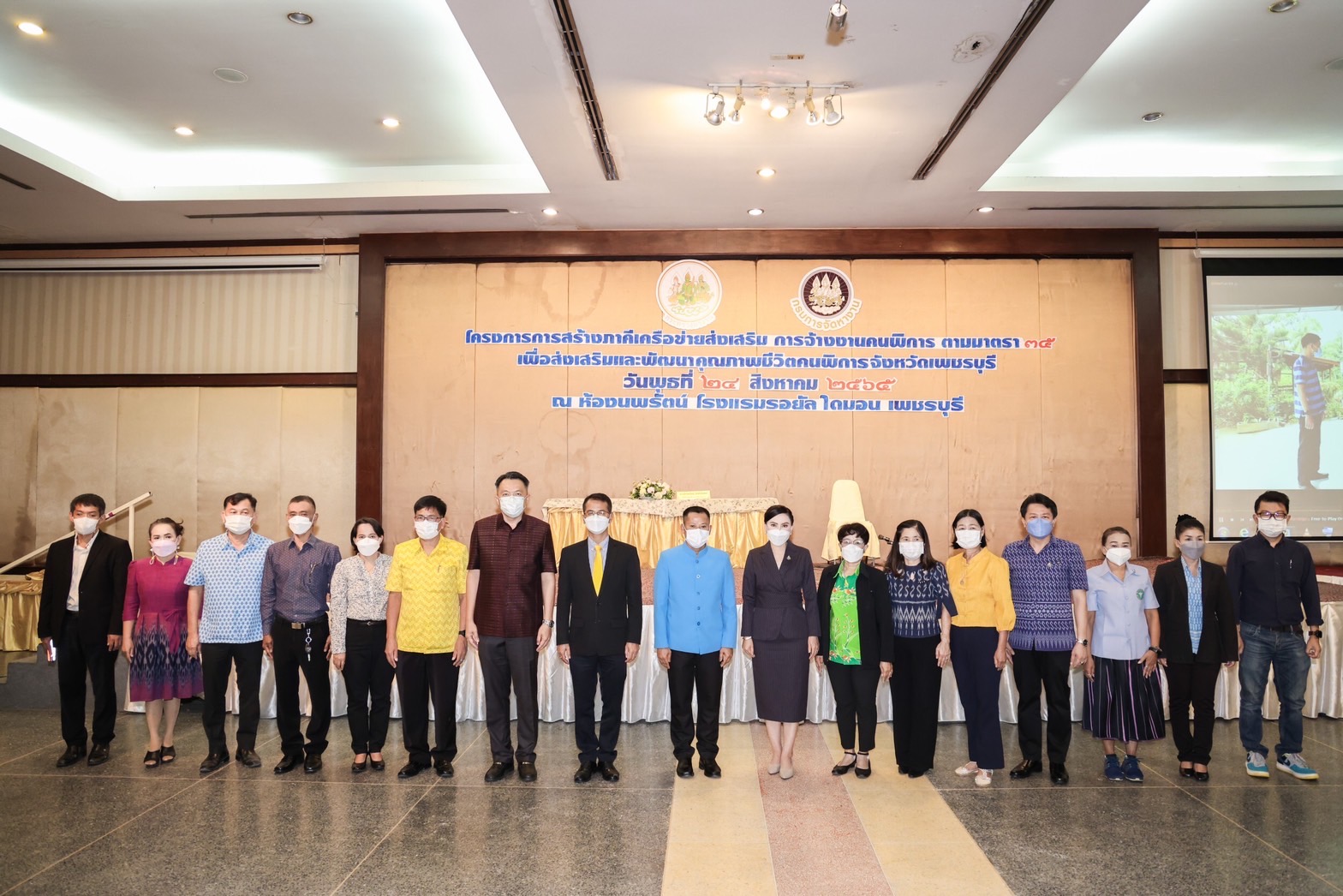On August 24, 2022, the Labour Minister, Mr. Suchart Chomklin, assigned Labour Minister’s Advisor, Mrs. Thiwalrat Angkinan, to preside over the opening remarks of the project to create network partners to promote the employment of disabled persons under Section 35. The efforts aim to promote and develop the quality of life of people with disabilities in Phetchaburi Province. Heads of government agencies under the Ministry of Labour in Phetchaburi Province, government representatives, enterprises, and representatives from the Subdistrict Service Center for People with Disabilities, participated in the event, which took place at the Nopparat Conference Room, 2nd floor, Royal Diamond Hotel, Muang District, Phetchaburi Province.