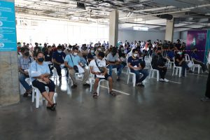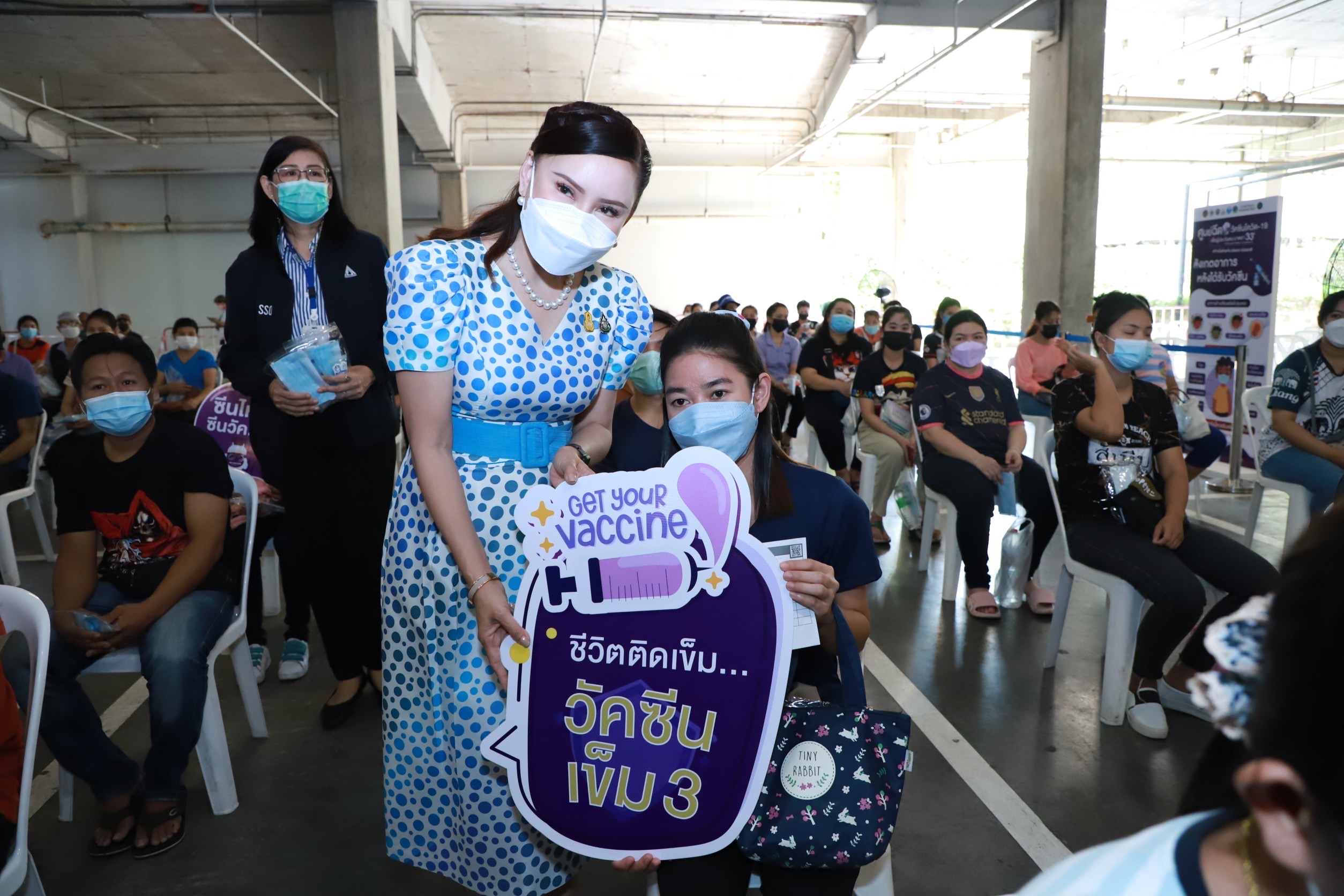 On January 28, 2022, Labour Minister Mr. Suchart Chomklin assigned the Labour Minister’s Advisor, Mrs. Thiwalrat Angkinan, to visit the area and encourage insured persons under Section 33 to get their third jab (booster dose) of the COVID-19 vaccine at the Vaccination Center in Central Plaza Department Store, Mahachai Branch, Rama 2 Road, Nadi Subdistrict, Mueang Samut Sakhon District, Samut Sakhon Province. The Social Security Office’s Inspector-General Ms. Pannika Luangsuri, the Samut Sakhon Provincial Social Security Officer Mrs. Ratchanee Phupromphan, and heads of government agencies under the Ministry of Labour in Samut Sakhon Province also joined the occasion.