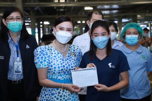 Today’s visit was on behalf of the Ministry of Labour. She thanked and encouraged the medical personnel and Social Security Office staff providing good services to insured persons. She thanked the management of Central Plaza Department Store, Mahachai branch, for the generosity of providing the facility. And most importantly, she thanked all insured persons under Section 33 for getting the vaccinations to build immunity and encourage each other to stop the spread of COVID-19. She assured that the Ministry of Labour is ready to operate at its best to support insured persons to have access to the COVID-19 vaccine service. For inquiries, please contact the 1506 hotline, press 6 or 7. Services are available from 8.00 to 18.00 hours every day, including public holidays.