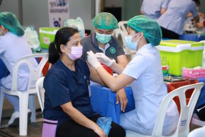 Mrs. Thiwalrat said that Labour Minister Mr. Suchart Chomklin is satisfied with the work of the vaccination center that has good management. There is an appointment queue in advance for insured persons to receive the services to prepare beforehand. The Social Security Office has arranged the vaccination queue for the establishments in the order of requesting the vaccination according to the survey data. Employers have registered via the e-service system since December 2021. Employers will be coordinated via telephone and an e-mail from the Social Security Office informing the date, time, and location for the employer/HR to arrange insured persons to get service. The effort helps facilitate and reduce congestion and waiting time. Insured persons who have been scheduled for appointments can receive vaccinations at 20 vaccination points designated by the Social Security Office in Bangkok and 13 vaccination points in the ten key economic areas (Songkhla, Chonburi, Rayong, Chachoengsao, Samut Prakan, Nonthaburi, Pathum Thani, Nakhon Pathom, Samut Sakhon, and Phra Nakhon Si Ayutthaya).