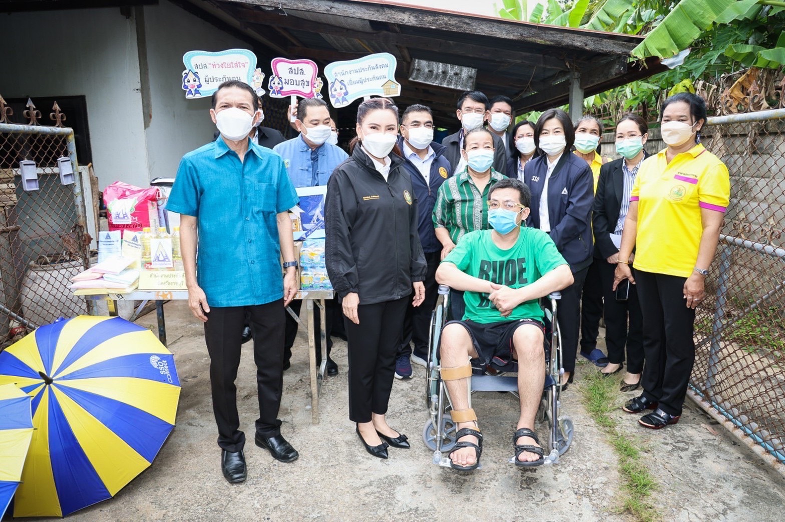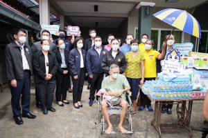 On September 20, 2022, the Labour Minister, Mr. Suchart Chomklin, expressed empathy and assigned the Labour Minister’s Advisor, Mrs. Thiwalrat Angkinan, to visit the area to give gifts to encourage insured person disabilities in Pak Tho District, Ratchaburi Province. In this regard, the Social Security Office’s Secretary-General, Mr. Boonsong Thapchaiyut, assigned the Social Security Office’s Inspector-General, Ms. Wantana Natthapulawat, the Ratchaburi Social Security Officer Ms. Chompoophen Sirithon, head of the Ratchaburi Provincial Social Security Office, Ban Pong branch, Sergeant Phairat Sa-ayawong, and heads of government agencies under the Ministry of Labour in Ratchaburi Province also attended the visit.