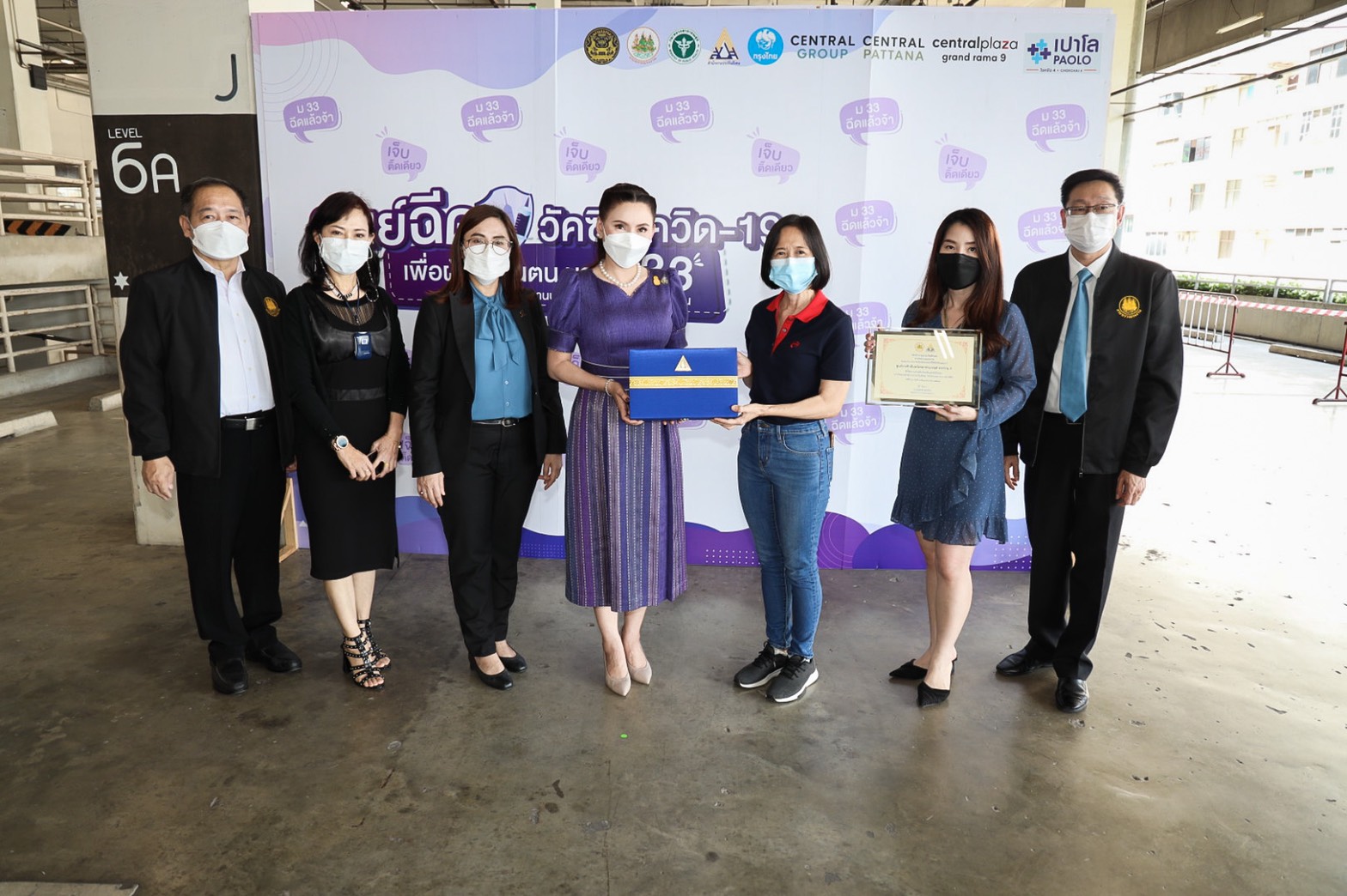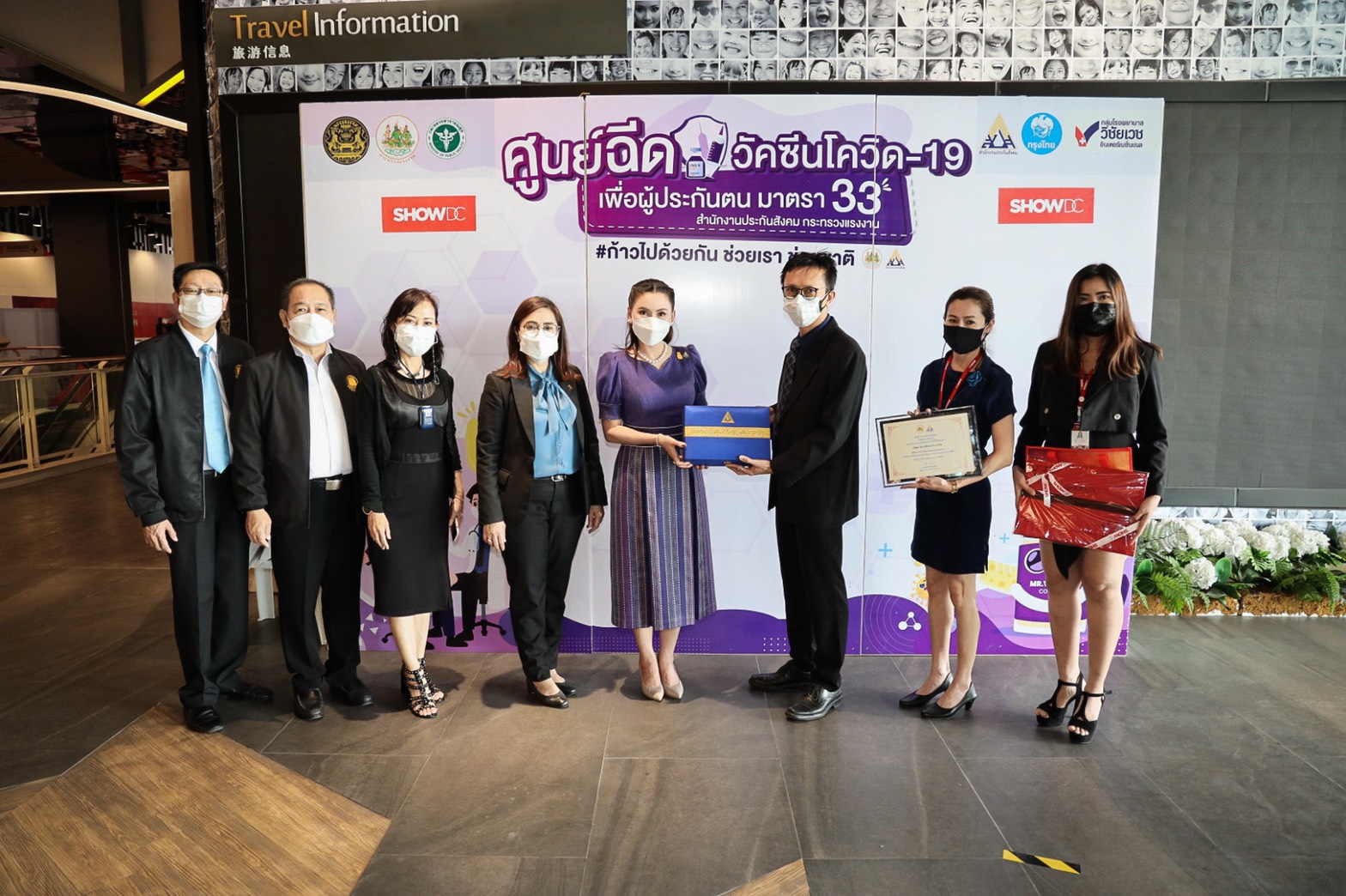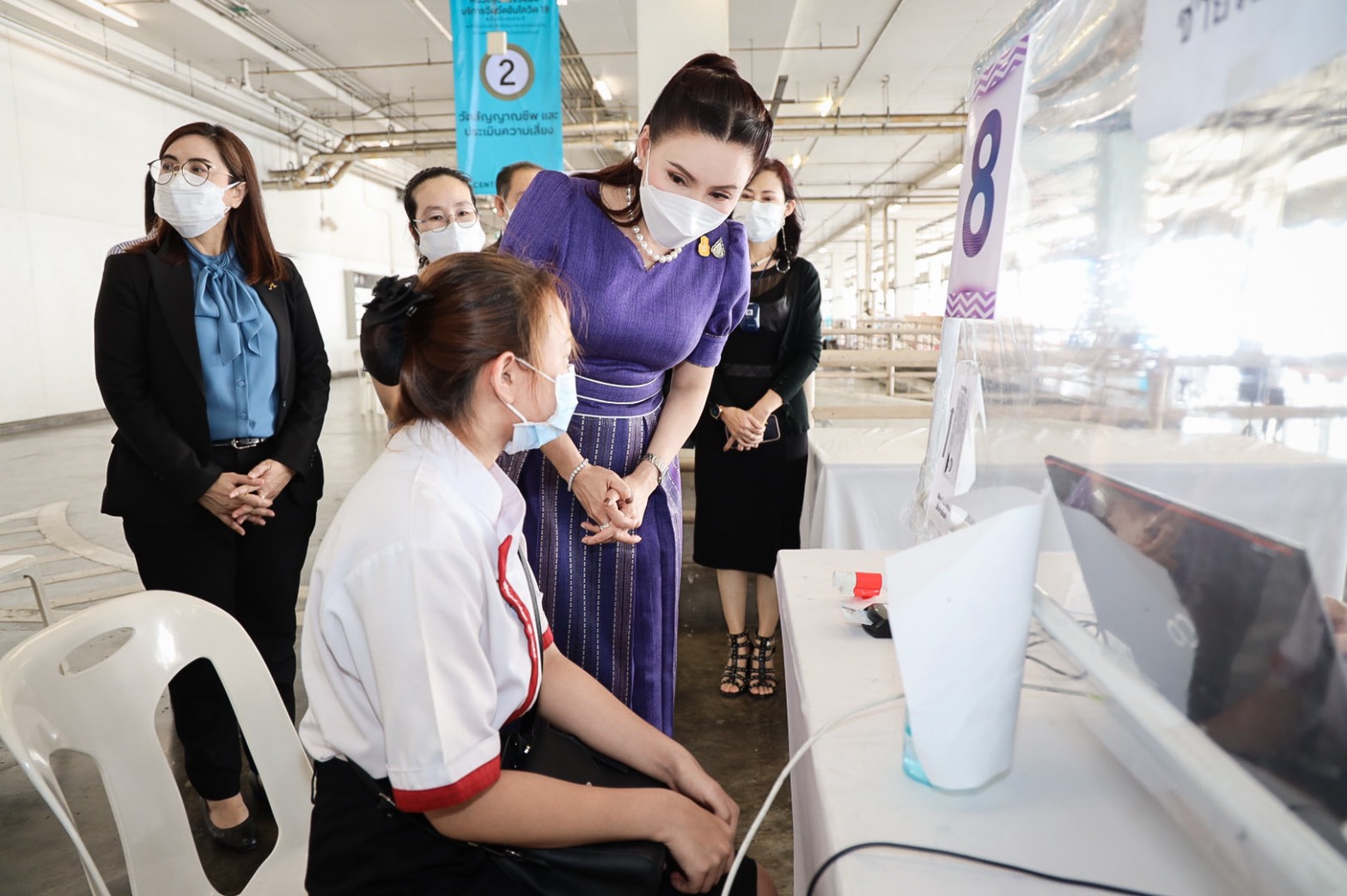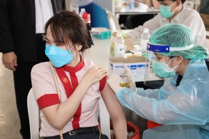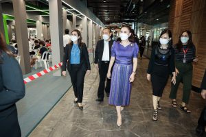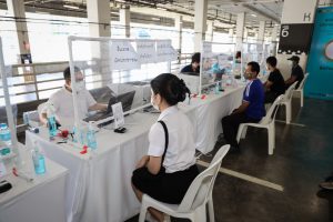 “Today, Labour Minister Mr. Suchart Chomklin assigned my team and me to visit the COVID-19 vaccination services for those Section 33 insured persons at Central Rama 9 and ShowDC. Each of the facilities has the capacity to vaccine 1,500 people daily. The visit also included encouraging medical personnel administering the COVID-19 vaccinations to Section 33 insured persons. It is one of the Ministry of Labour’s measures on prevention and treatment, by expediting vaccinations to insured people following government policy to control the spread of COVID-19 and build immunity among the workers for businesses to move forward,” concluded Mrs. Thiwalrat.