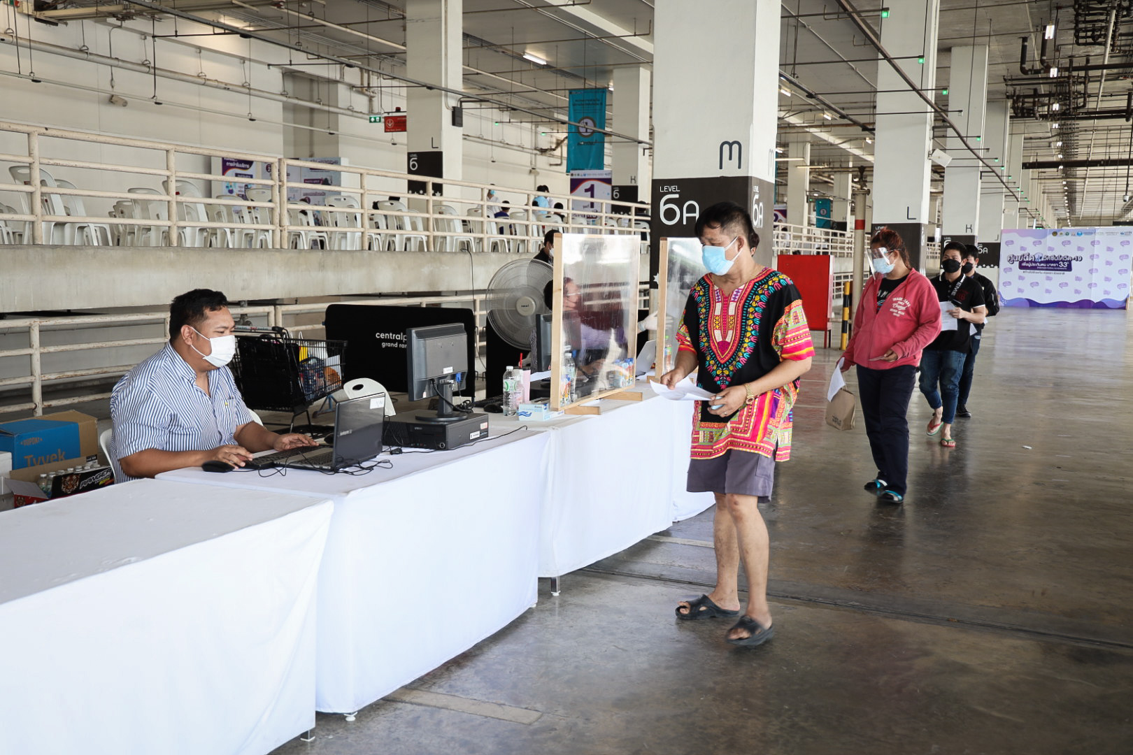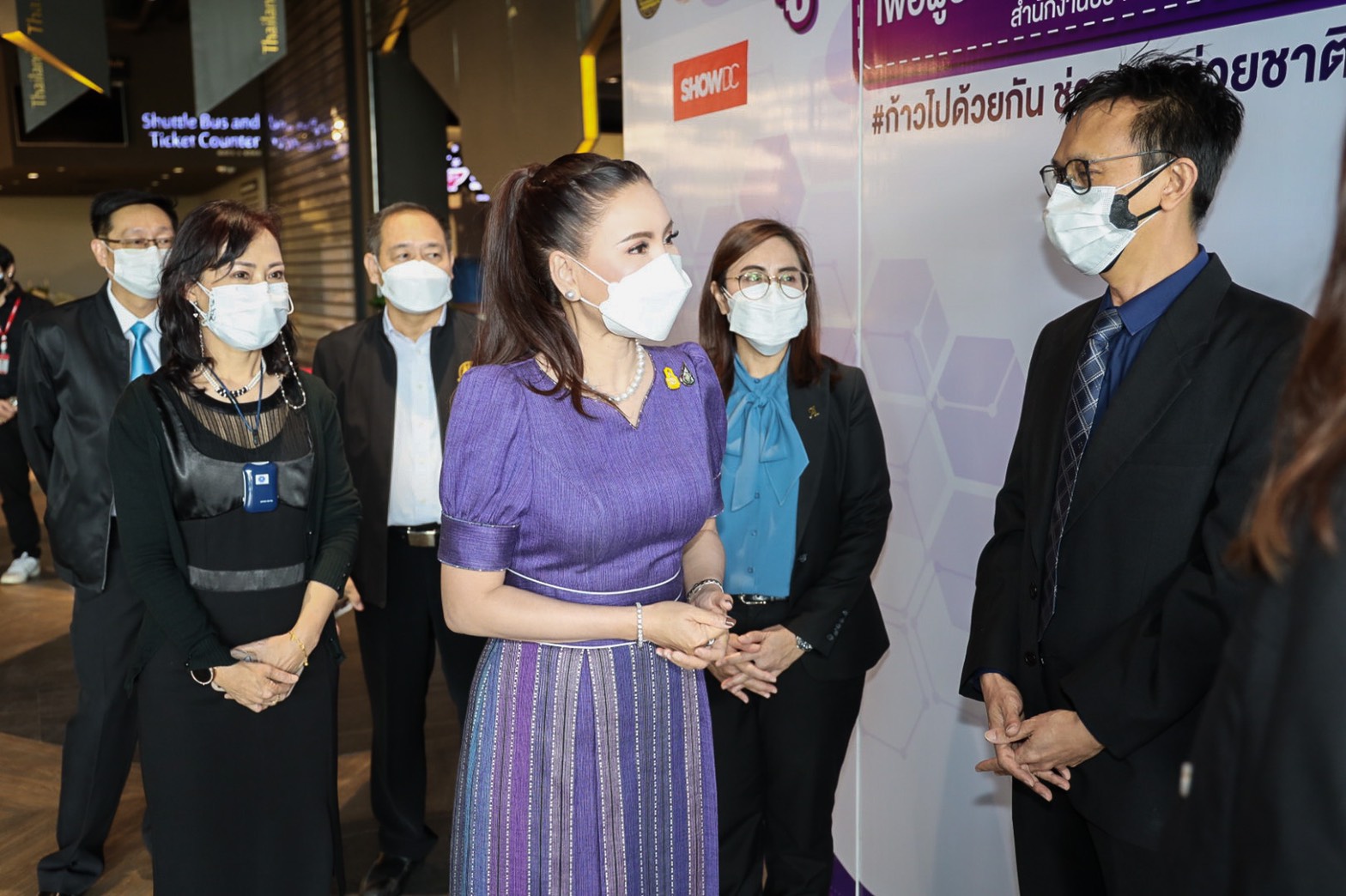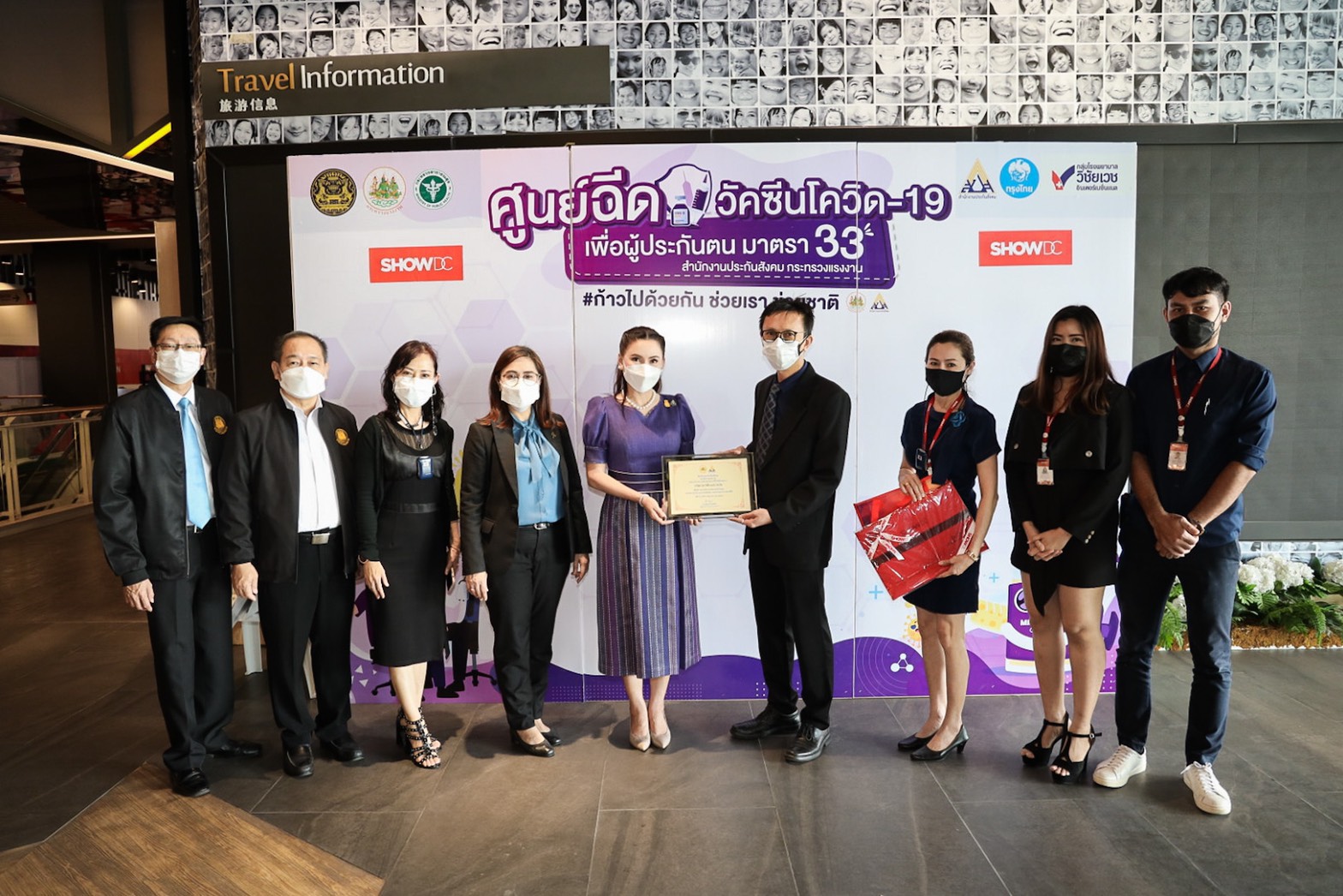 “Today, Labour Minister Mr. Suchart Chomklin assigned my team and me to visit the COVID-19 vaccination services for those Section 33 insured persons at Central Rama 9 and ShowDC. Each of the facilities has the capacity to vaccine 1,500 people daily. The visit also included encouraging medical personnel administering the COVID-19 vaccinations to Section 33 insured persons. It is one of the Ministry of Labour’s measures on prevention and treatment, by expediting vaccinations to insured people following government policy to control the spread of COVID-19 and build immunity among the workers for businesses to move forward,” concluded Mrs. Thiwalrat.