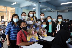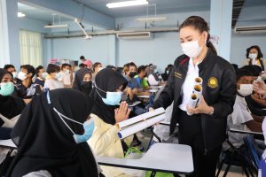 Labour Minister Mr. Suchart Chomklin assigned his Advisor to Phetchaburi to visit companies, meet and give words of encouragement to youths in the southern border provinces who have participated in the Co-Payment and “Thaimeengarntum.com” projects. She encouraged people in the southern border provinces to have a job, a career, and an income, ensuring systematic labour movement to bring stability and peace to the area.