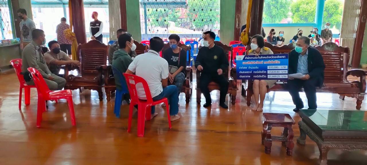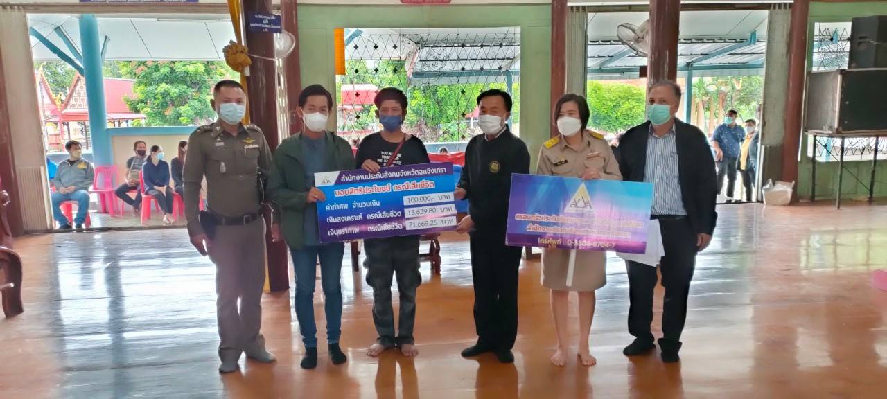 The Labour Minister, Mr. Suchart Chomklin, assigned an Assistant Minister from the Prime Minister’s Office, performing duties for the Ministry of Labour, Sergeant Major Yossingh Liamlert, to visit the area to give compensation to the family of employees who died from a motorcycle accident on the Talad Bang Bo – Bang Khla Road, Plaeng Yao District, Chachoengsao Province. The incident happened on August 8, causing the death of two people, a mother and a child, Mr. Sittipong Charoensuk, insured under Section 33 of Smithiyan and Associates Company Limited. The beneficiaries are entitled to funeral expenses of 50,000 Baht. Ms. Nimnuan Pakdeesi is insured under Section 33 of A.P.S. Service Company Limited. The beneficiaries are entitled to funeral expenses of 50,000 Baht, compensation for death for 13,639.80 baht, and an old age pension of 21,668.24 Baht, totaling 85,308.04 Baht.