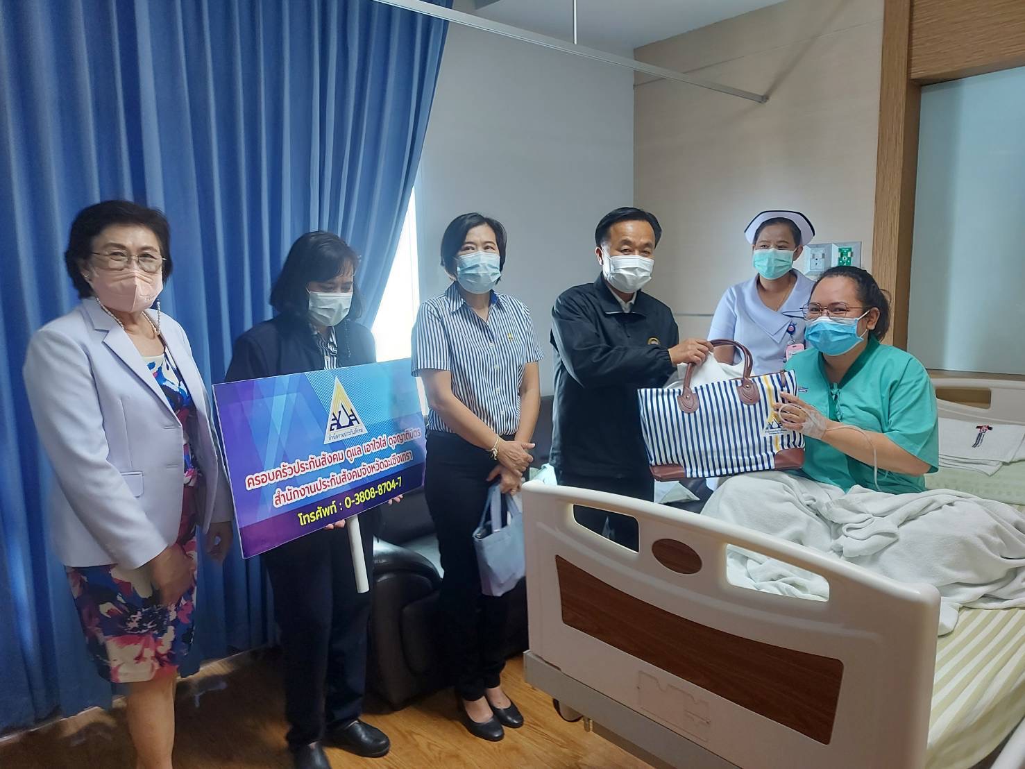 On August 16, 2022, at 10.00 hours, the Labour Minister, Mr. Suchart Chomklin, assigned Assistant Ministers from the Prime Minister’s Office performing duties for the Ministry of Labour, Sergeant Major Yossingh Liamlert, along with Chachoengsao Provincial Social Security Officer, Ms. Narumon Boonmee, Head of the Bang Pakong Branch, Mrs. Vachana Petchakan, and staff, paid a visit to give gifts and encouragement to social security patients at Chularat Hospital 11, Bang Pakong District, Chachoengsao Province. They gave gifts to give morale and encouragement to Mr. Tiwa Thongkerd and Mr. Rangsan Phawongchit, disabled patients in the social security system. They also visited Mr. Sittisak Nikornbua, a Section 39 insured person who was ill and recuperating in Tha Kham Subdistrict and Tha Sa-an Subdistrict, Bang Pakong District, Chachoengsao Province.