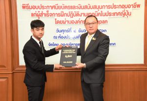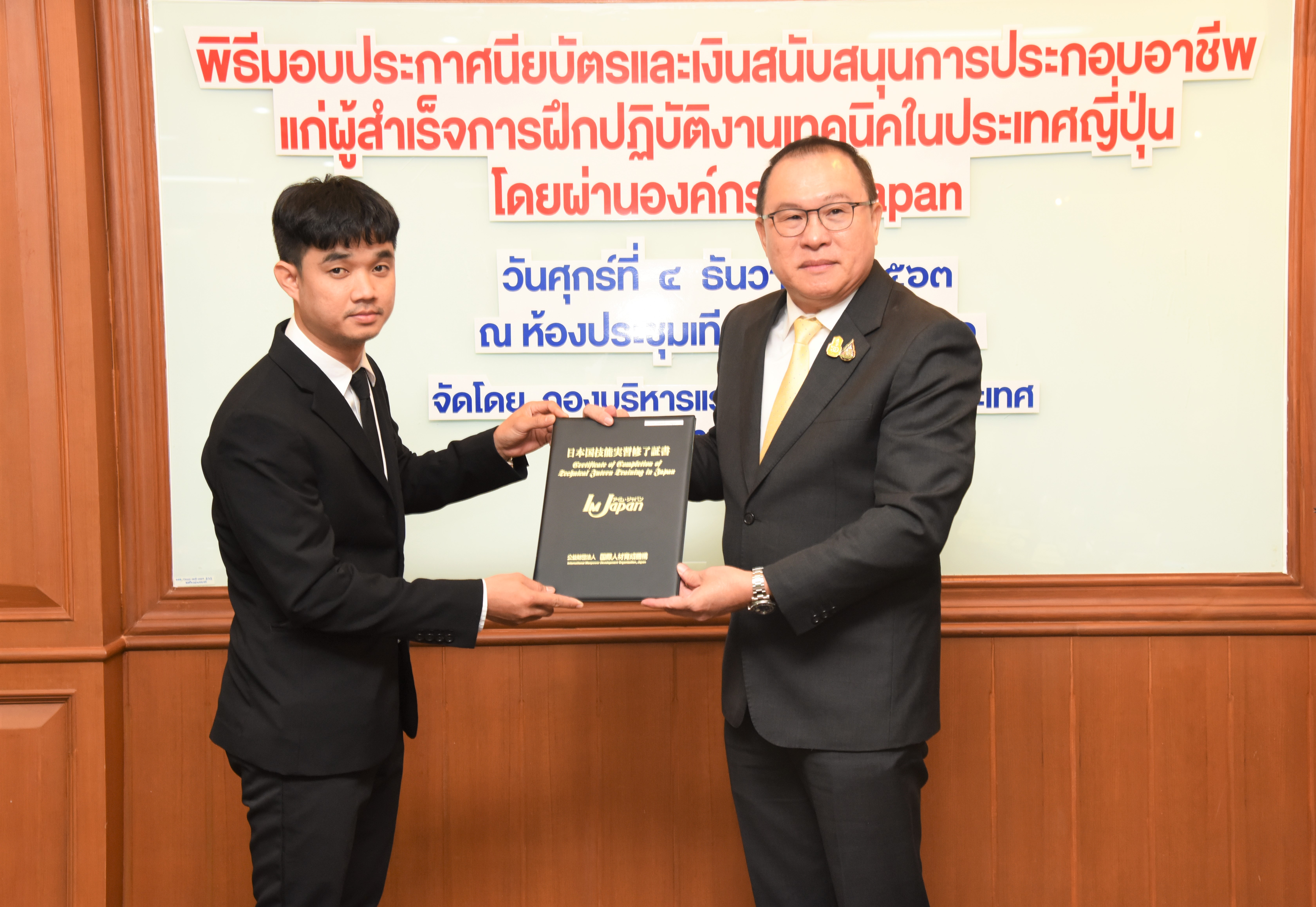 “I would like to congratulate and commend trainees from the Technical Training Program for showing persistence and diligence in practicing techniques in Japan, throughout the specified period. Technical trainees are considered an important part of the country’s economic development. It brings together the knowledge, experience, skills, and discipline gained from rigorous technical training in Japan to adapt as valuable experience to drive workplace productivity or operate personal businesses in Thailand more efficiently. I wish that the money for occupational support received today will be used to benefit you and your families in the future,” said the Assistant to the Labour Minister.