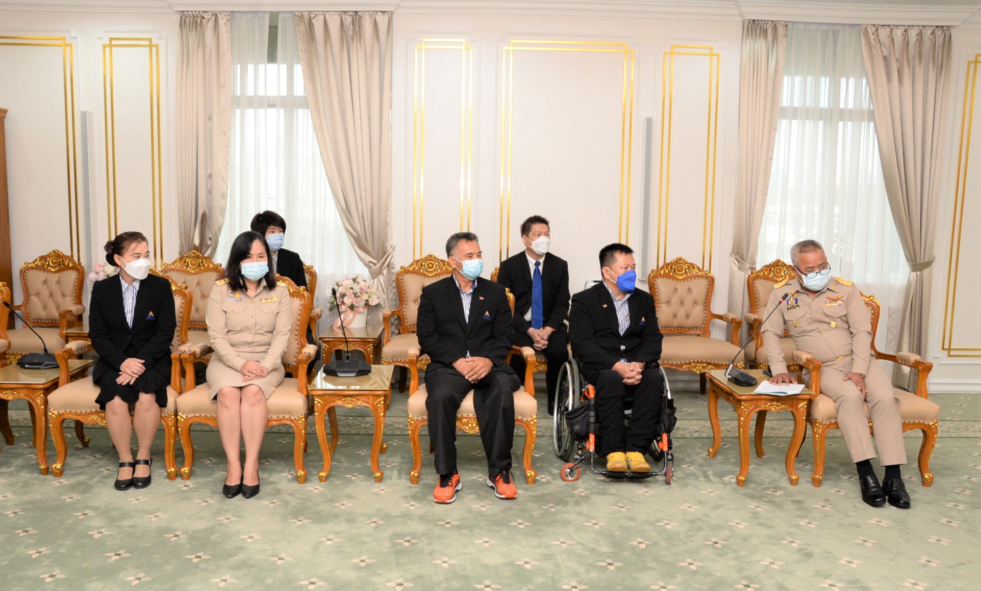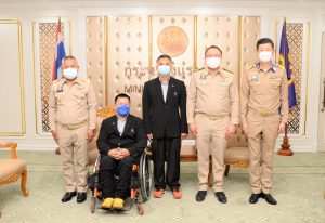 Mr. Surachai said, “I admire your perseverance, patience, and determination, to the extent that your disability is not an obstacle to living. You have continued to develop yourselves to the stage of being selected as a Thai national team athlete. I consider it something to be proud of at the Social Security Office, especially for the worker rehabilitation centers that help rehabilitate and support its people until they have become national team athletes. Actions like this should be encouraged and supported by both the athletes and everyone involved. On this occasion, I would like to leave it to both athletes to have the spirit of an athlete. To have the determination to compete with the best of your abilities and bring back medals as a gift for Thai people to be happy and proud. I hope you are successful in the competition, and wish you a safe journey. Good luck.”